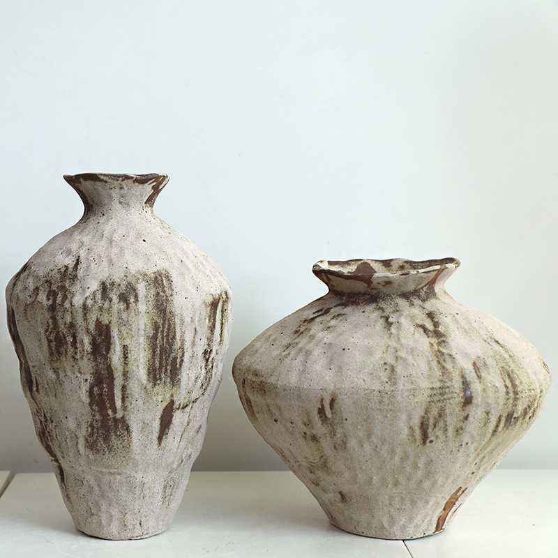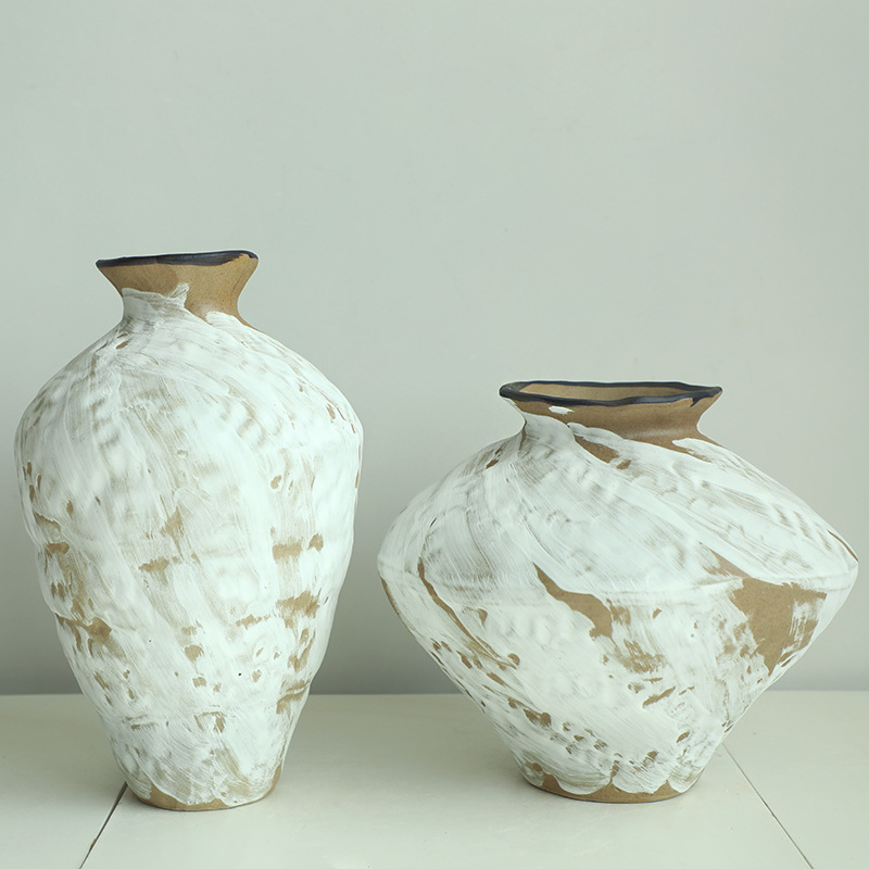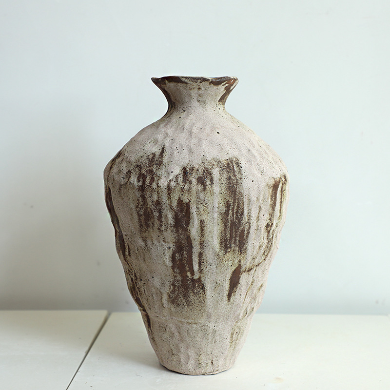侘寂风陶瓷花瓶粗陶瓶插花复古怀旧手工民宿酒店禅意摆件