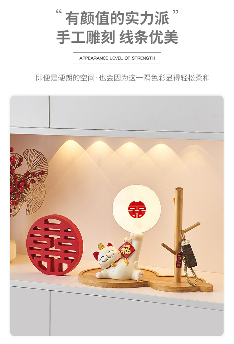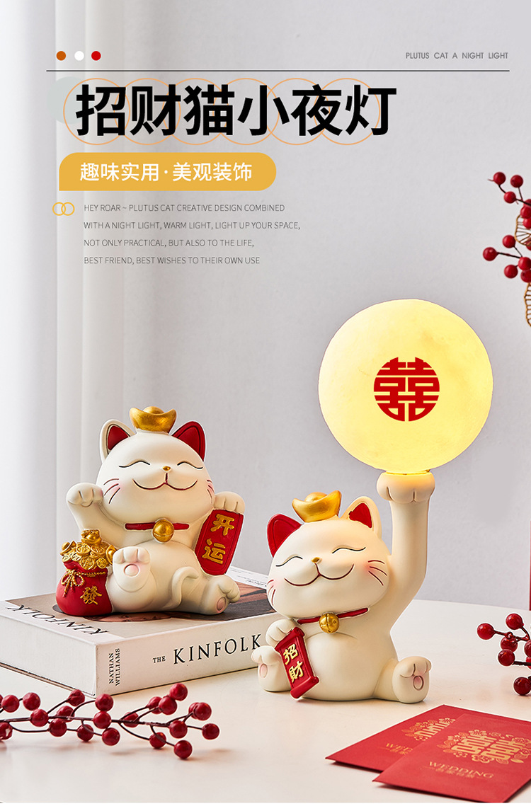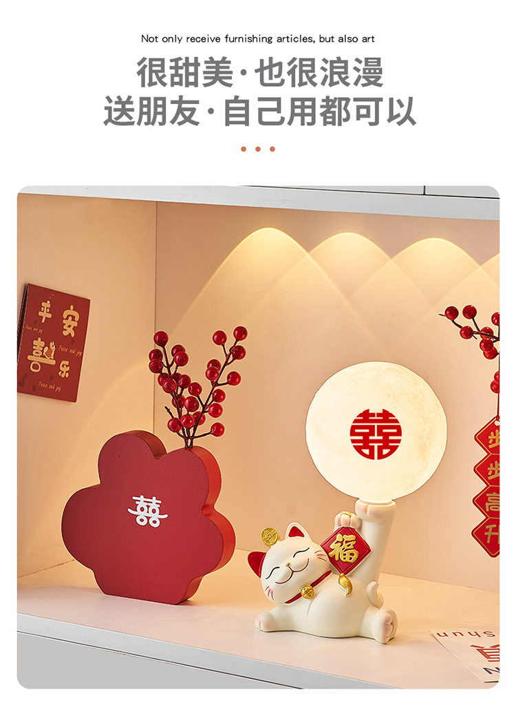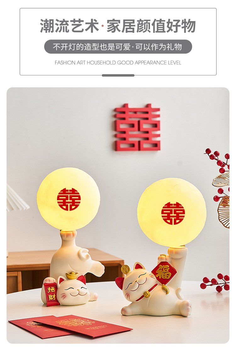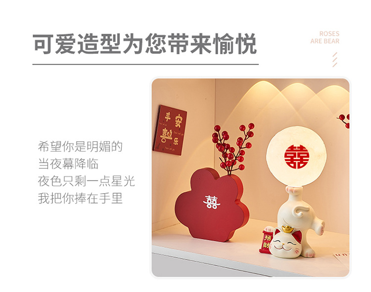 招手猫新婚实用台灯床头灯长明灯结婚一对礼物送新人新娘陪嫁