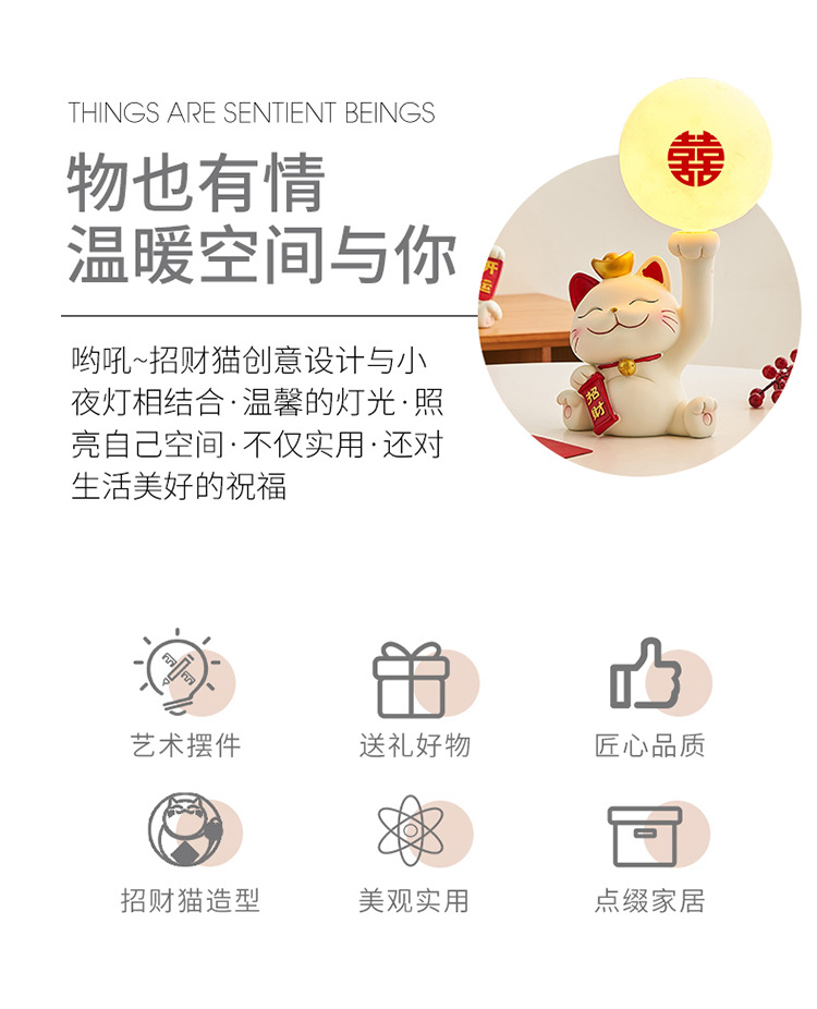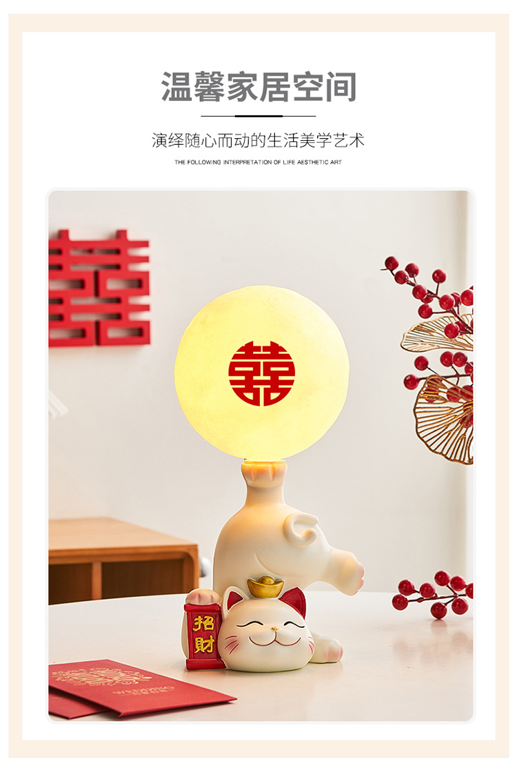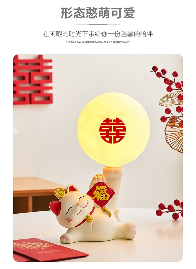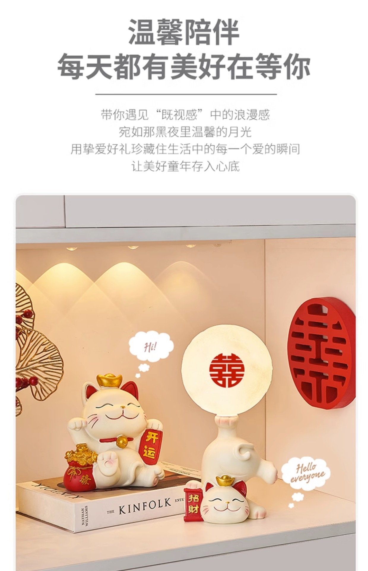招手猫新婚实用台灯床头灯长明灯结婚一对礼物送新人新娘陪嫁