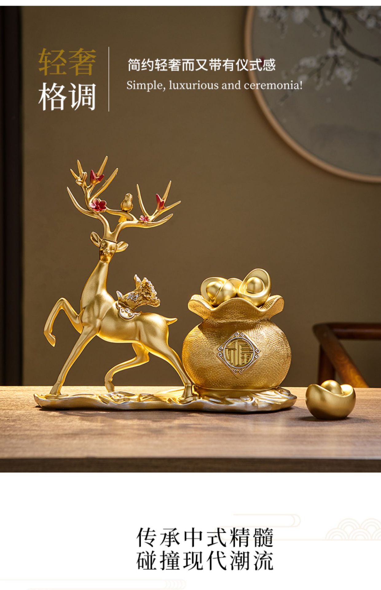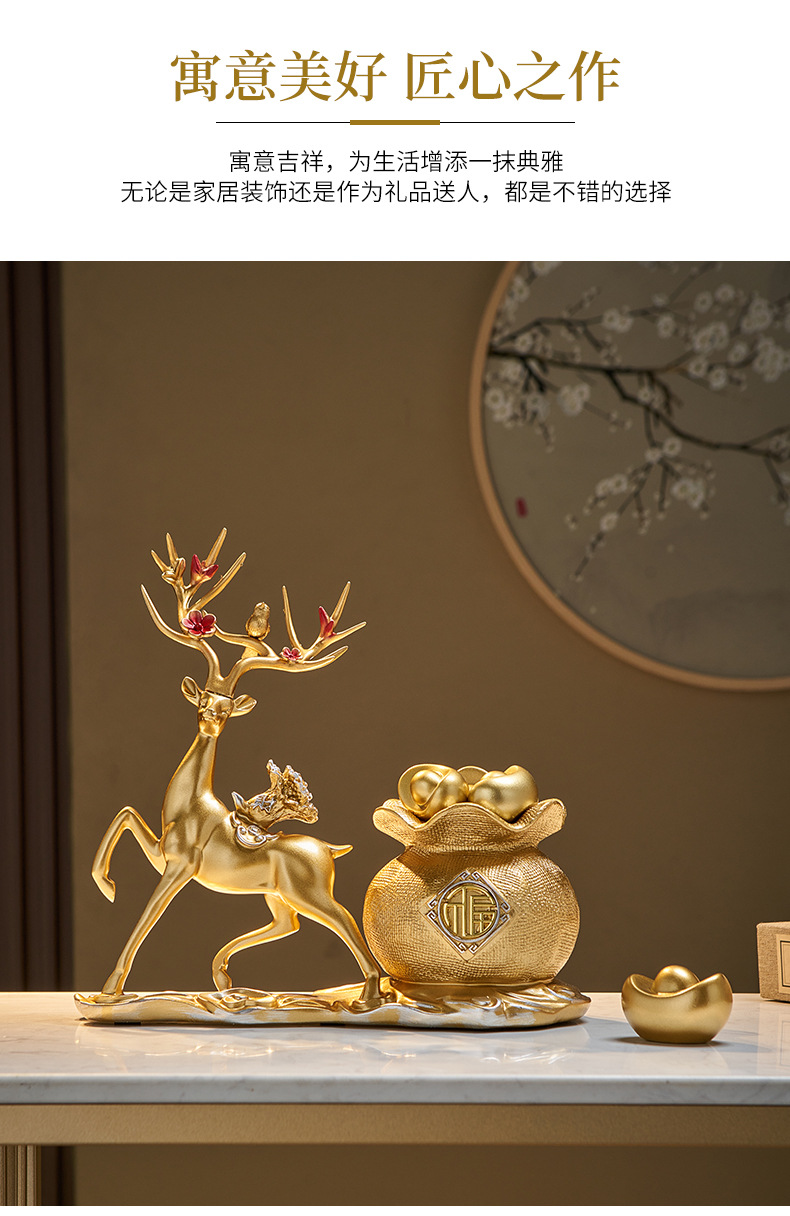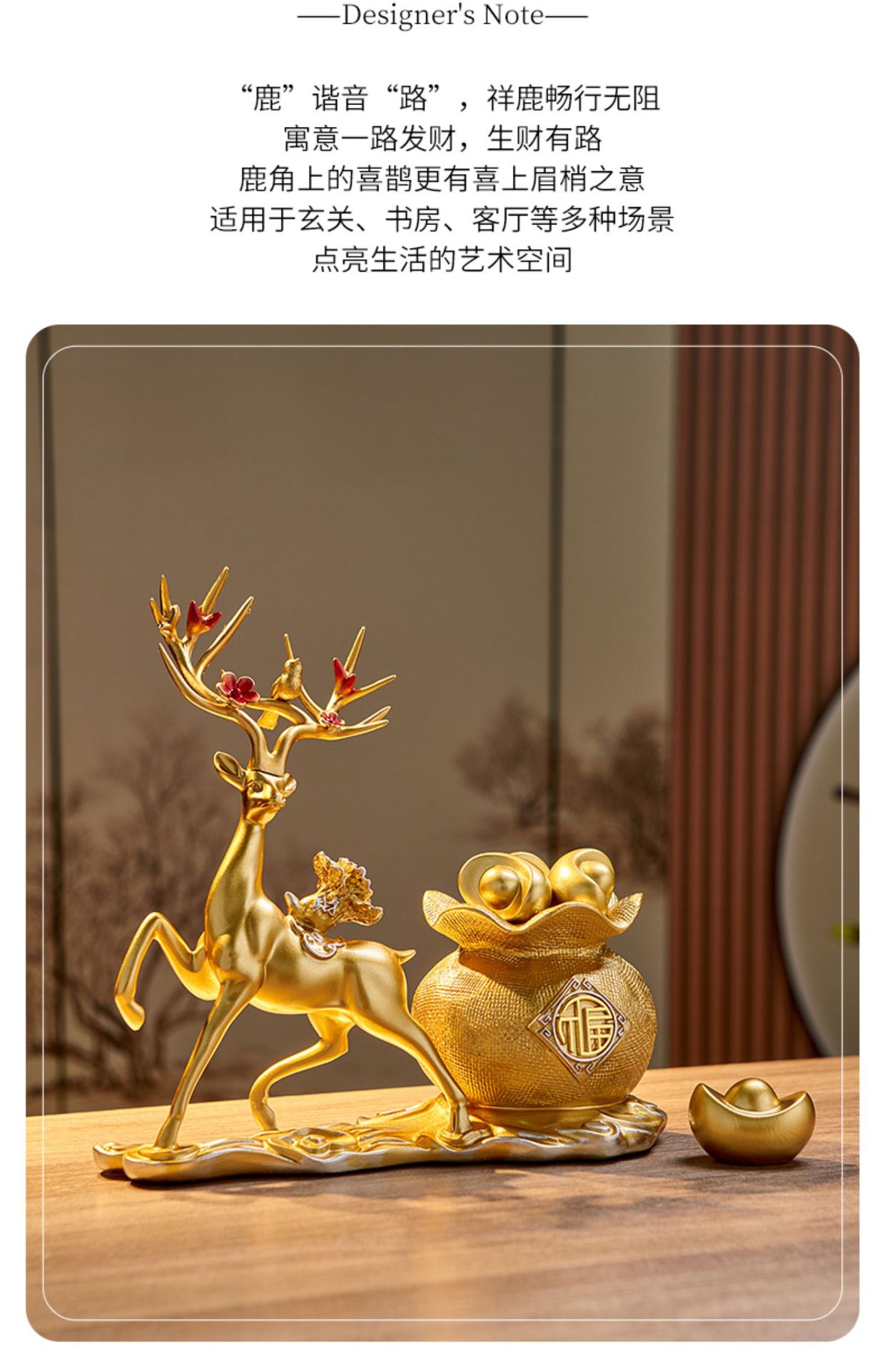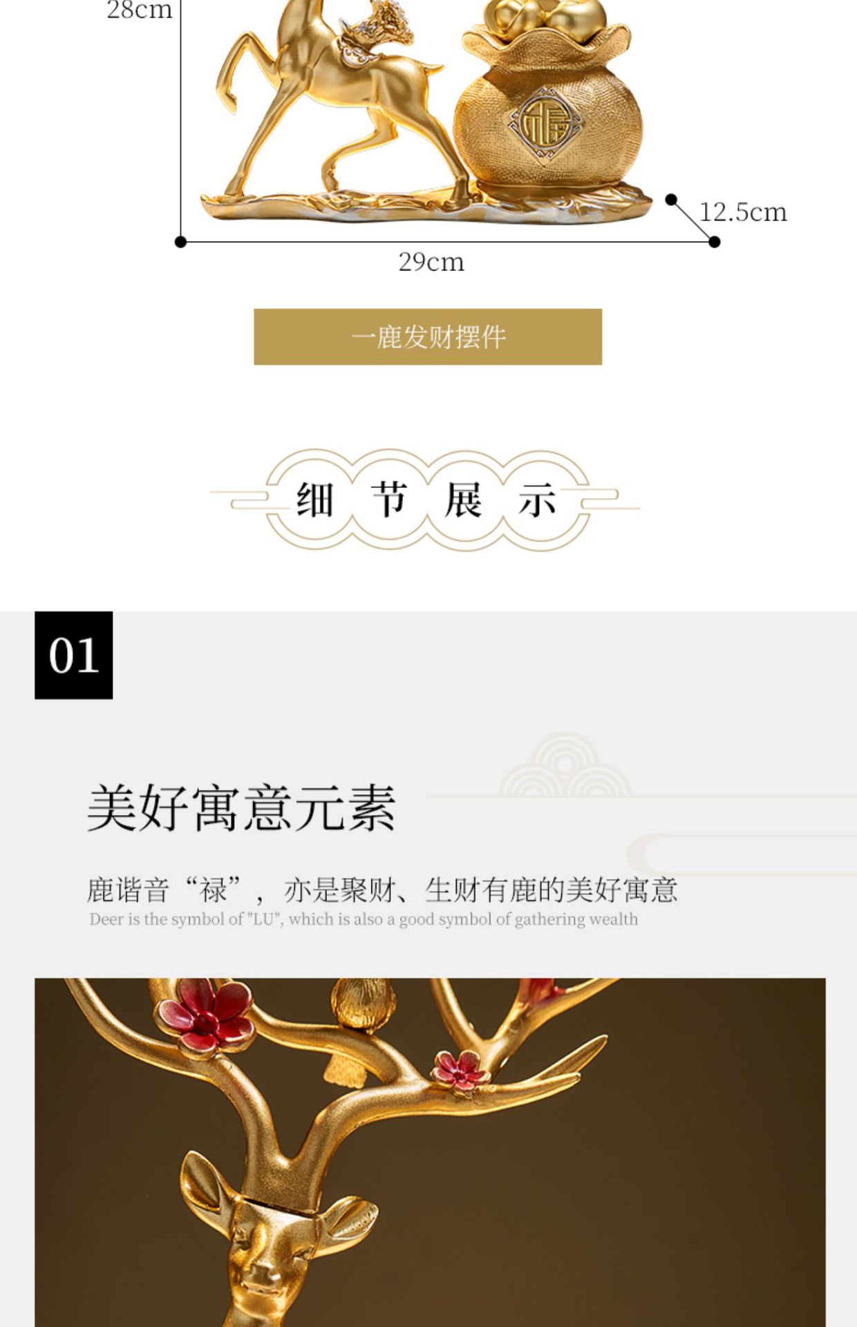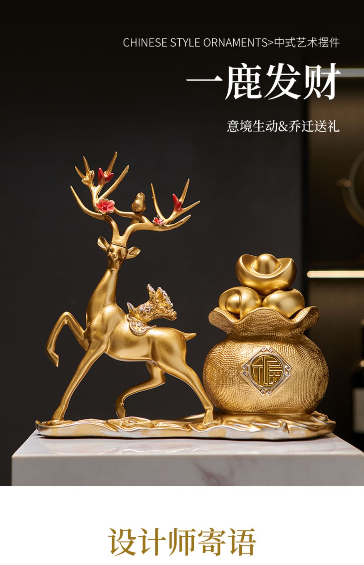 聚福摆件一鹿发财客厅装饰品办公室搬家之喜礼物乔迁新居礼品