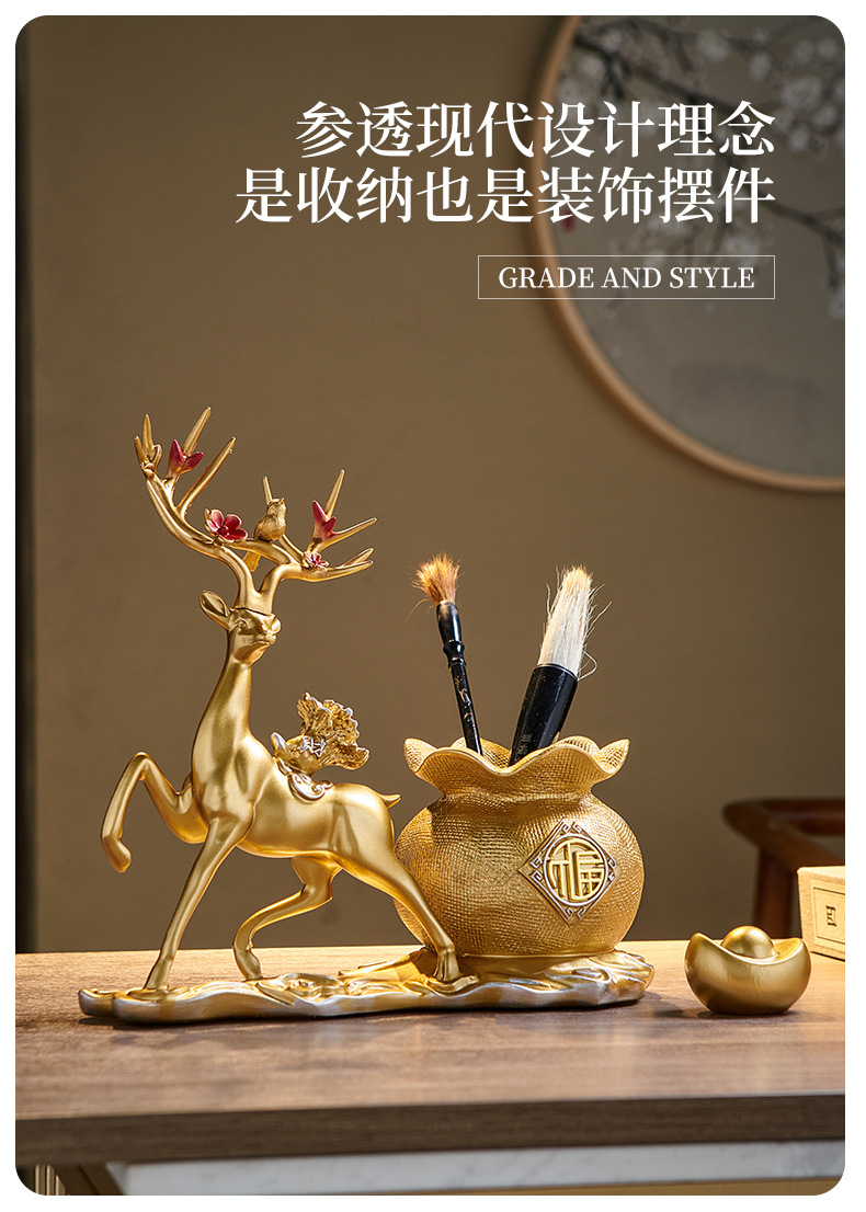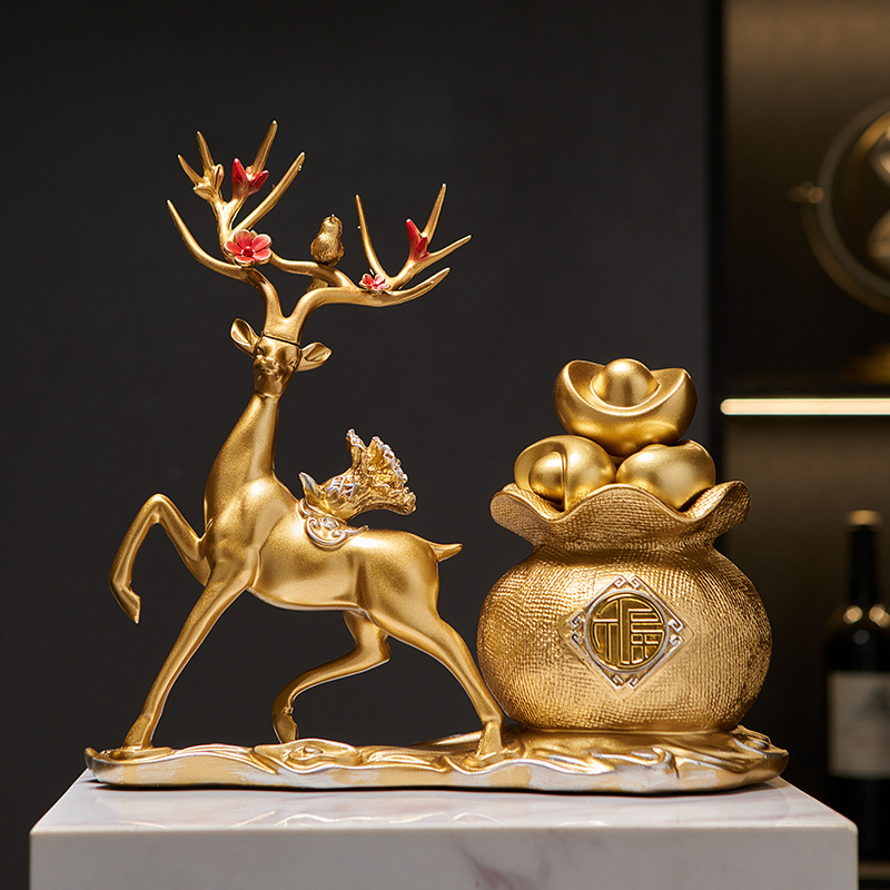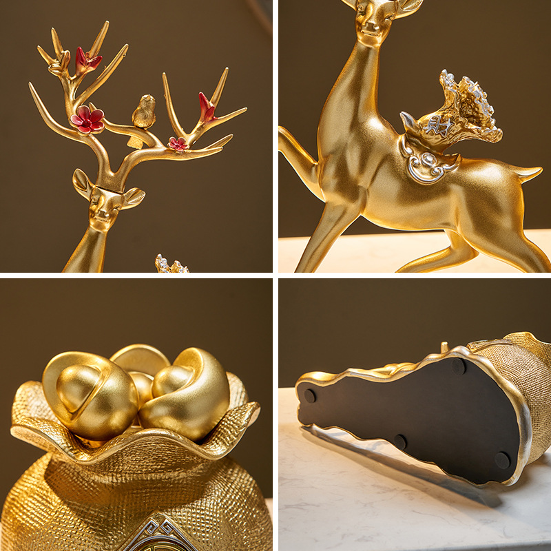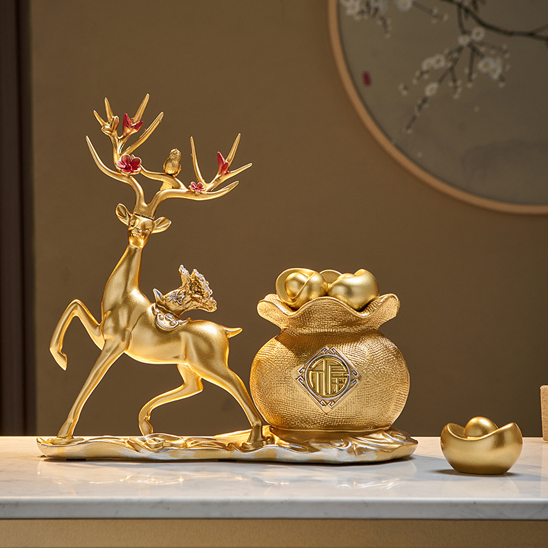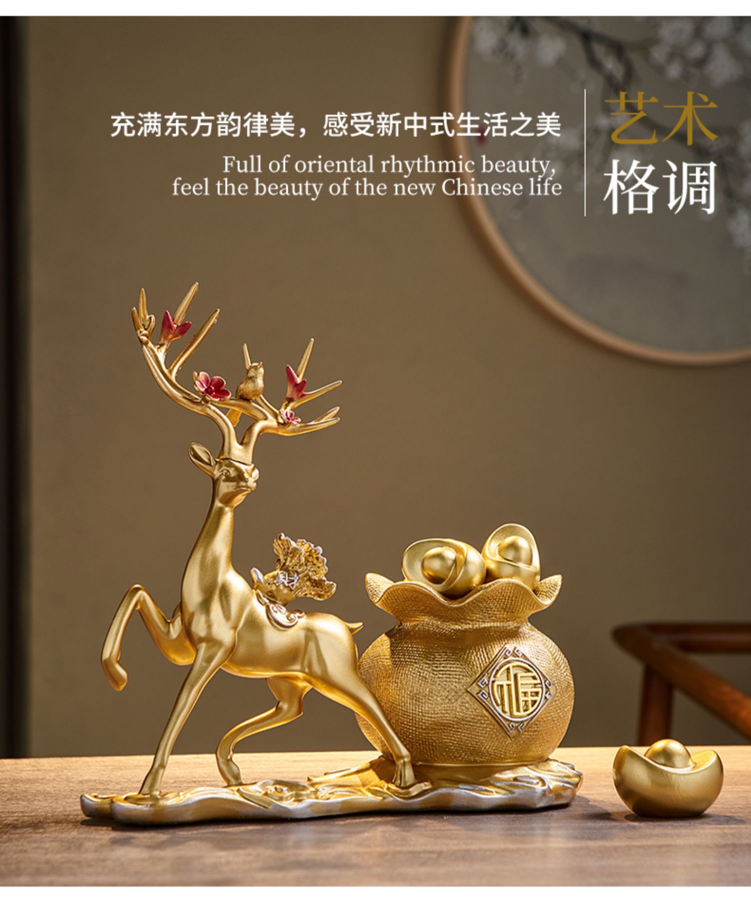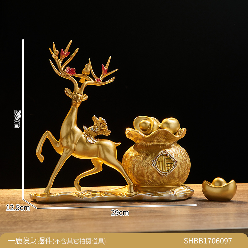 聚福摆件一鹿发财客厅装饰品办公室搬家之喜礼物乔迁新居礼品