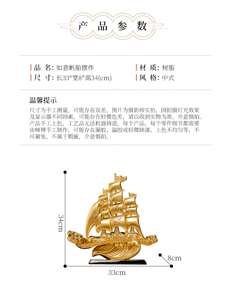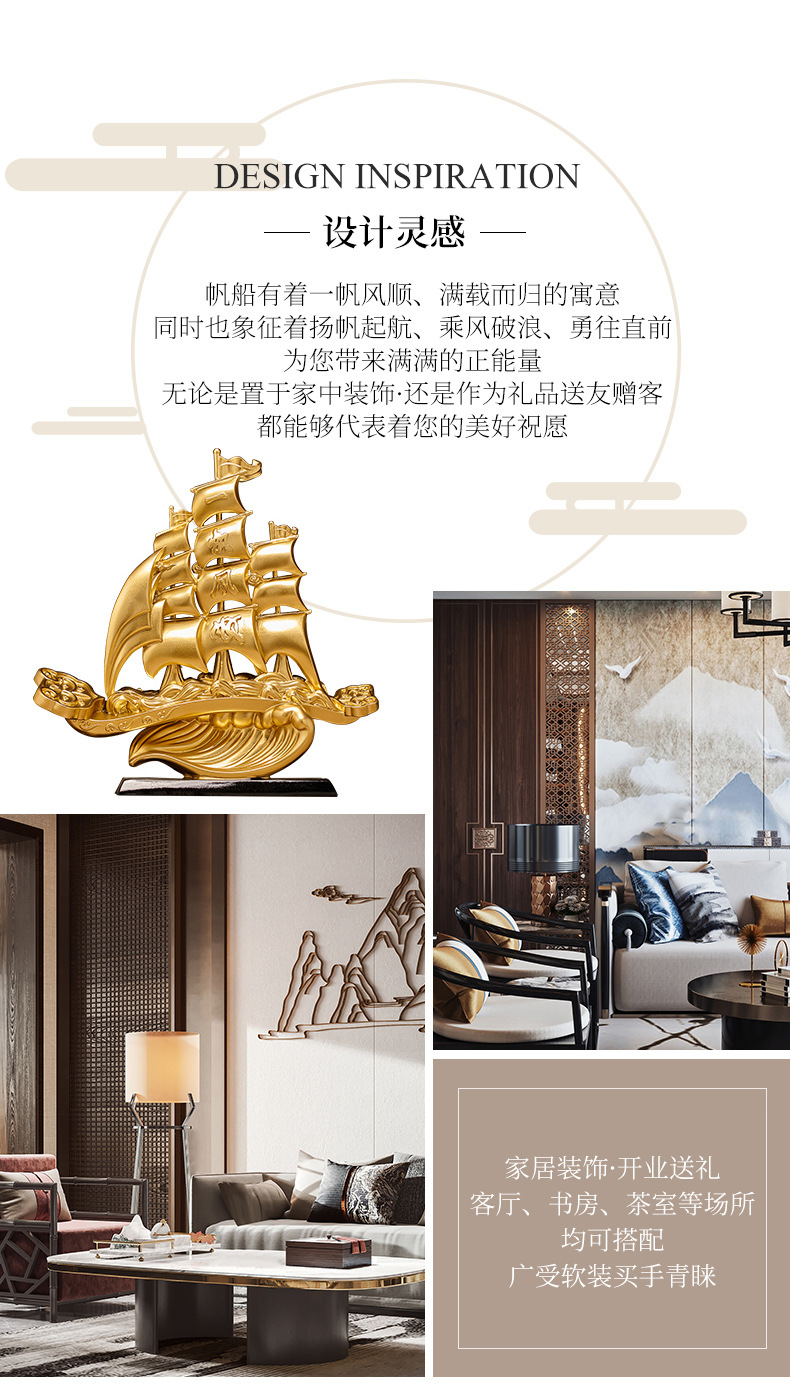 一帆风顺帆船摆件轻奢客厅电视柜办公室家居乔迁装饰品