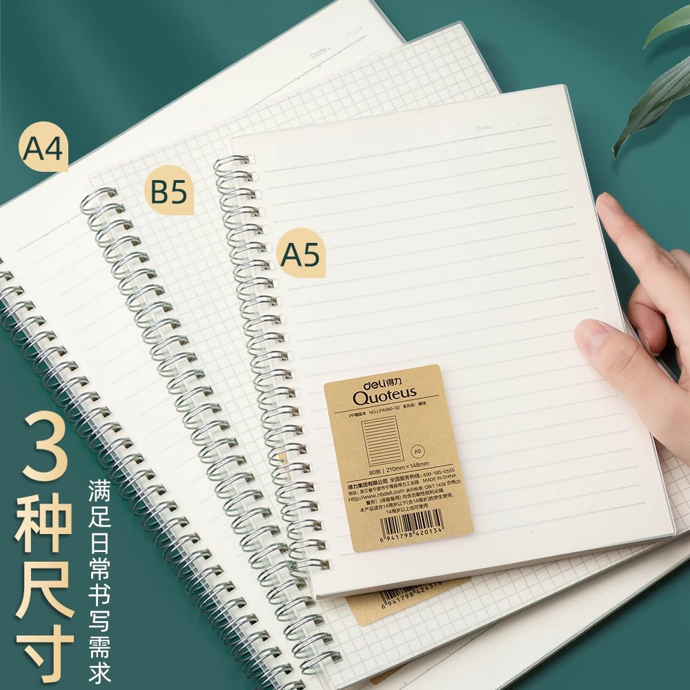 得力线圈本笔记本LPB580考研本横线b5学生加厚网格日记本记事本a4