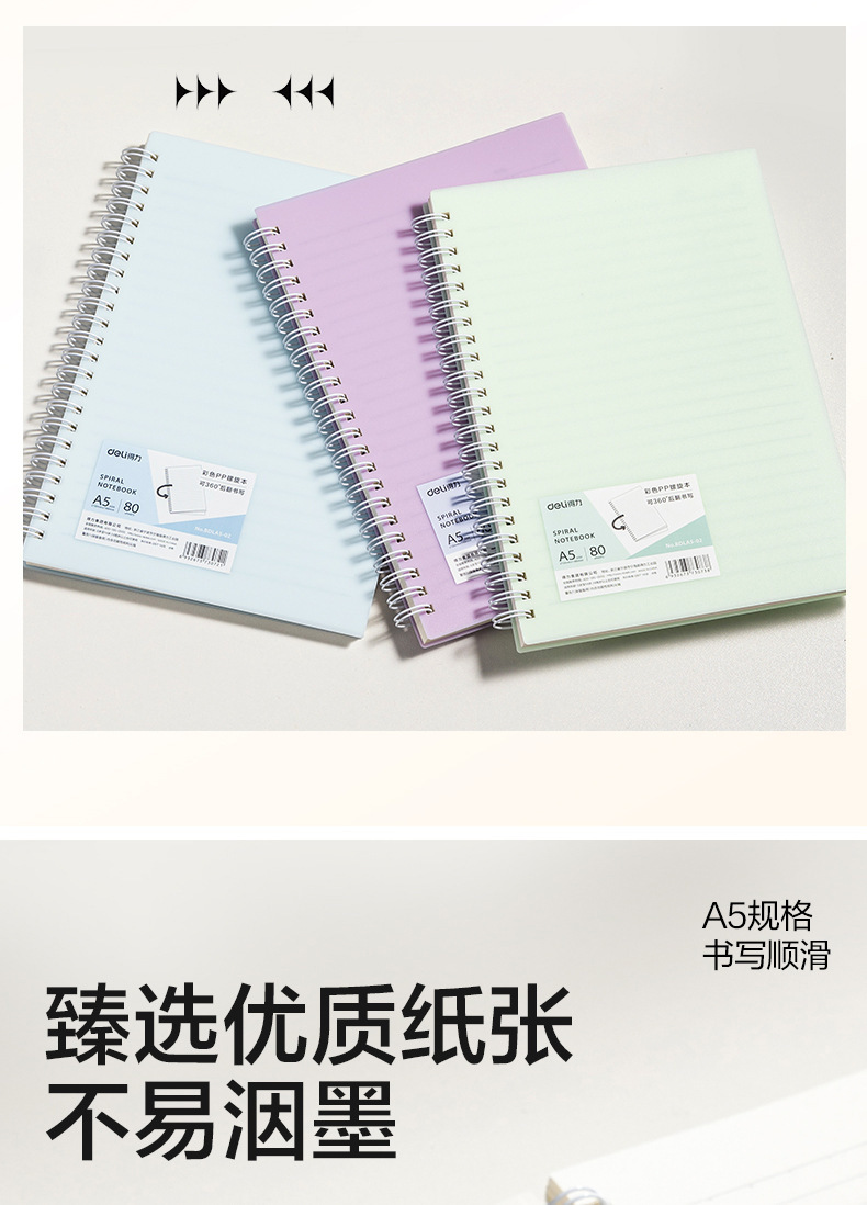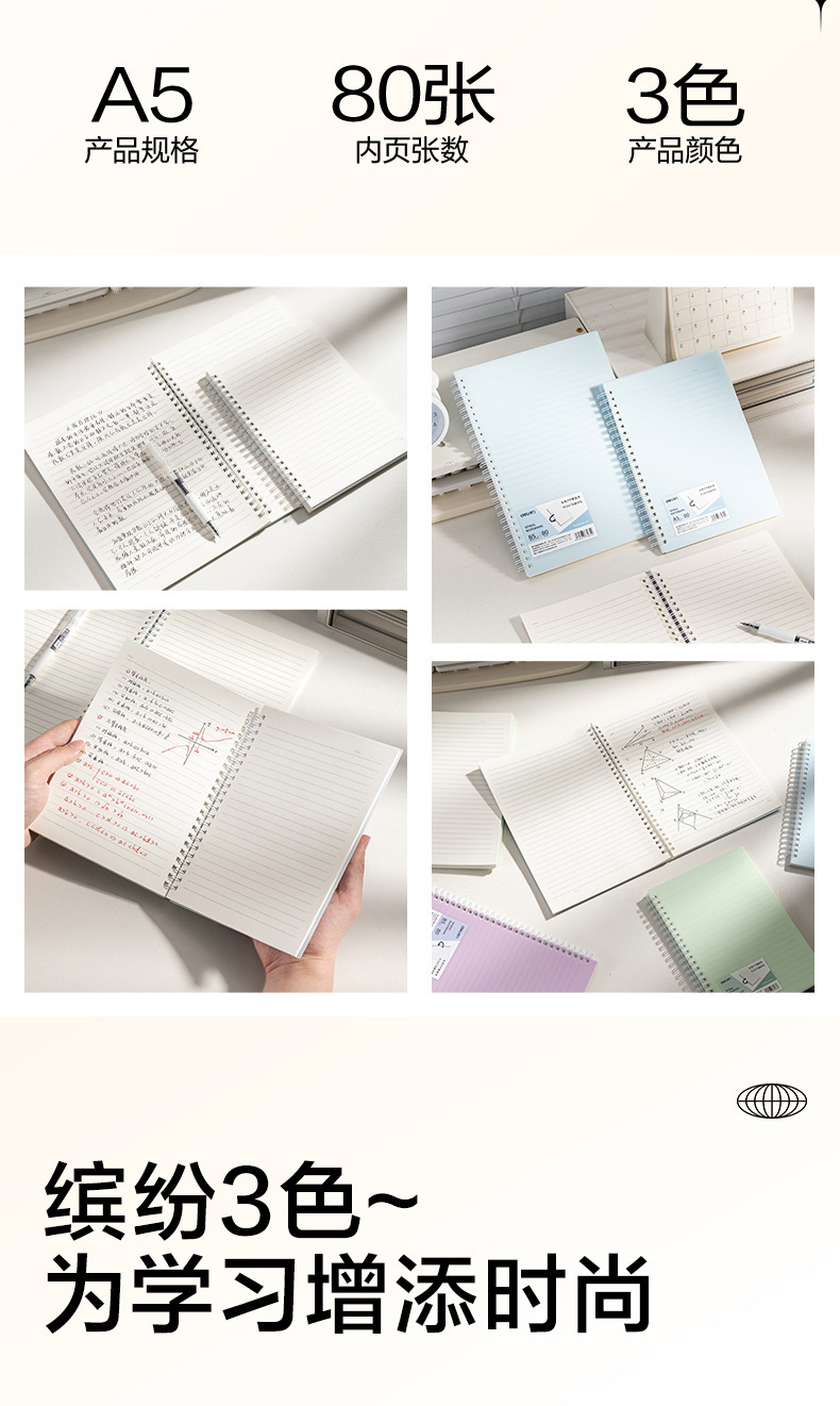 得力PP线圈本笔记本横线b5本子A5错题加厚日记本文具记事本批发