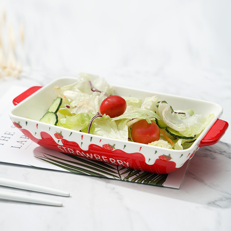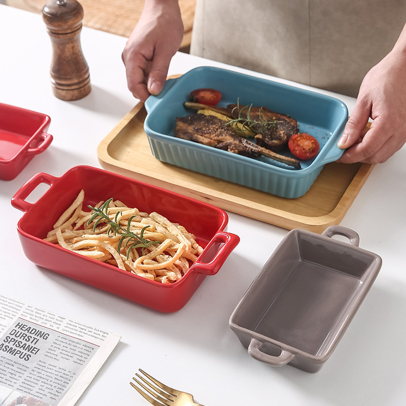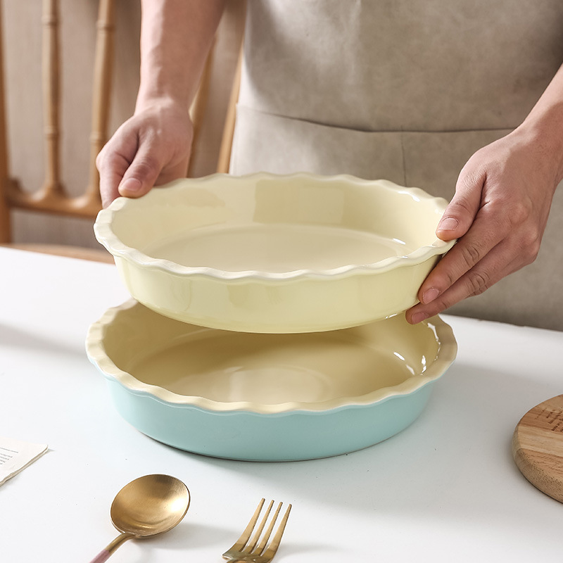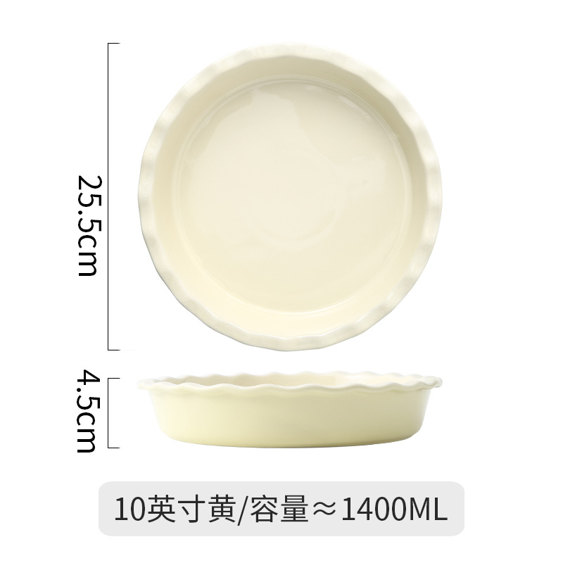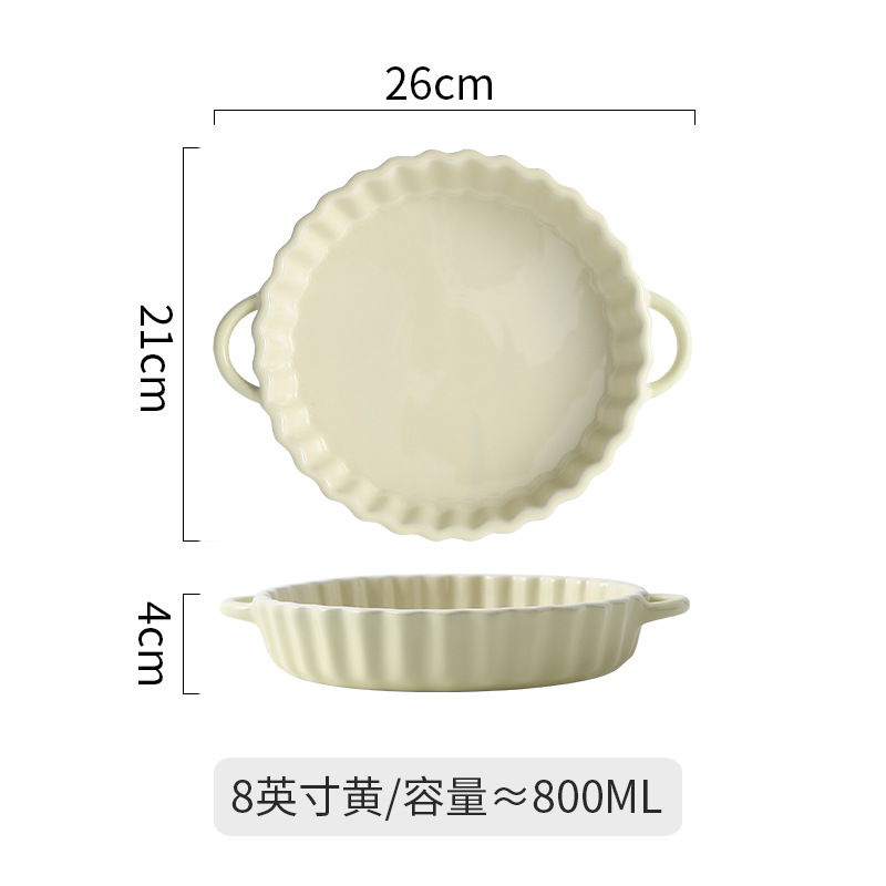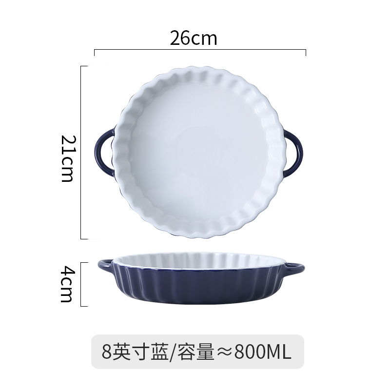 北欧披萨派盘耐热陶瓷双耳烤箱盘家用芝士焗饭盘网红水果沙拉盘子
