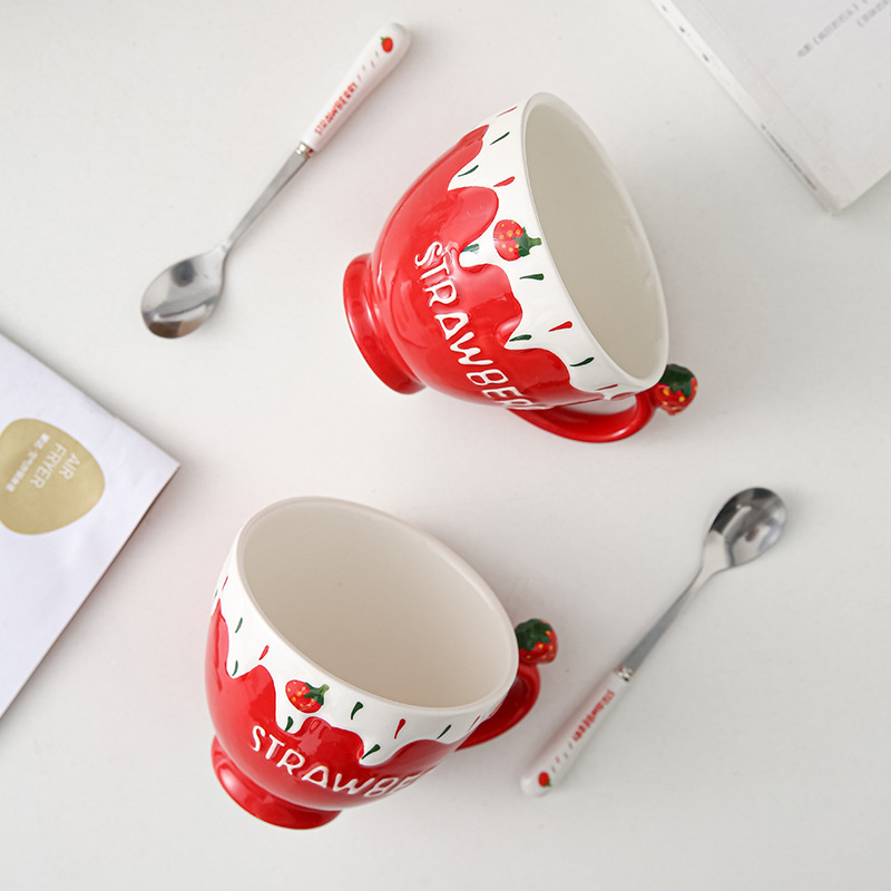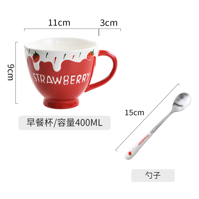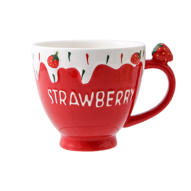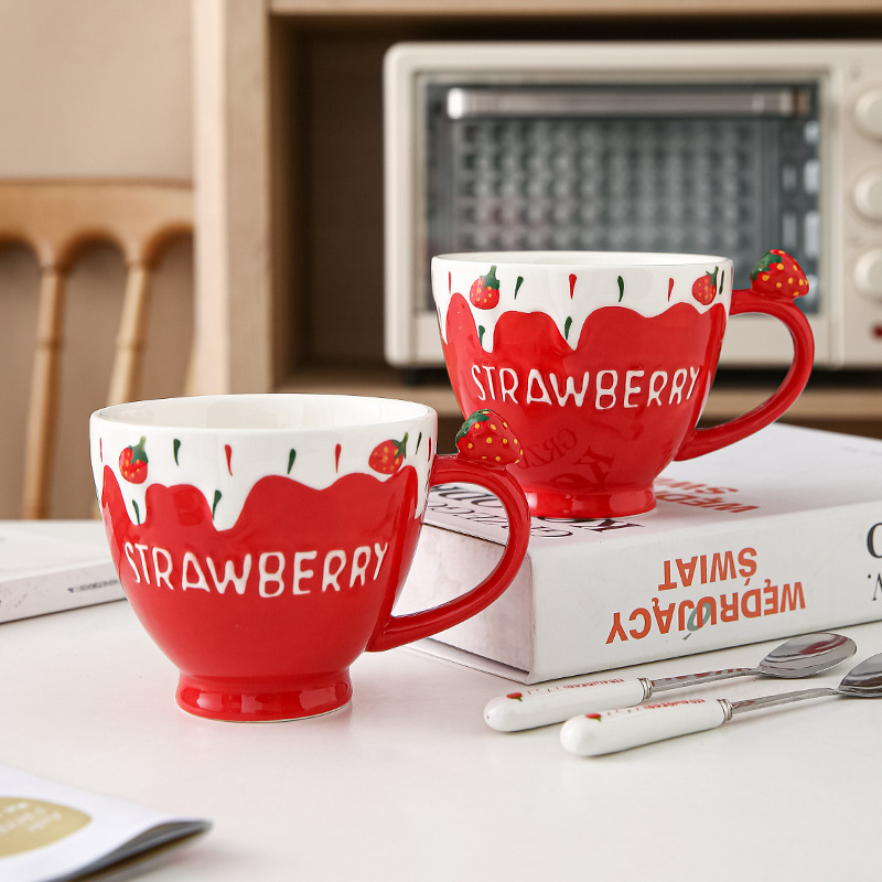 包邮陶瓷杯水杯浮雕草莓创意早餐杯ins设计感办公室牛奶咖啡杯