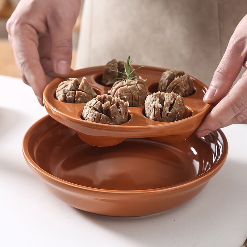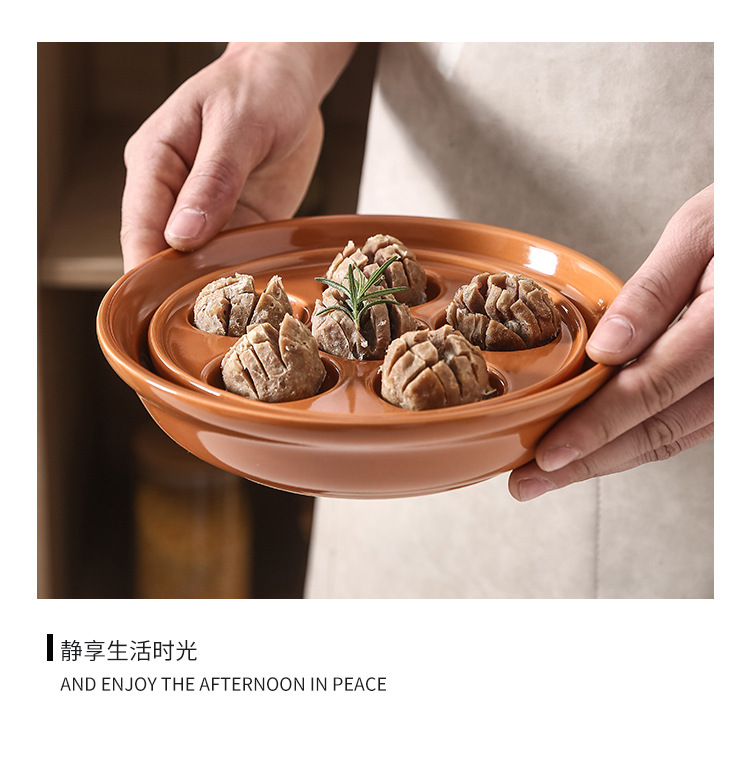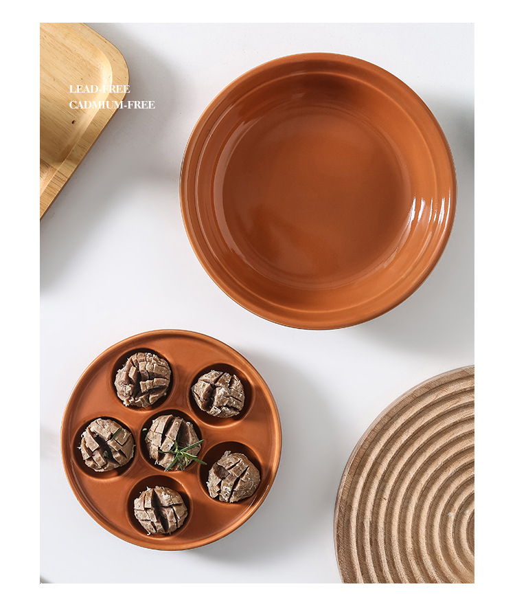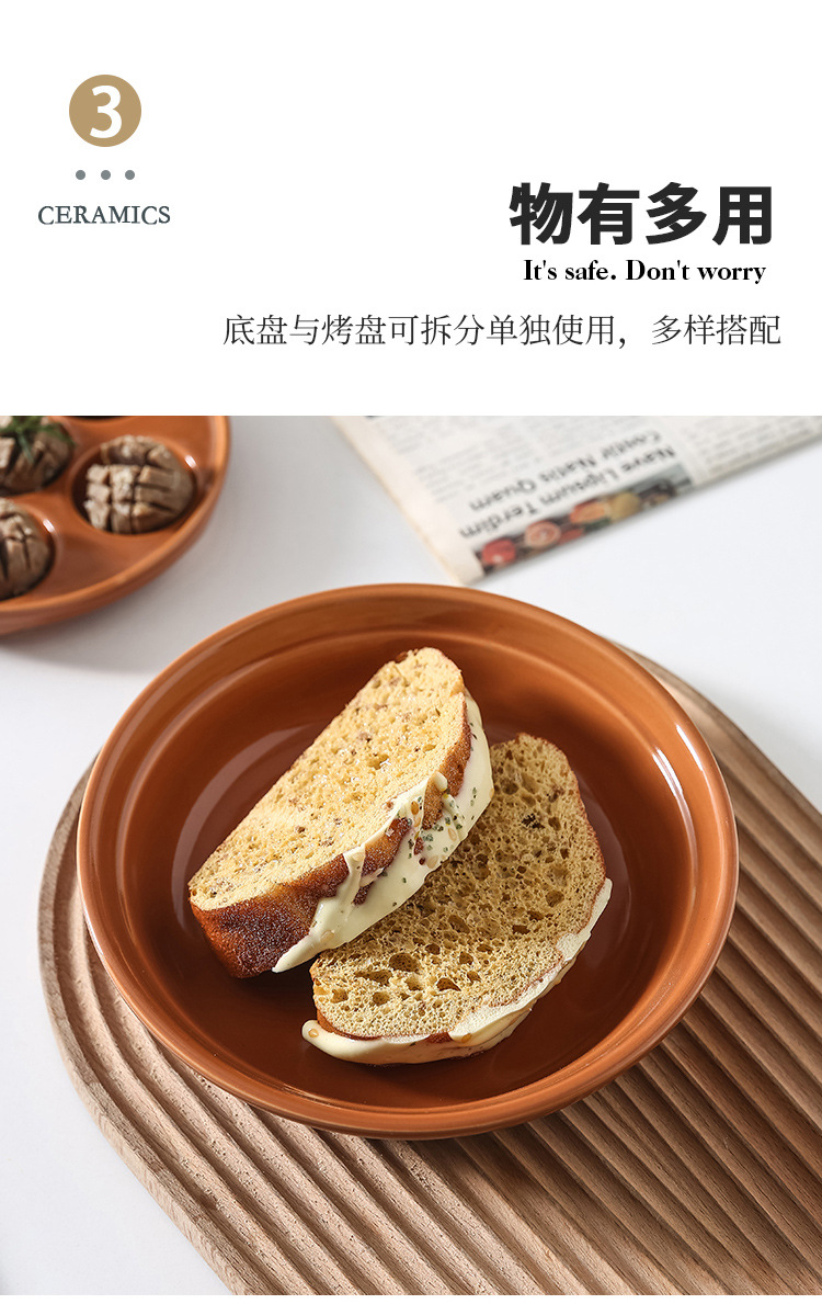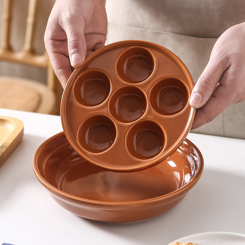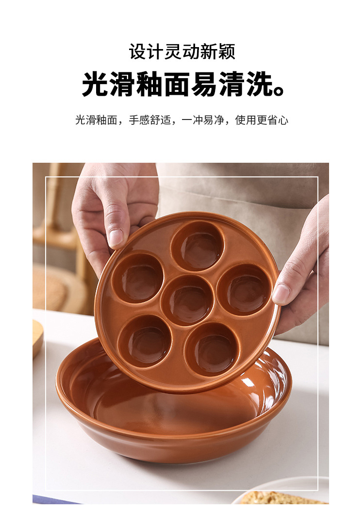 批发陶瓷盘子简约风釉下彩早餐蛋格盘蒸盘家用耐高温烤肉盘蜗牛盘