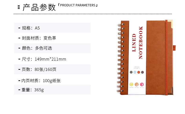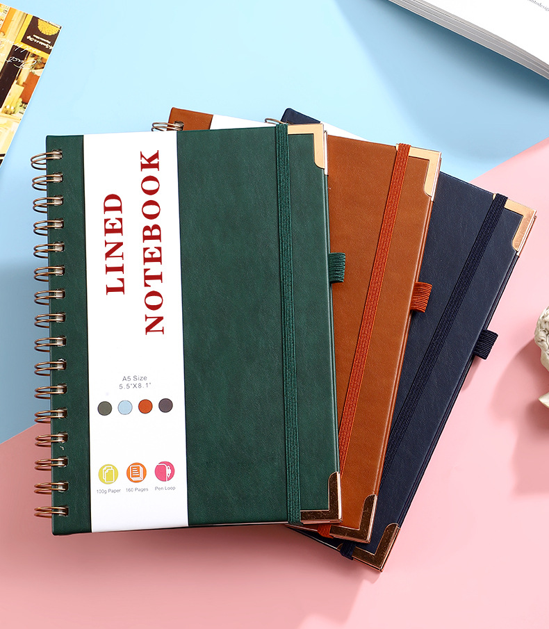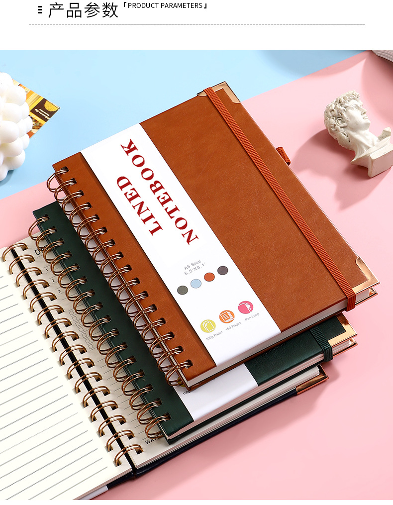 皮质线圈横线本A5亚马逊跨境专供活页本笔记本简约学生加厚记事本