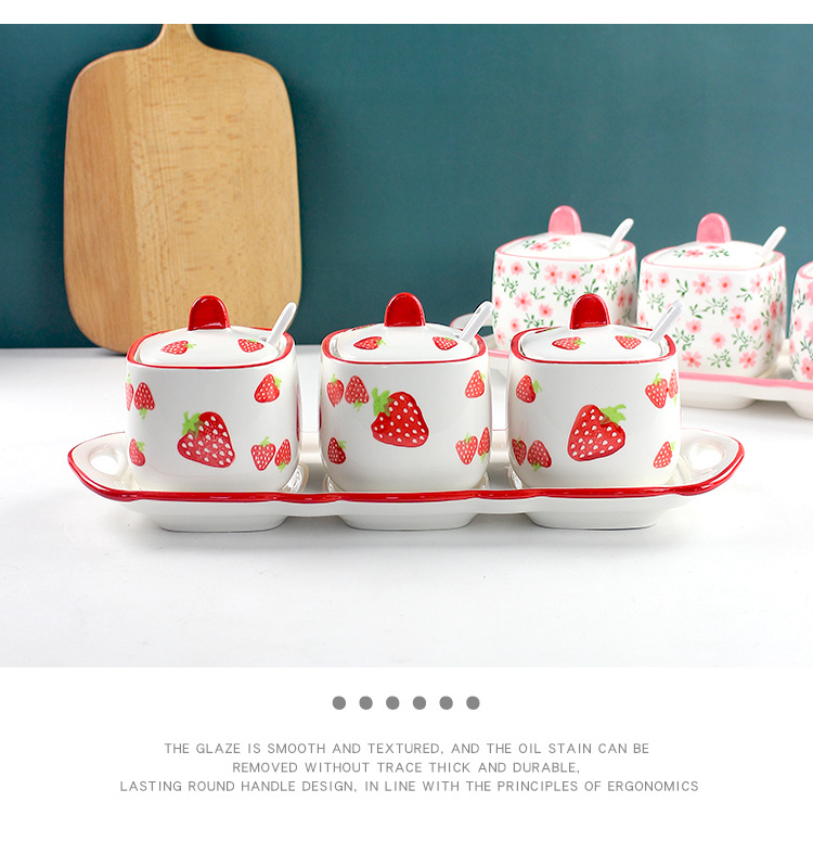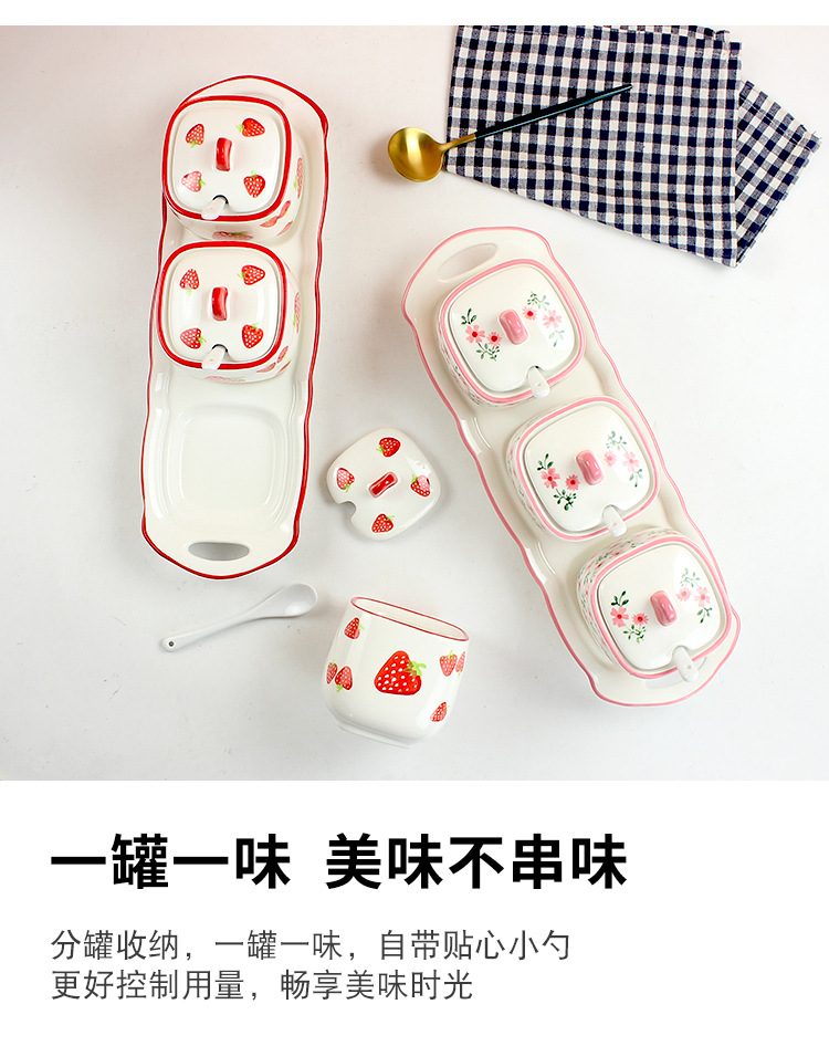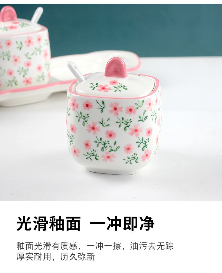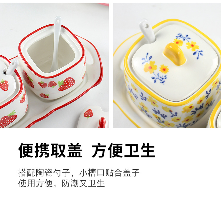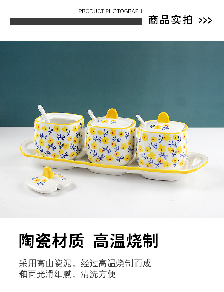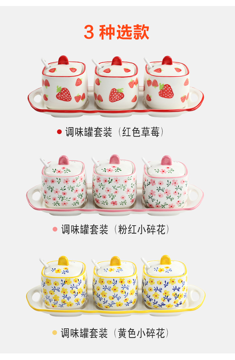 现代简约手绘调味罐子套装三件套 胡椒辣椒盐罐陶瓷家用厨房用品