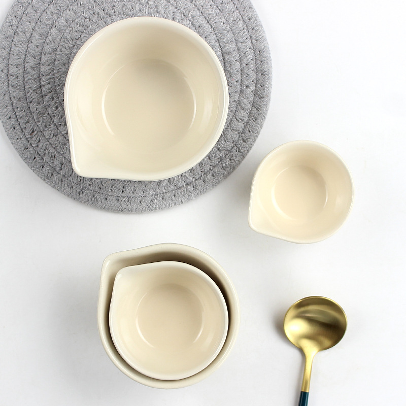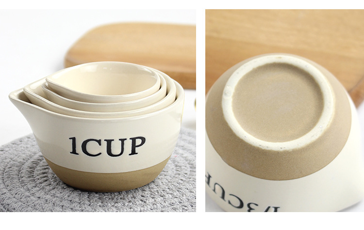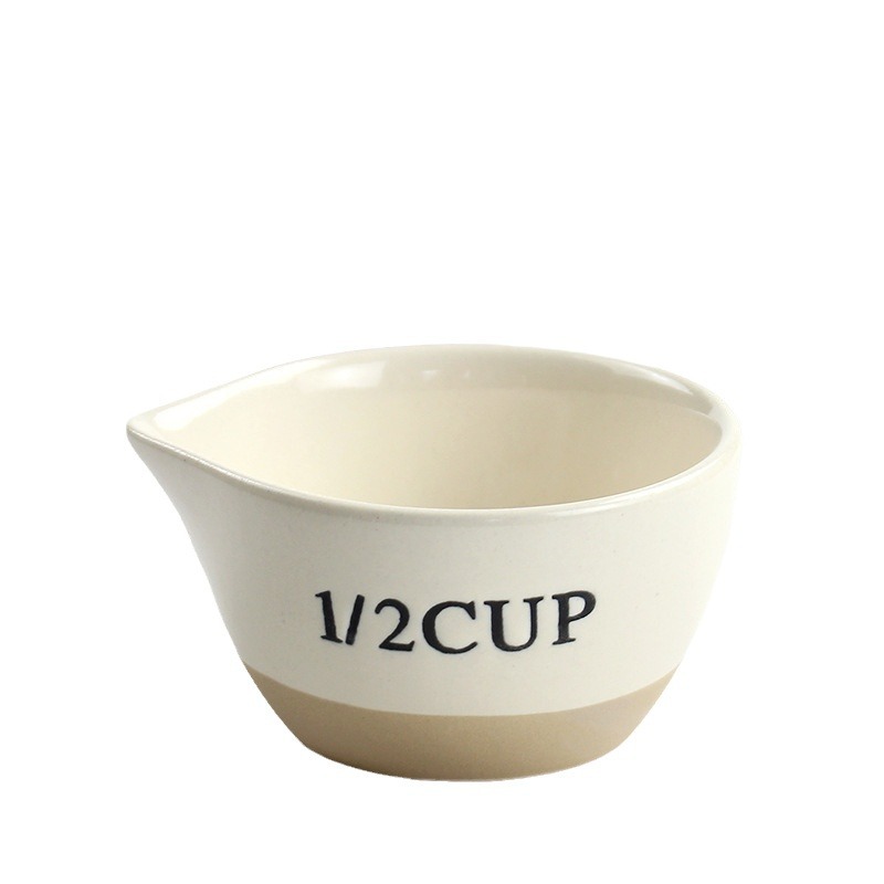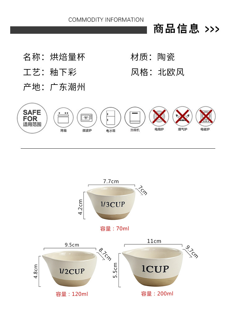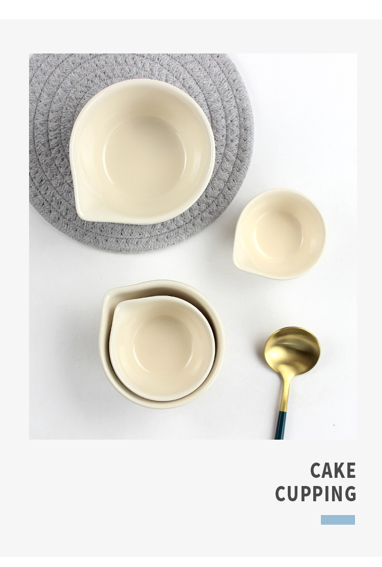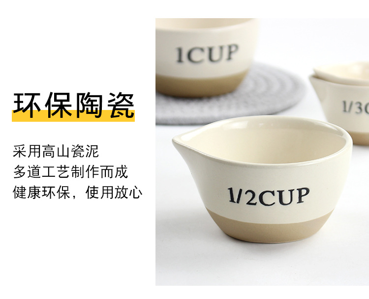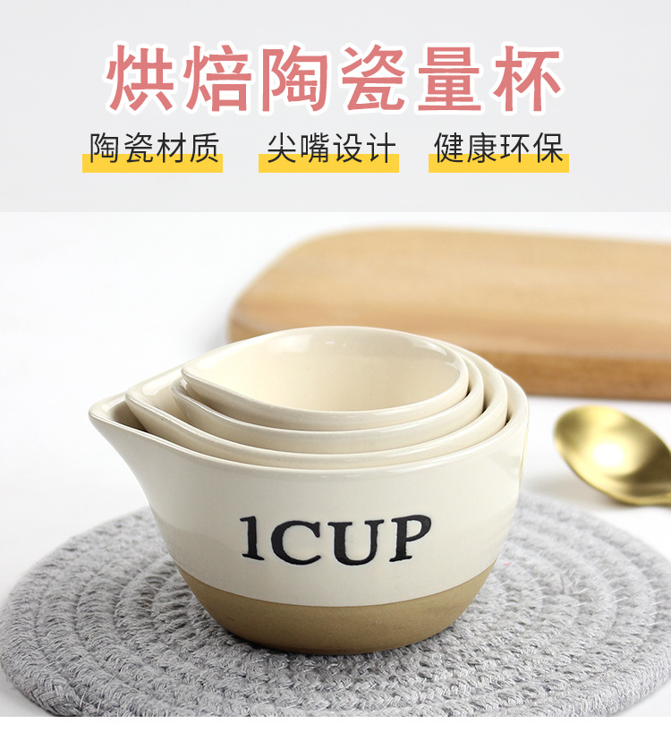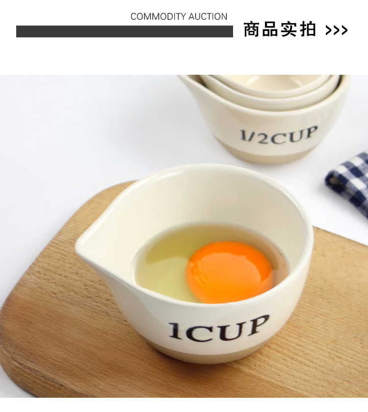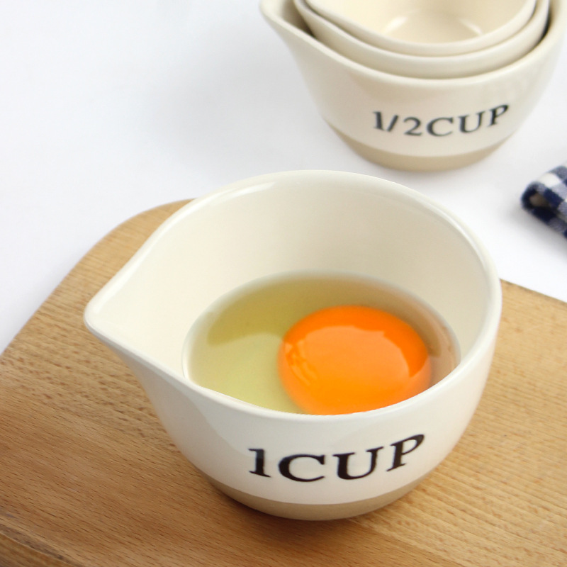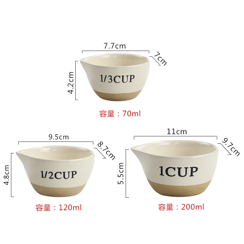 陶瓷牛奶量杯鸡蛋量碗烘焙DIY用具刻度杯 创意釉下彩小烤碗三件套