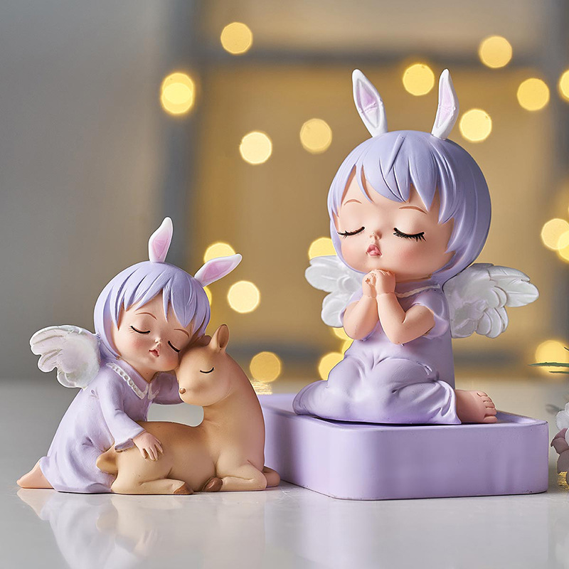 北欧ins卡通风天使小夜灯摆件儿童少女心房间桌面树脂装饰品摆设