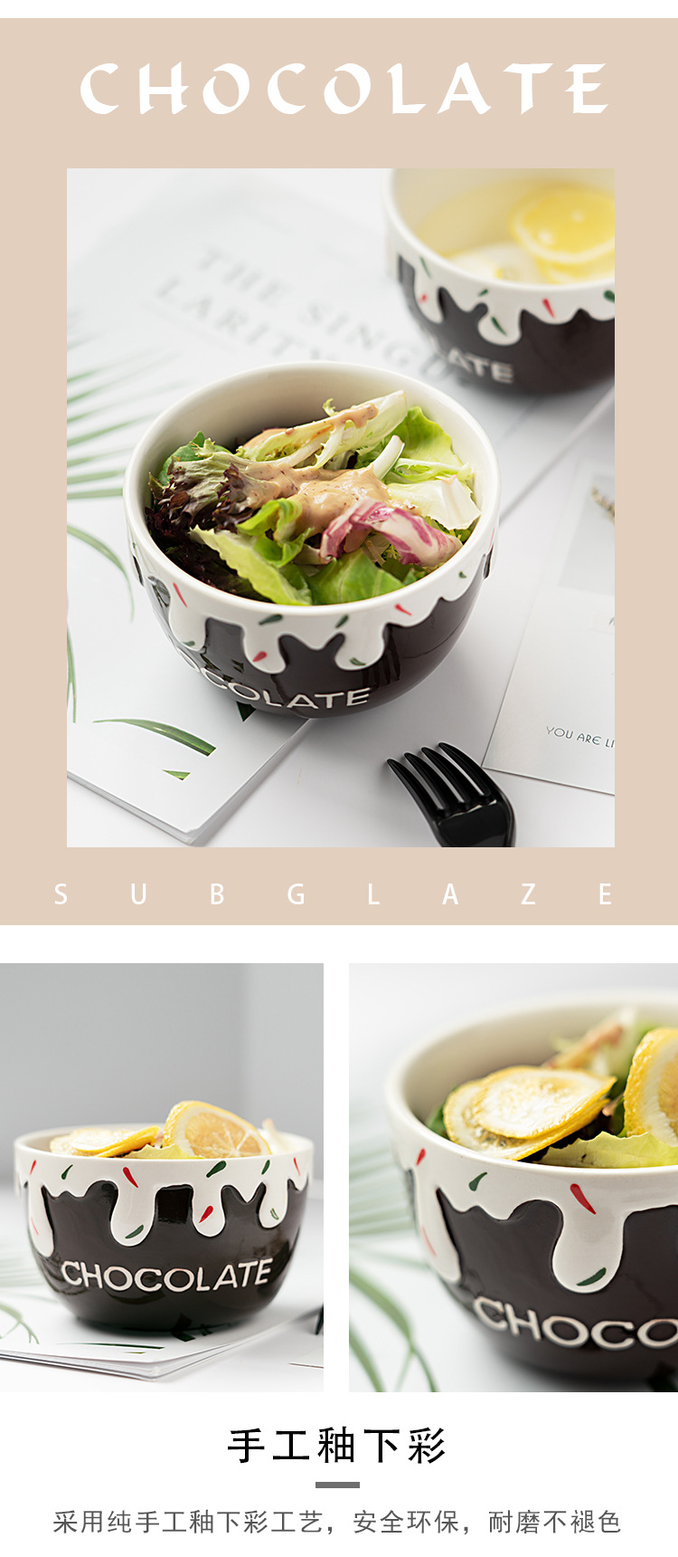 包邮潮州釉下彩餐具家用陶瓷碗饭碗可爱风酸奶碗高颜值小汤面碗