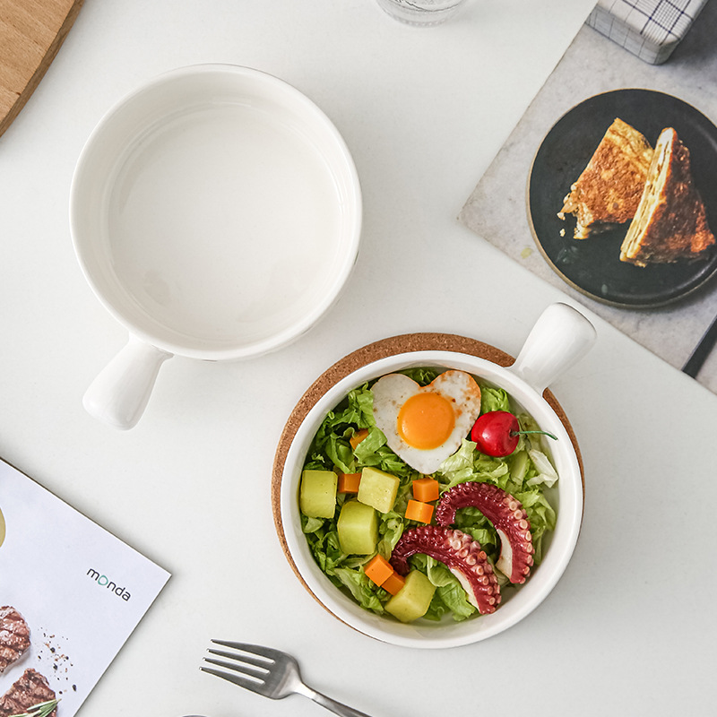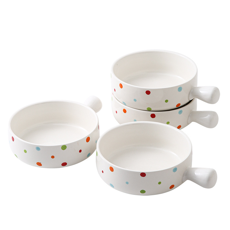 创意波点釉下彩手柄碗泡面水果沙拉陶瓷碗家用芝士焗饭圆形烘焙碗