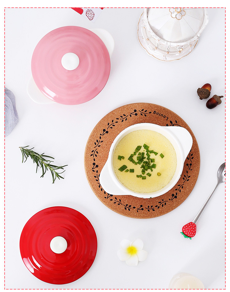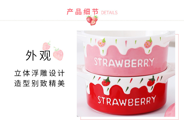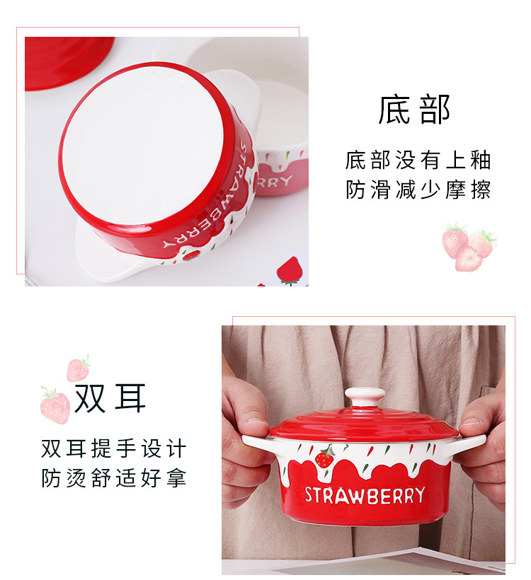 包邮陶瓷双耳碗家用高颜值带盖汤碗陶瓷碗可爱少女心面碗饭碗家用