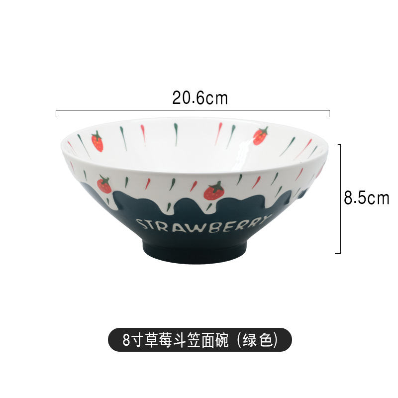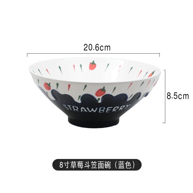 包邮日式斗笠饭碗陶瓷碗萌趣可爱草莓拉面碗釉下彩耐高温大号汤碗