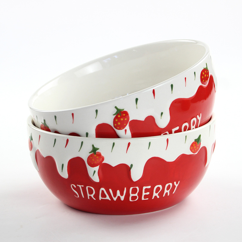包邮7寸陶瓷汤面碗浮雕手绘大号碗高颜值加厚泡面碗家用螺蛳粉碗
