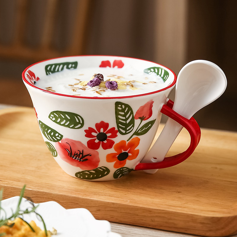 严选好品手绘釉下彩办公室陶瓷杯子创意高颜值早餐牛奶马克杯水杯