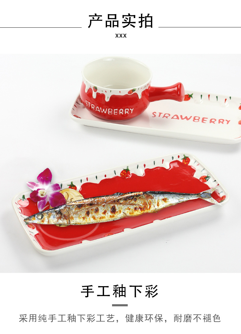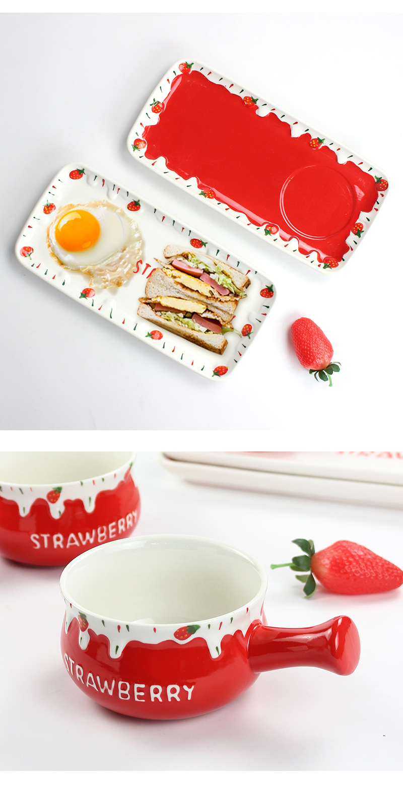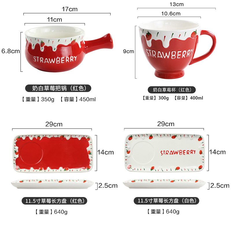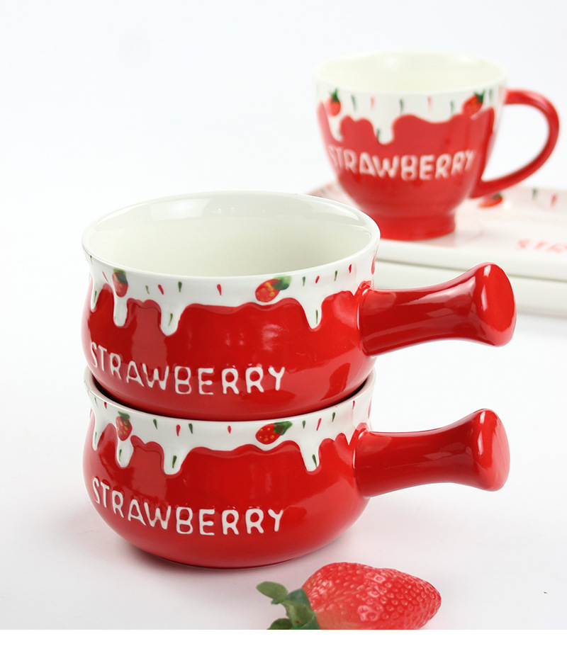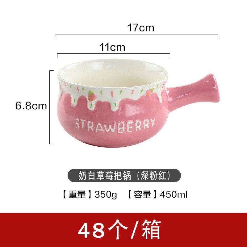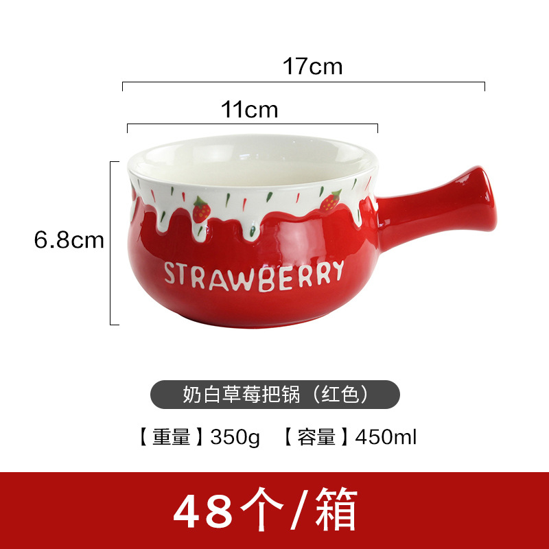 可爱清新陶瓷小奶锅精美一人食可微波早餐锅家用圣诞草莓手柄碗
