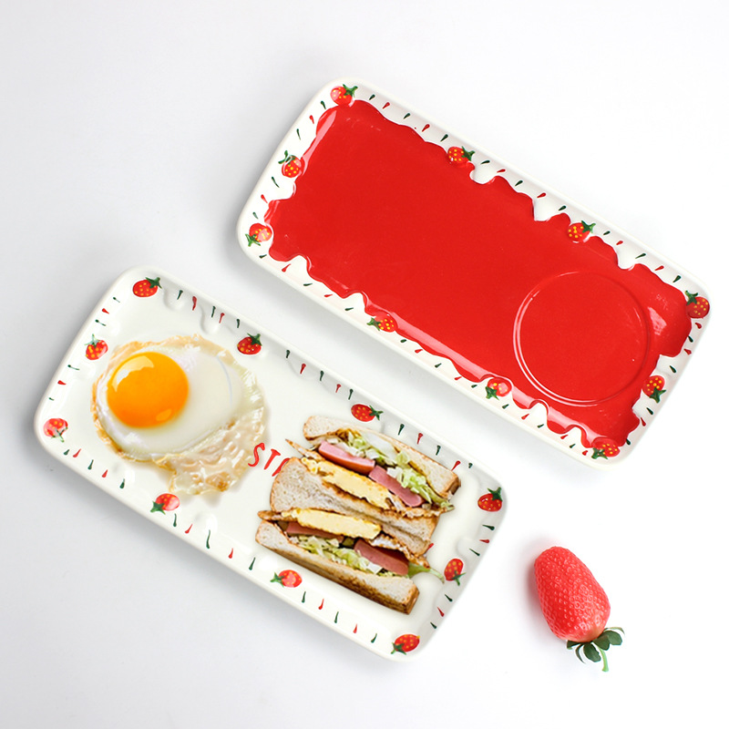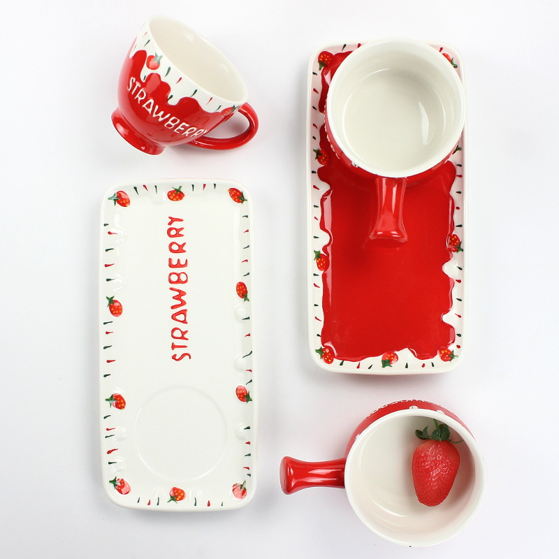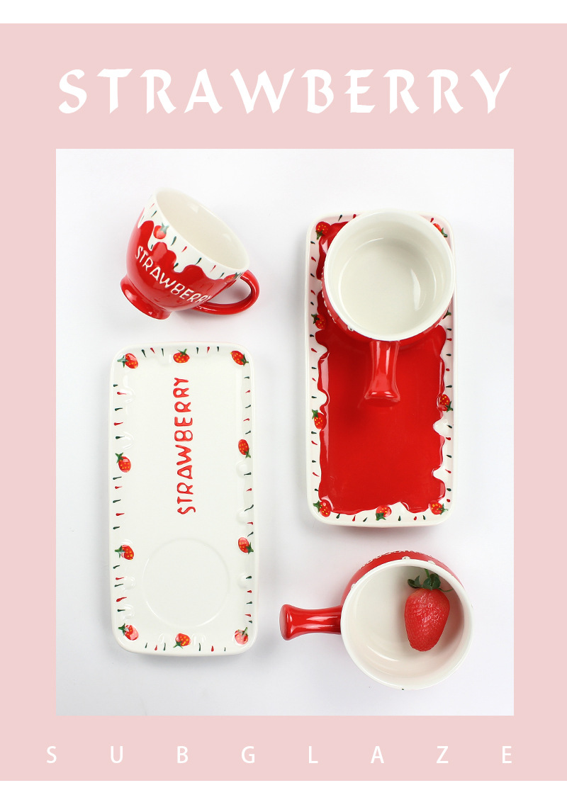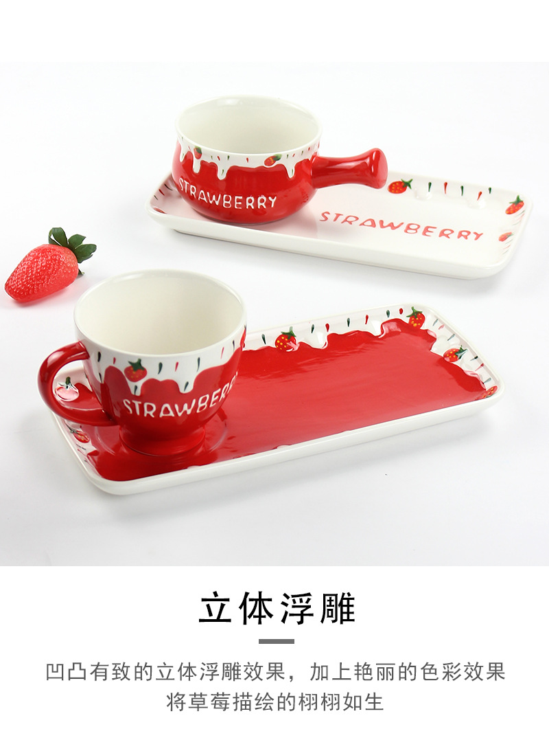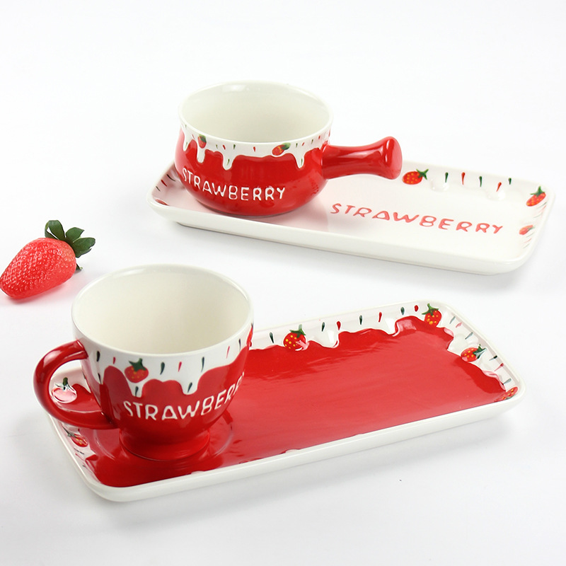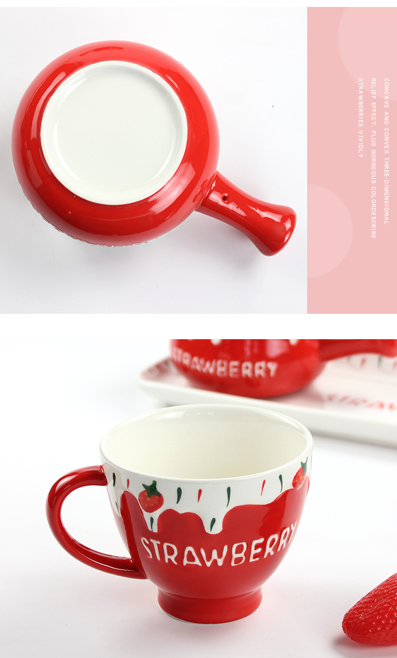 可爱清新陶瓷小奶锅精美一人食可微波早餐锅家用圣诞草莓手柄碗