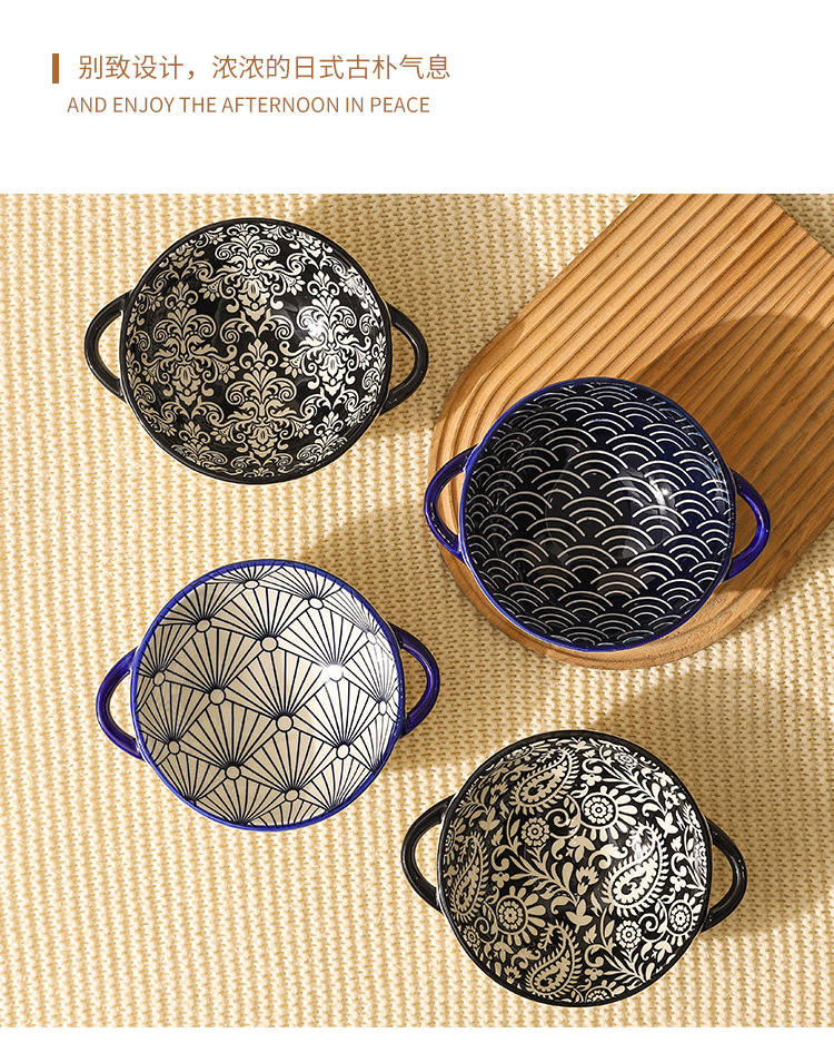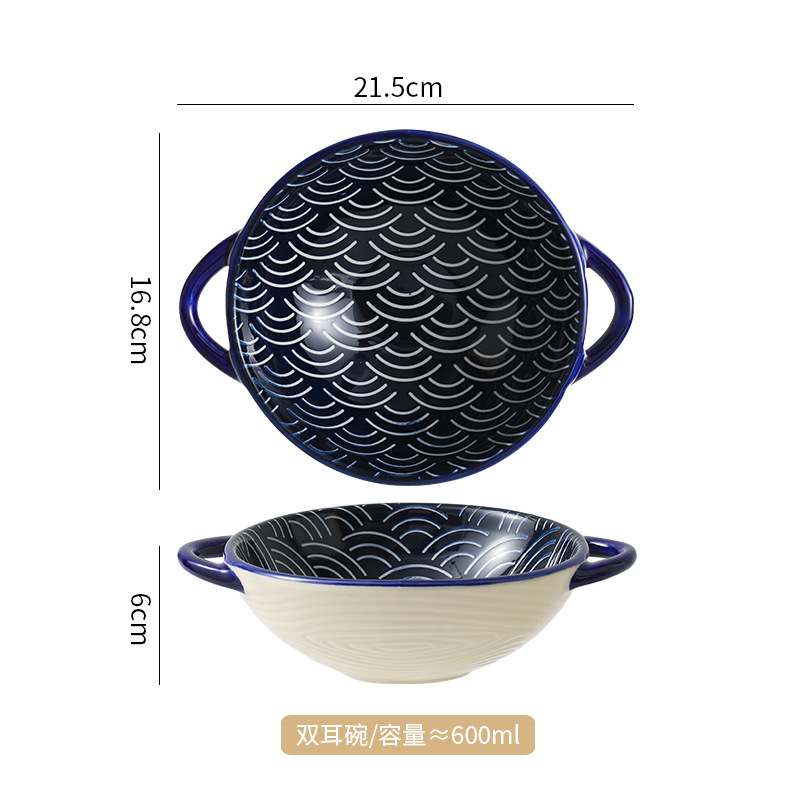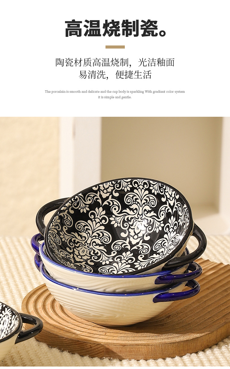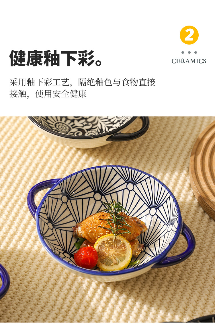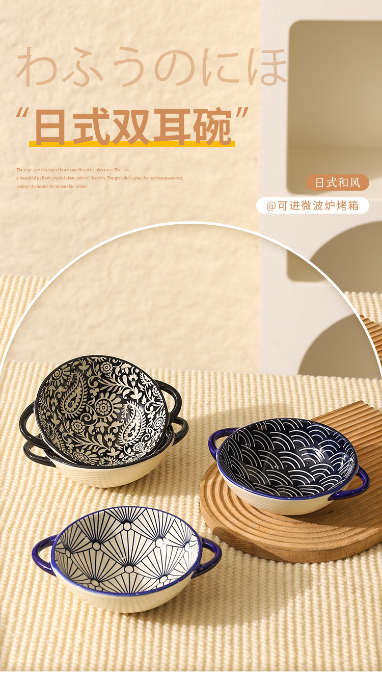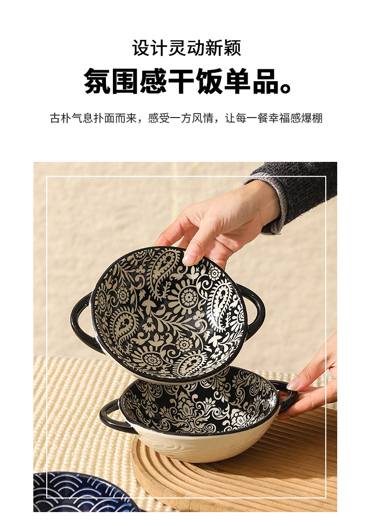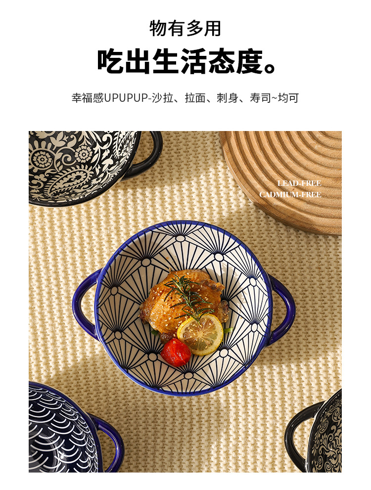 日式陶瓷餐具双耳汤碗树纹款螺蛳粉碗防烫家用泡面碗大容量沙拉碗