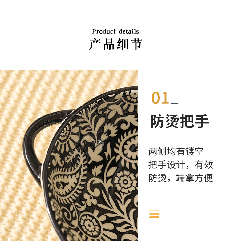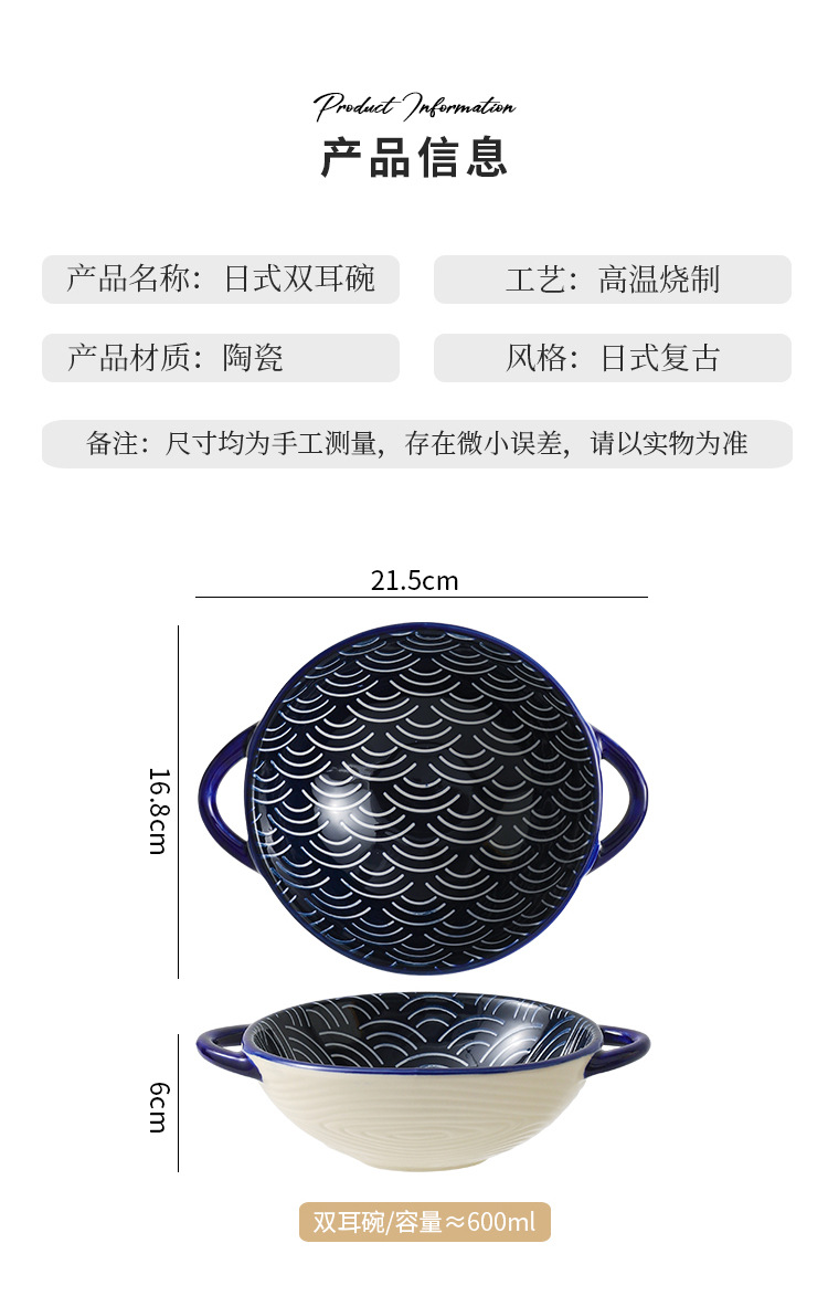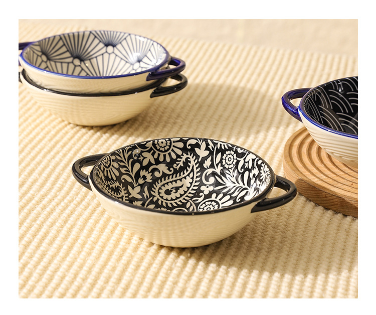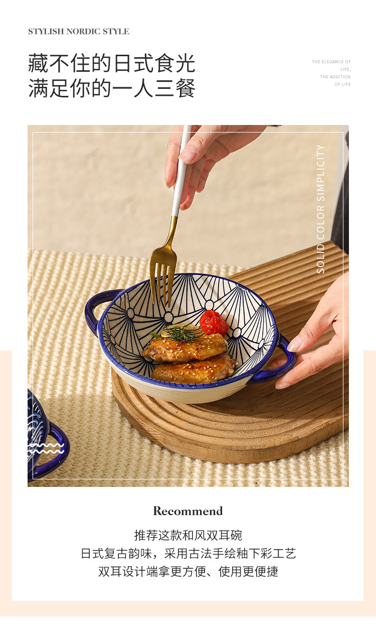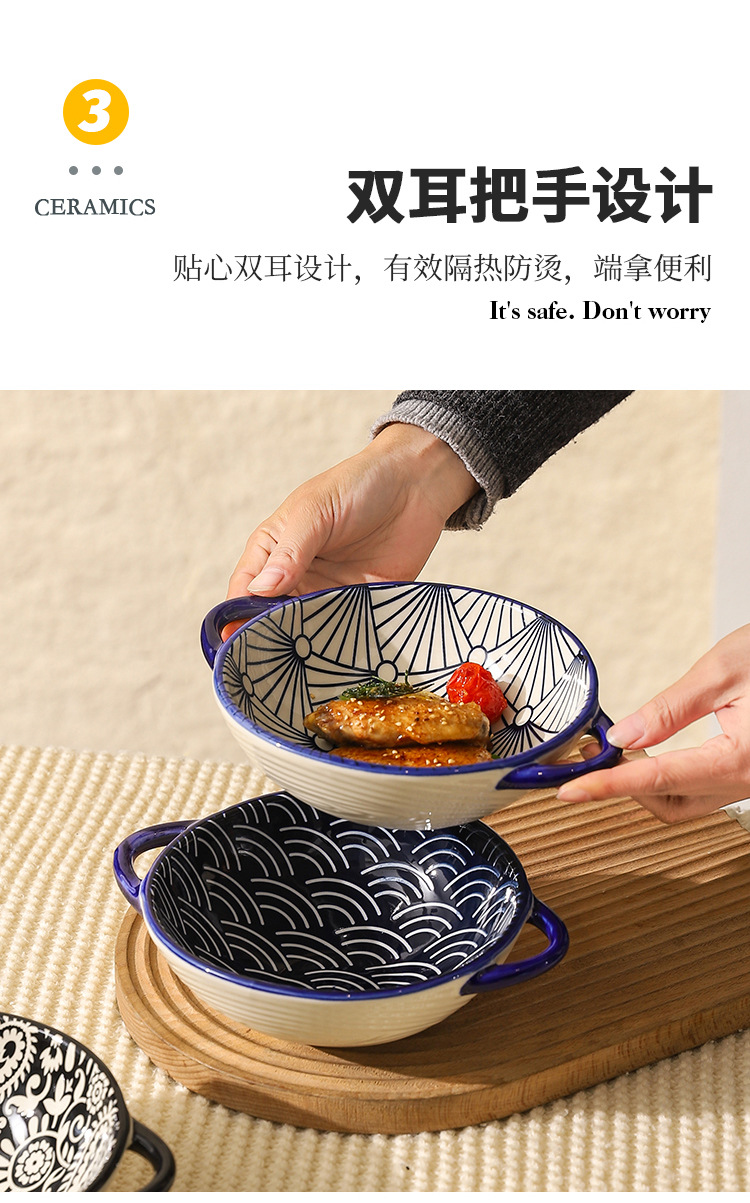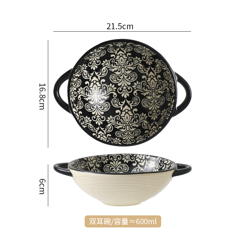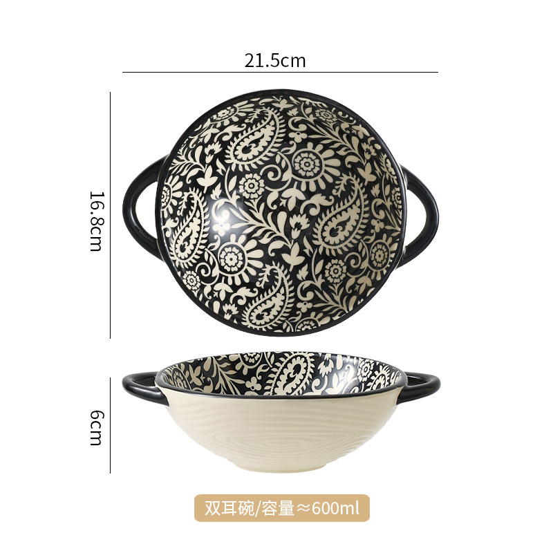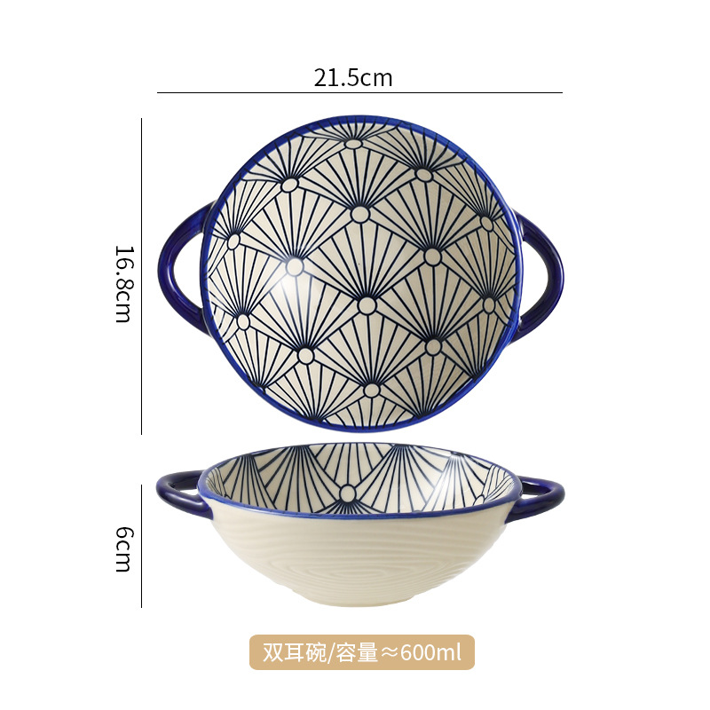 日式陶瓷餐具双耳汤碗树纹款螺蛳粉碗防烫家用泡面碗大容量沙拉碗