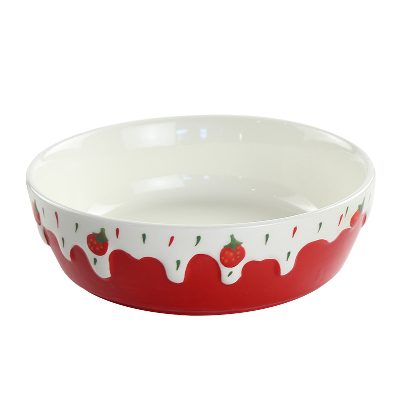 批发8寸创意浮雕草莓碗陶瓷碗家用大容量沙拉碗高颜值潮州餐具