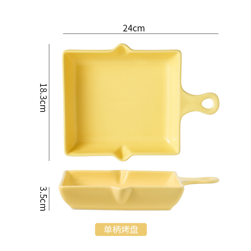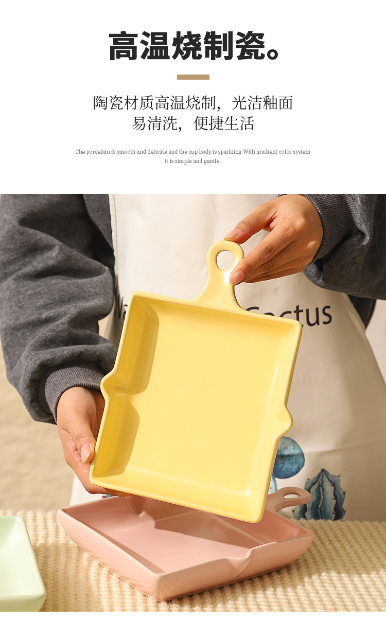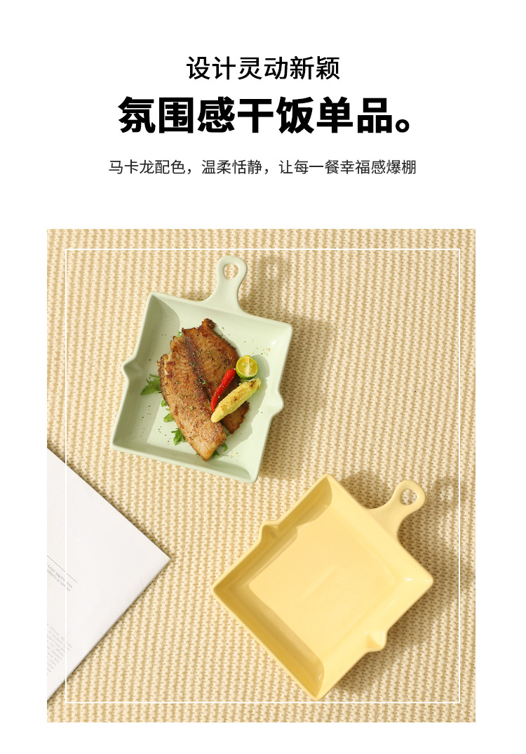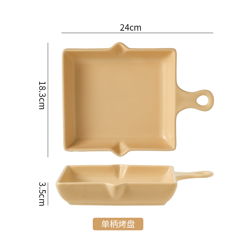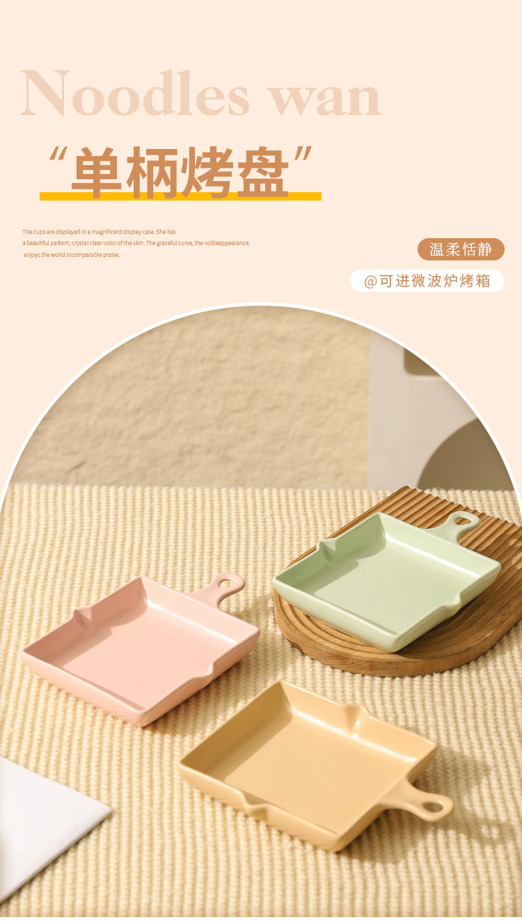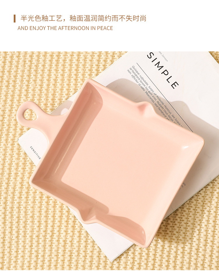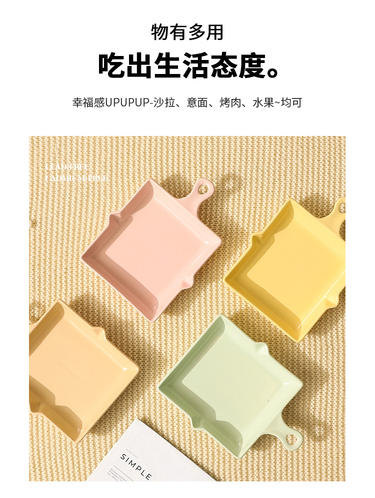 陶瓷烤盘北欧风单柄家用披萨盘ins高颜值简约奶油风盘子餐具批发