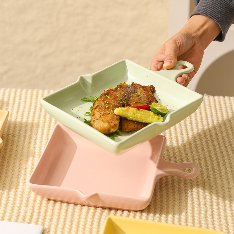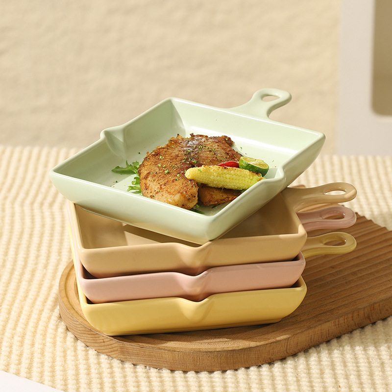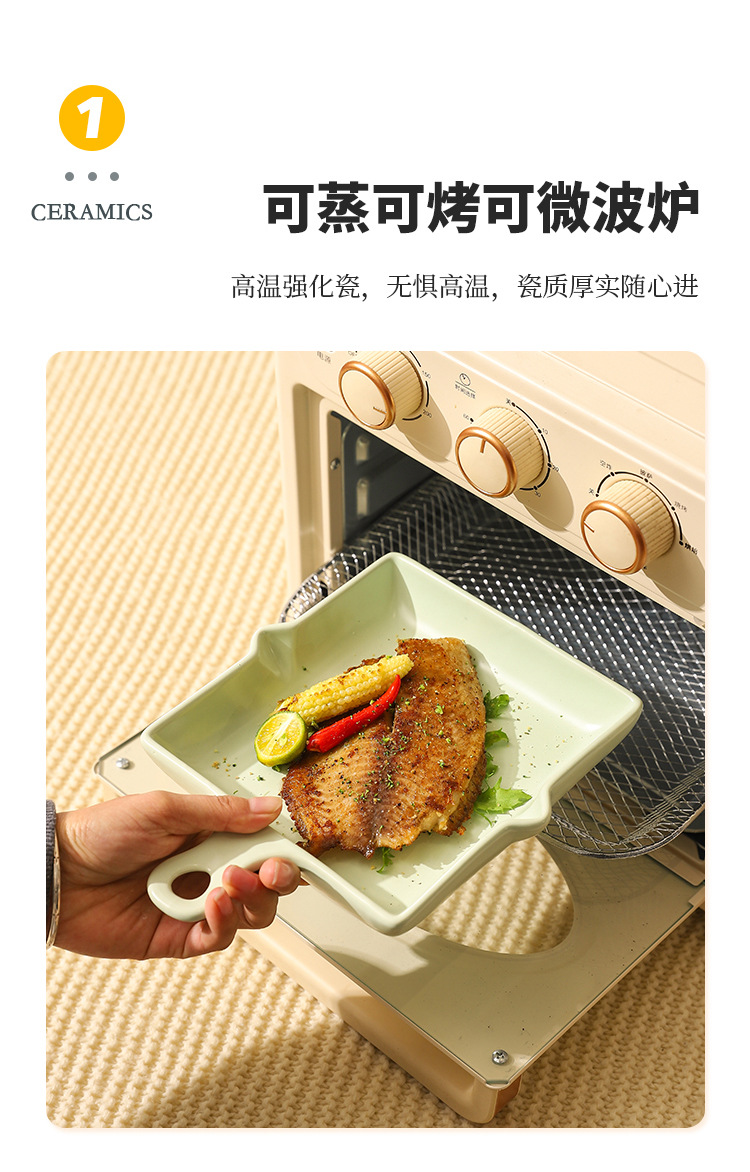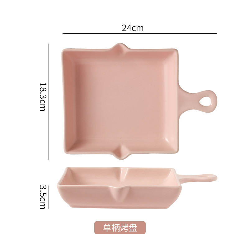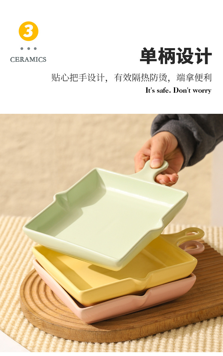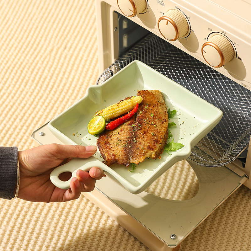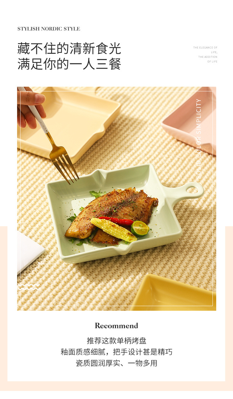 陶瓷烤盘北欧风单柄家用披萨盘ins高颜值简约奶油风盘子餐具批发