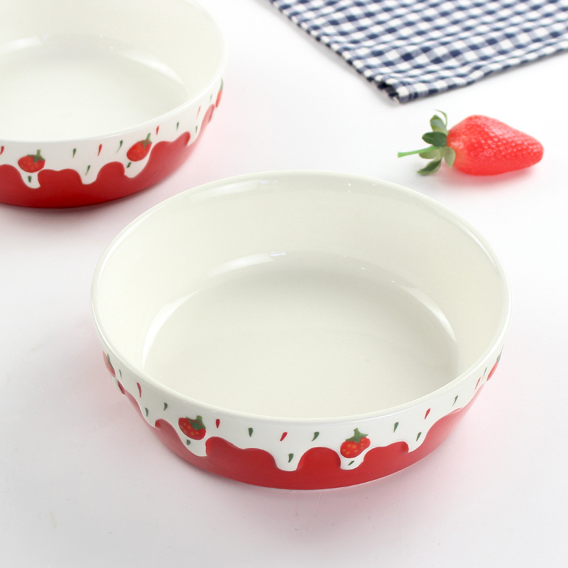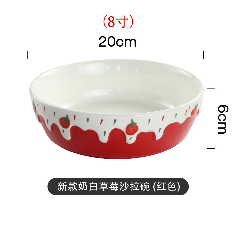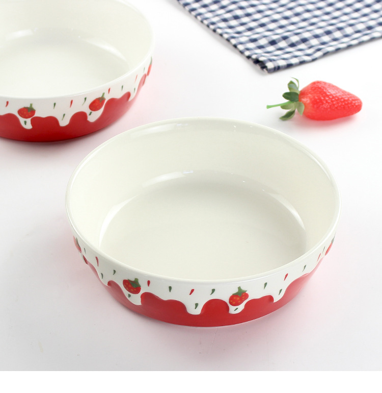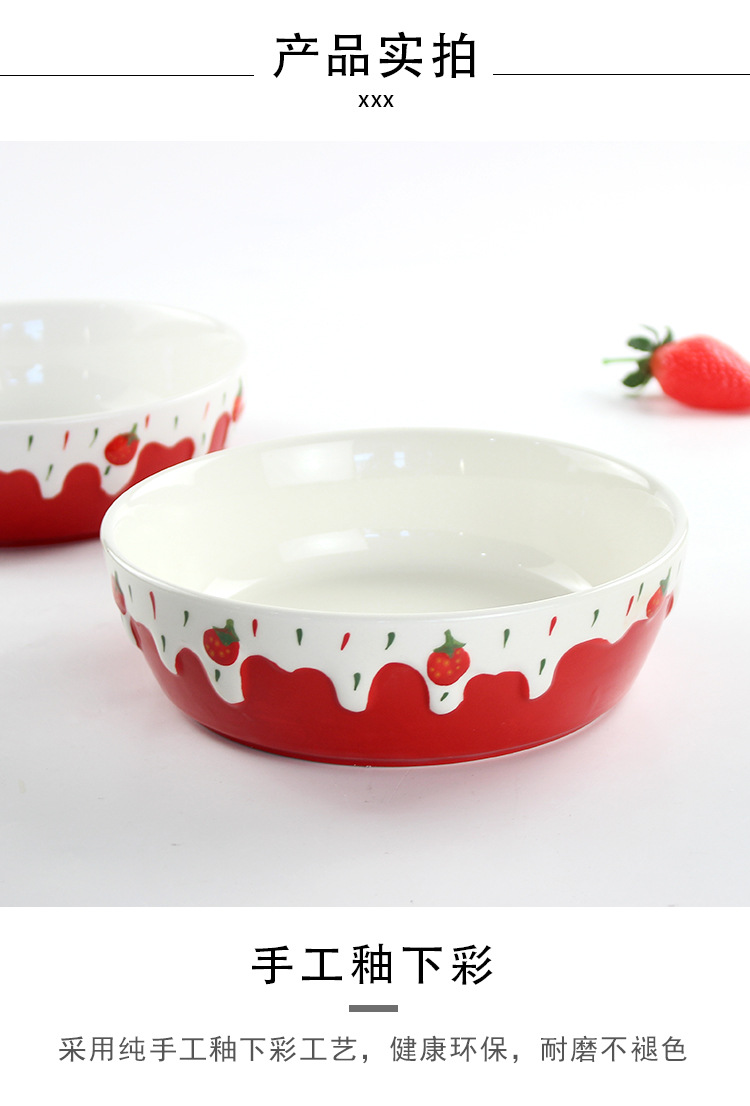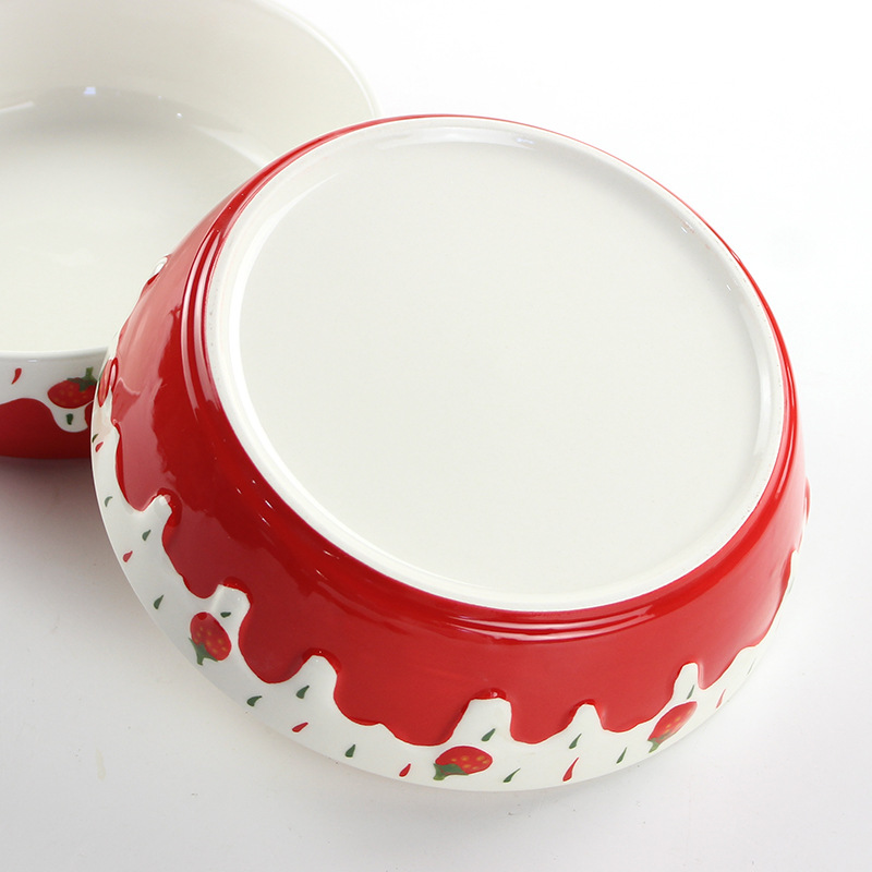 包邮手绘陶瓷轻食水果沙拉碗ins可爱风浮雕草莓果盘碗8寸大容量碗