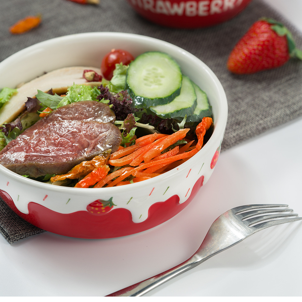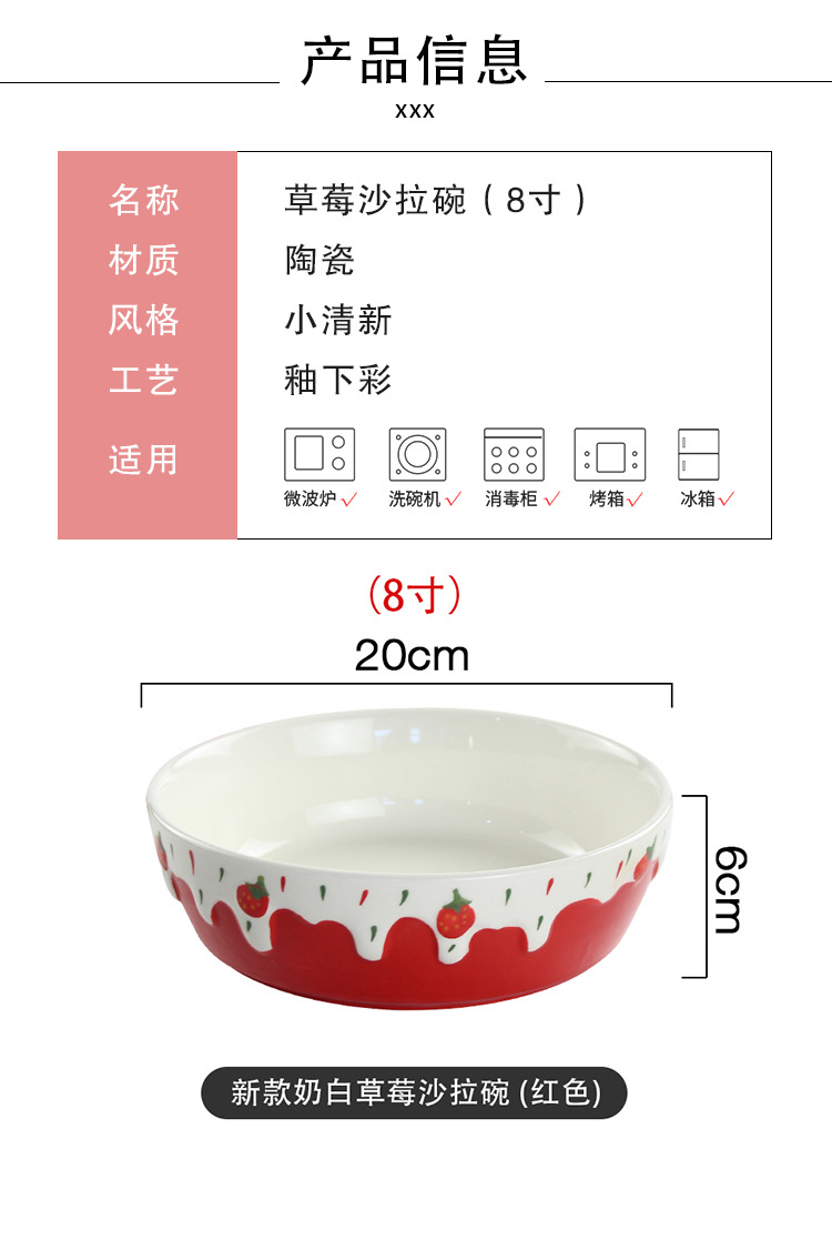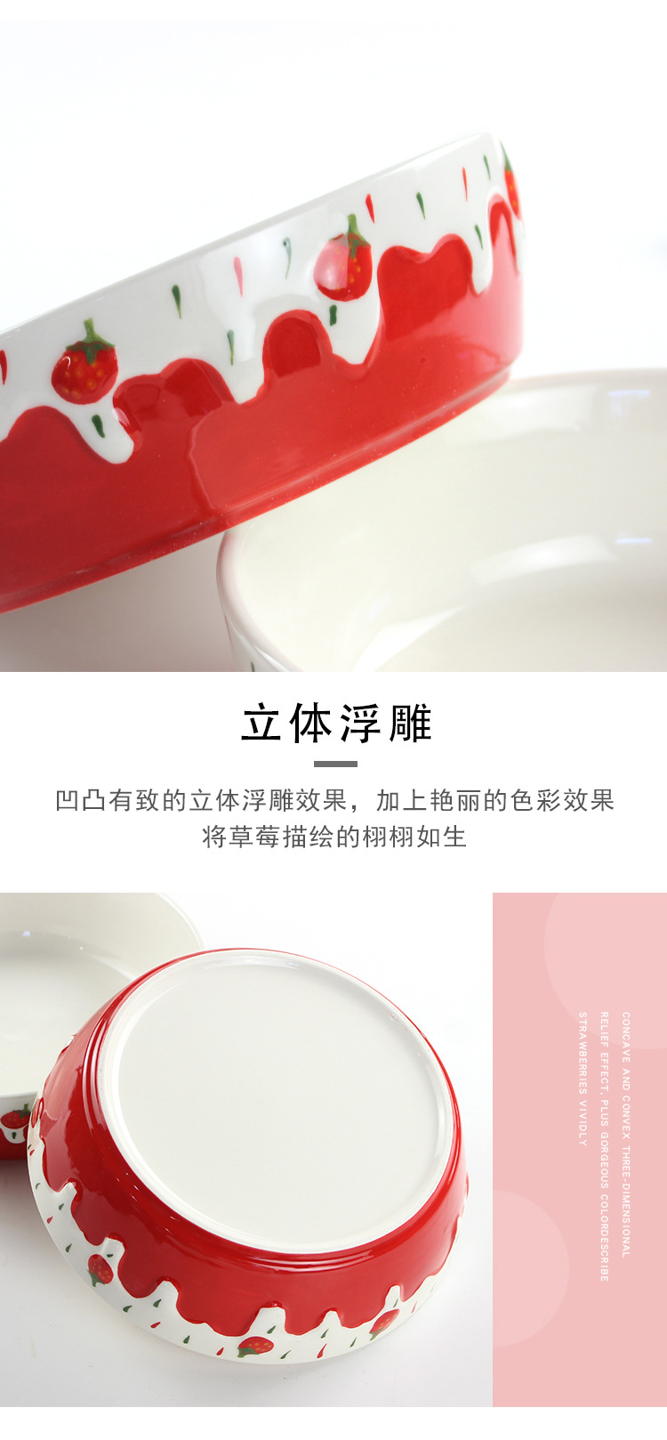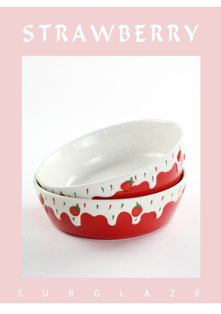 包邮手绘陶瓷轻食水果沙拉碗ins可爱风浮雕草莓果盘碗8寸大容量碗