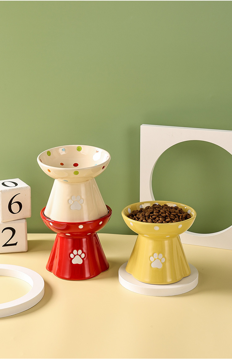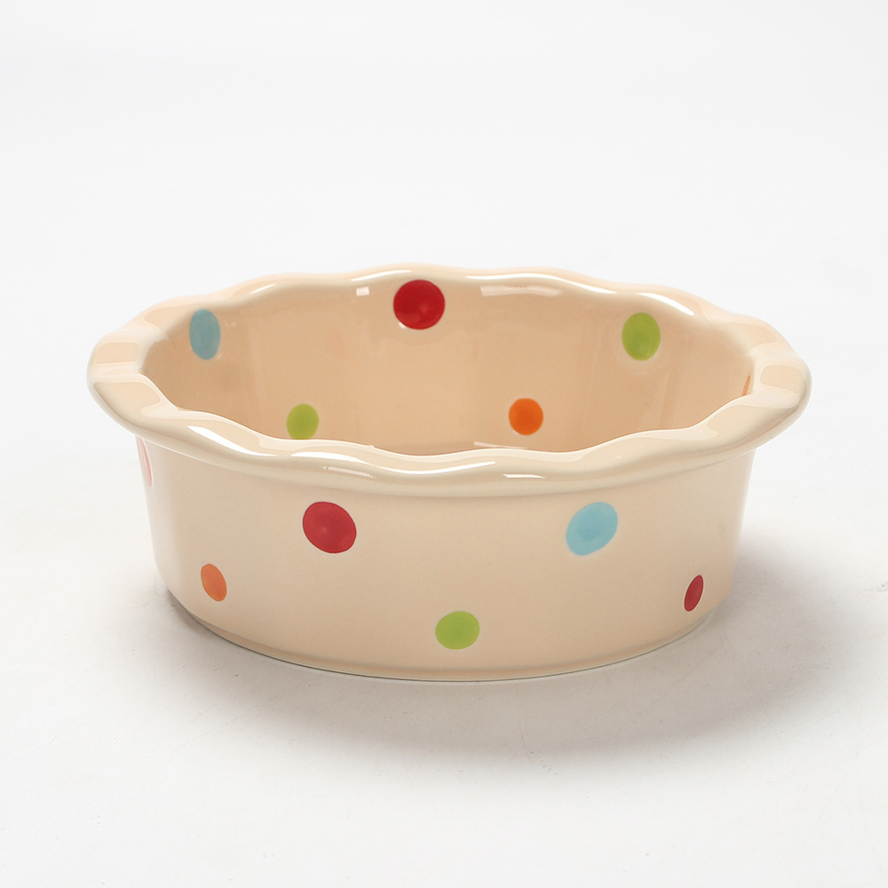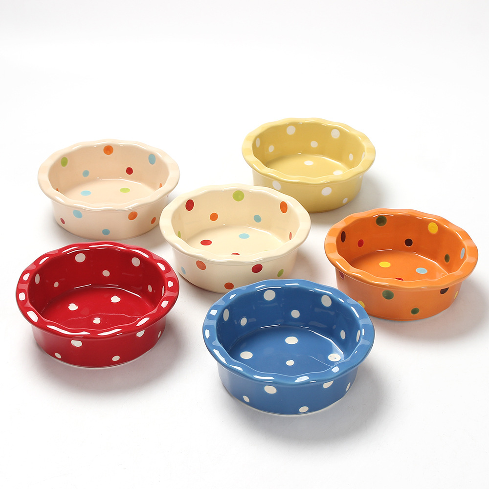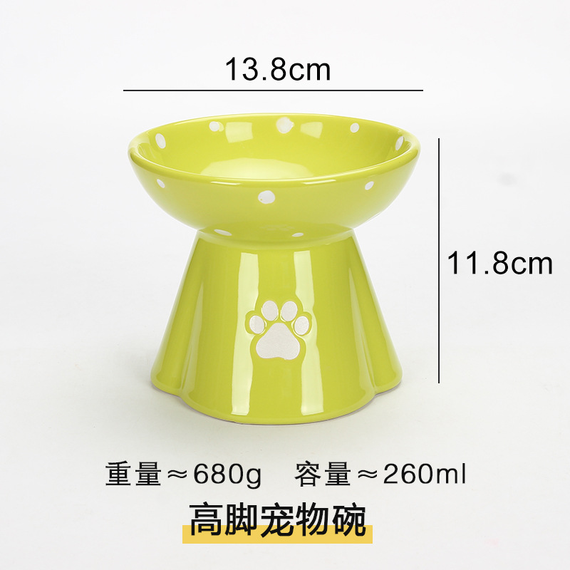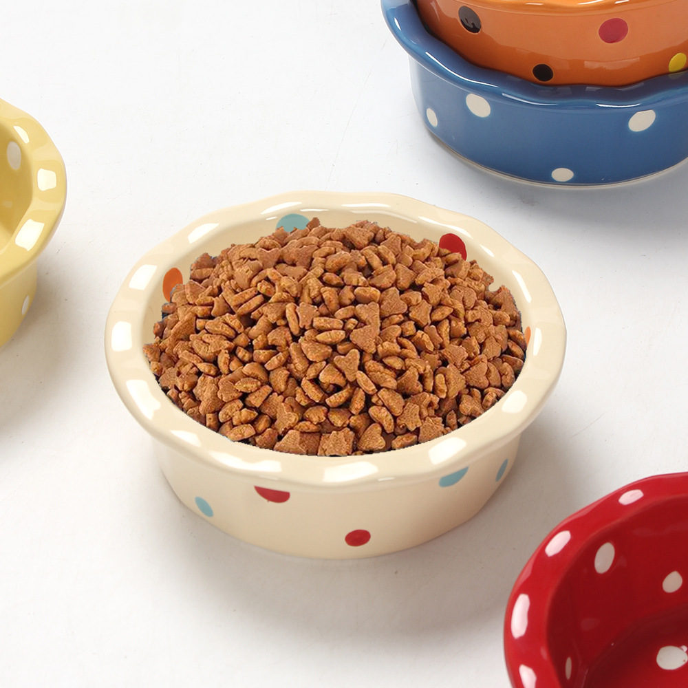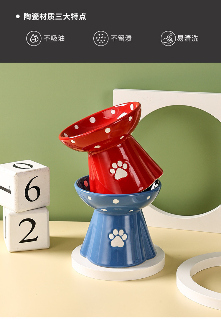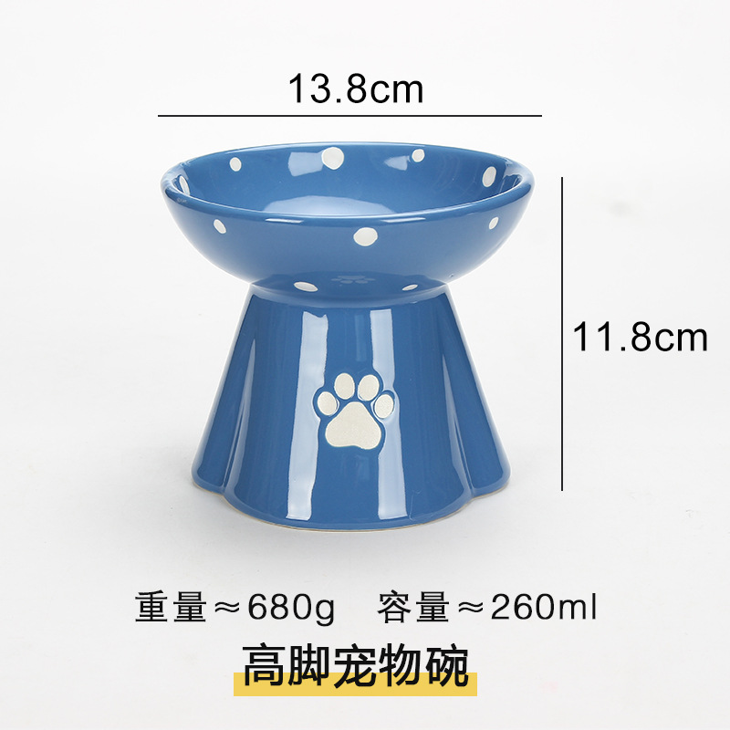 特价处理宠物微瑕陶瓷碗釉下彩波点系列高脚猫狗粮碗水碗卖完即下