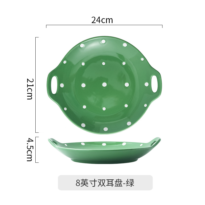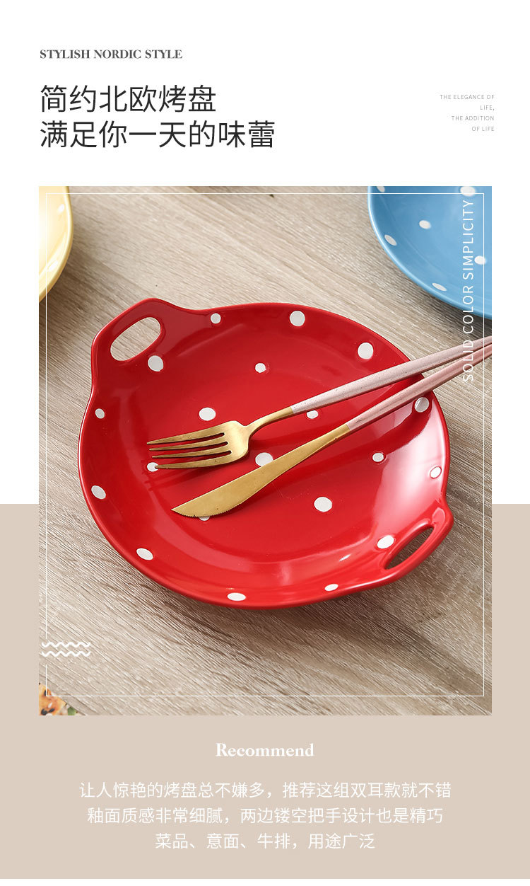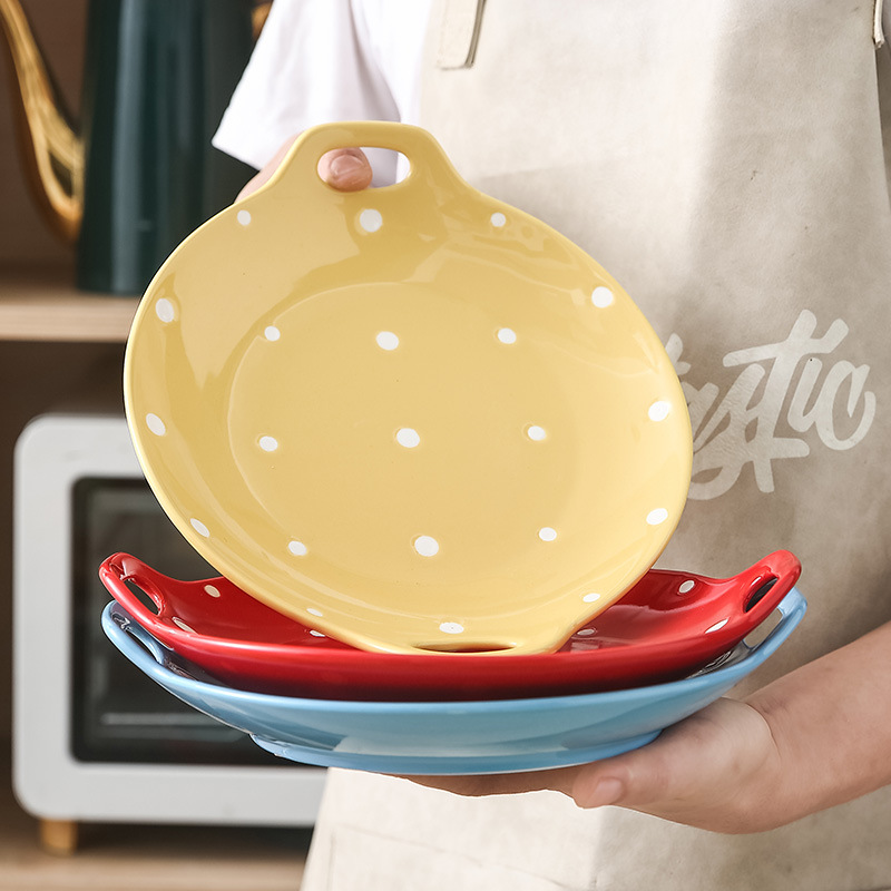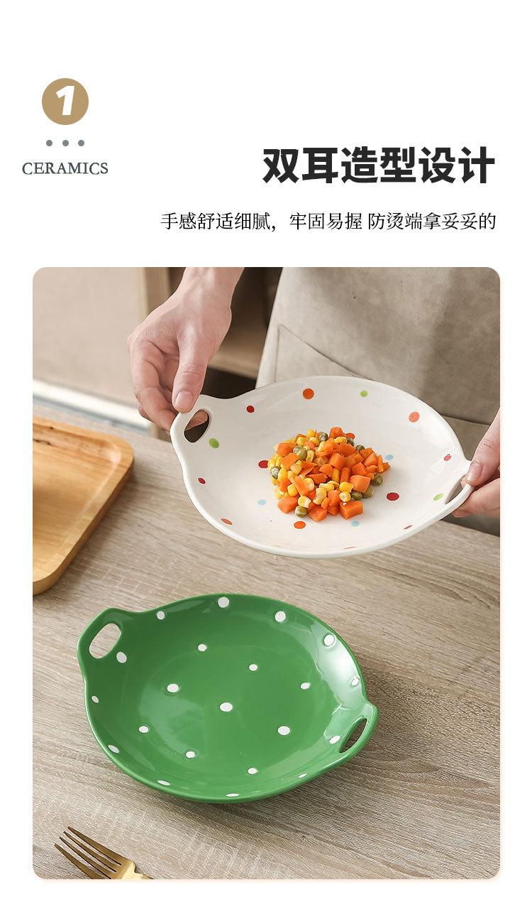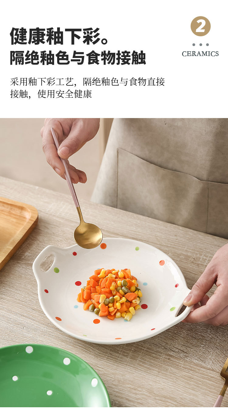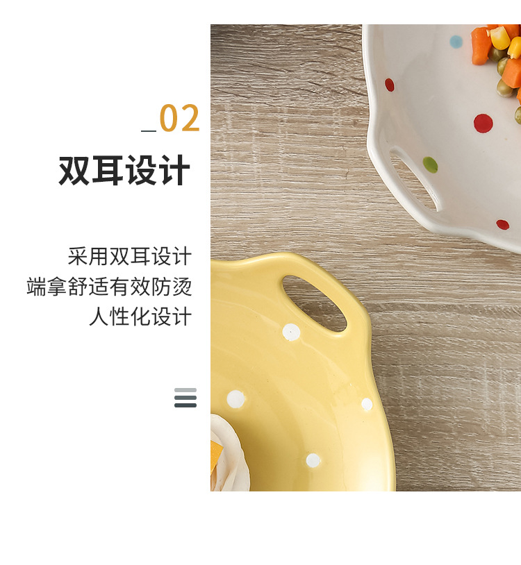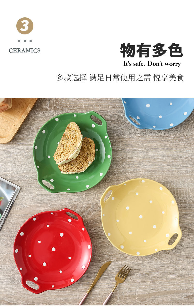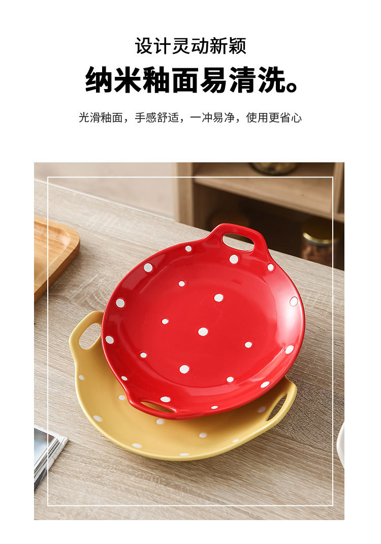 创意波点陶瓷盘焗饭家用菜盘可爱甜品沙拉深盘双耳早餐餐具
