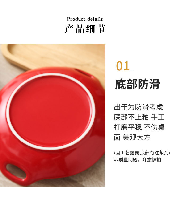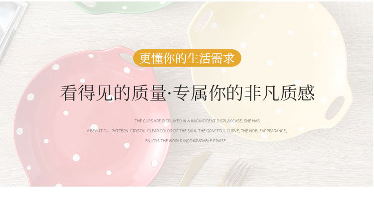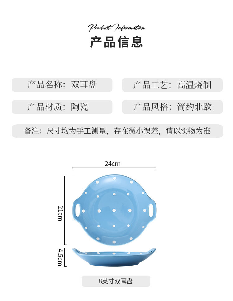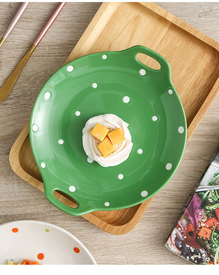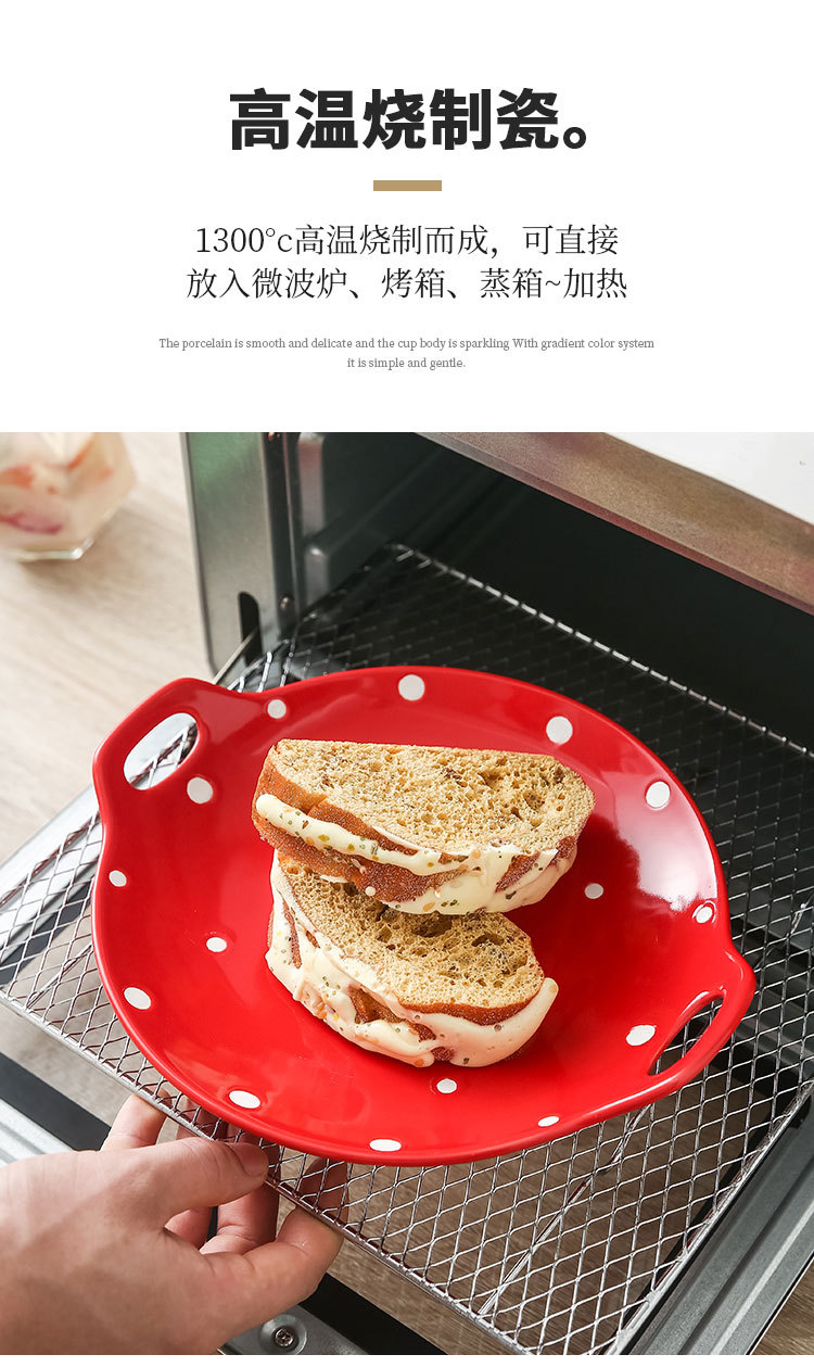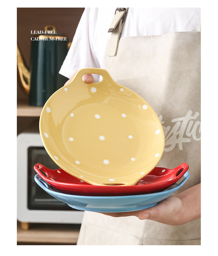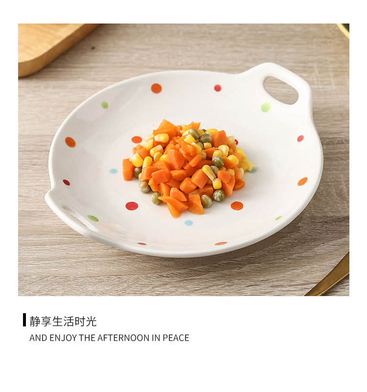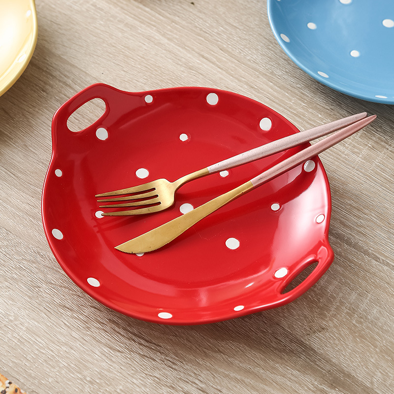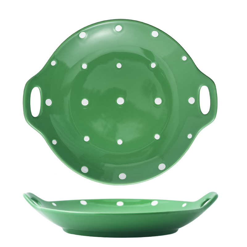 创意波点陶瓷盘焗饭家用菜盘可爱甜品沙拉深盘双耳早餐餐具