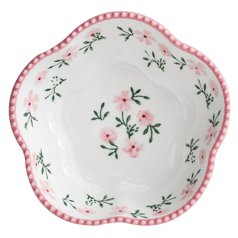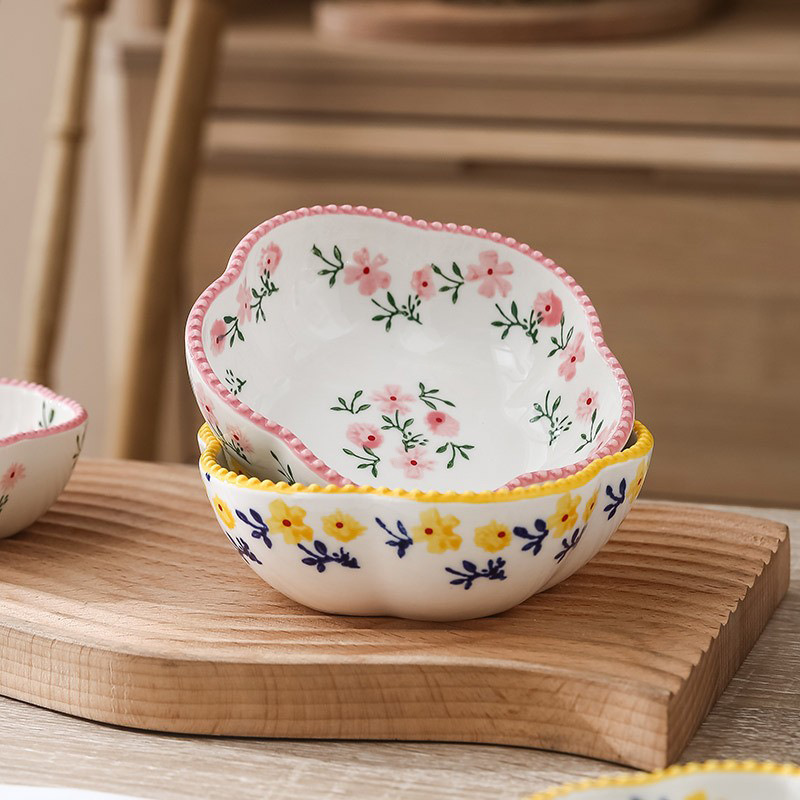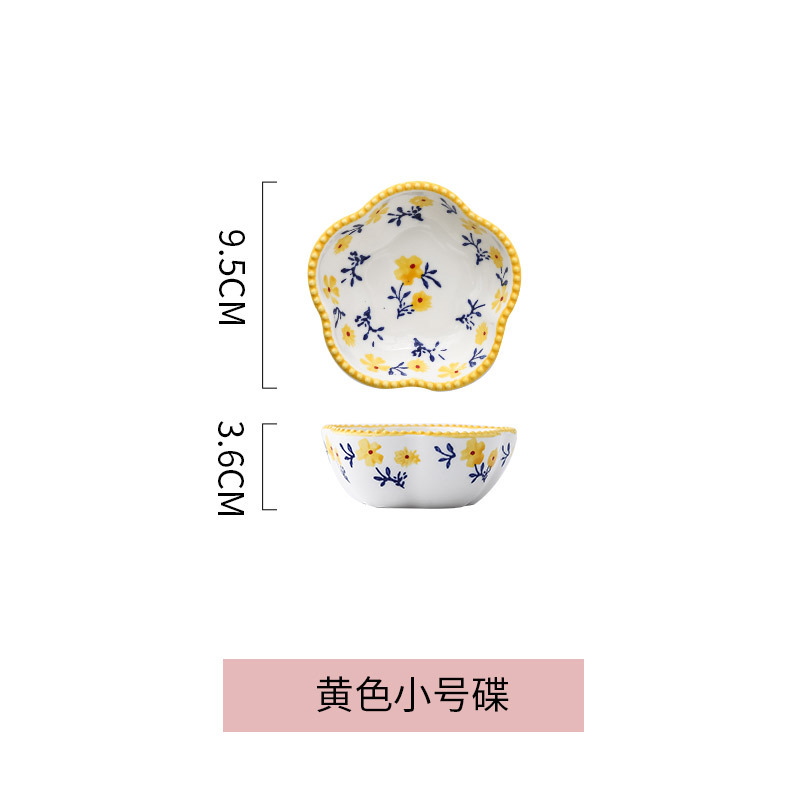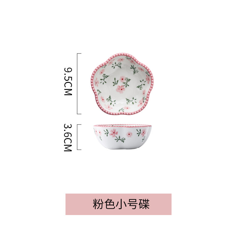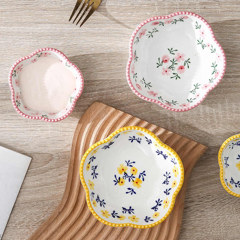 日式花型蘸料碟零食碟小碎花陶瓷味碟 ins彩绘釉下彩调味碟小吃碟