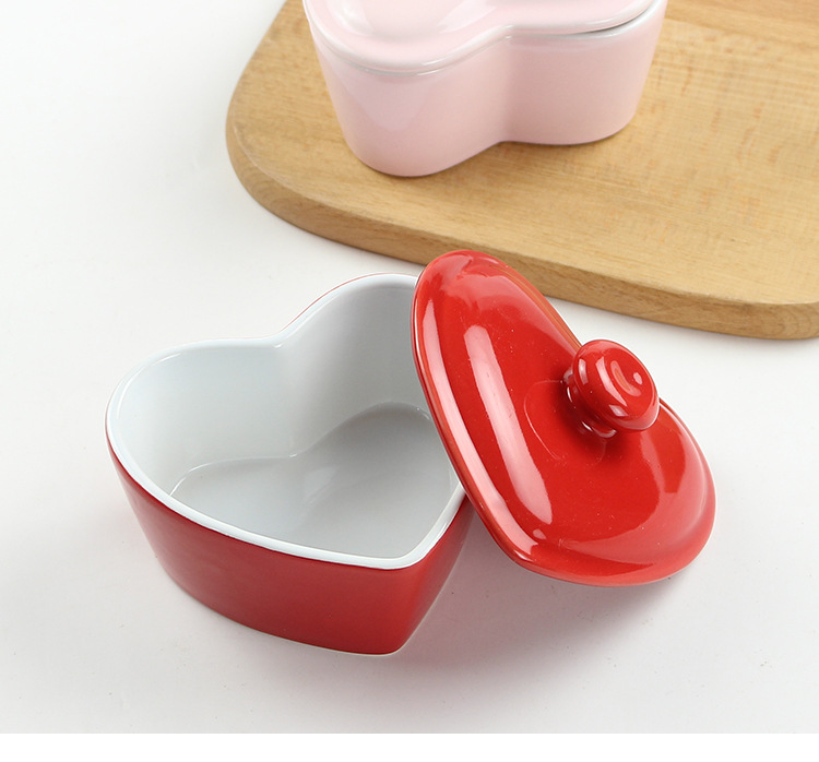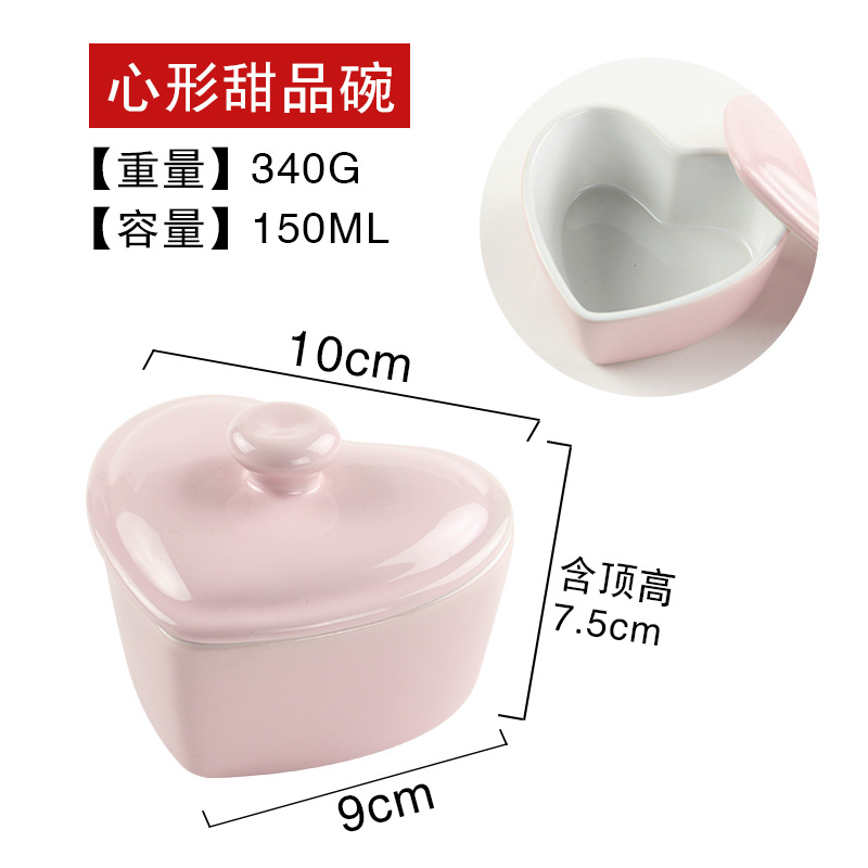 批发舒芙蕾蛋糕盅心形带盖烘焙陶瓷布丁双皮奶甜品小碗儿童蒸蛋碗