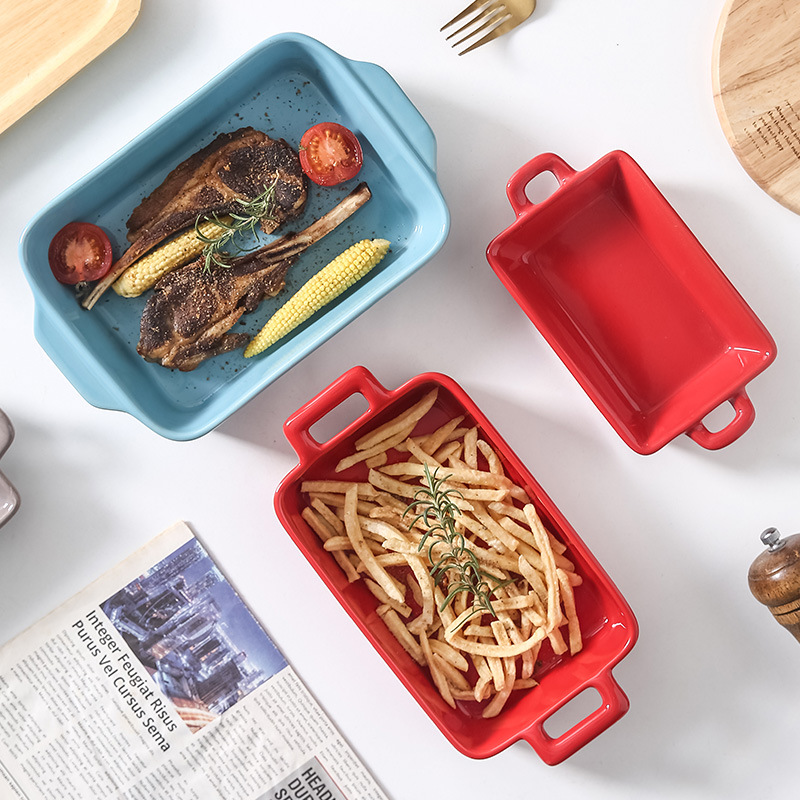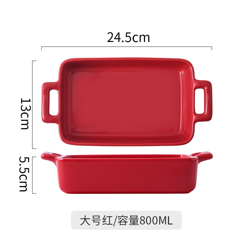 陶瓷烤盘双耳烤碗芝士焗饭家用微波炉盘子空气炸锅烤箱专用长方形