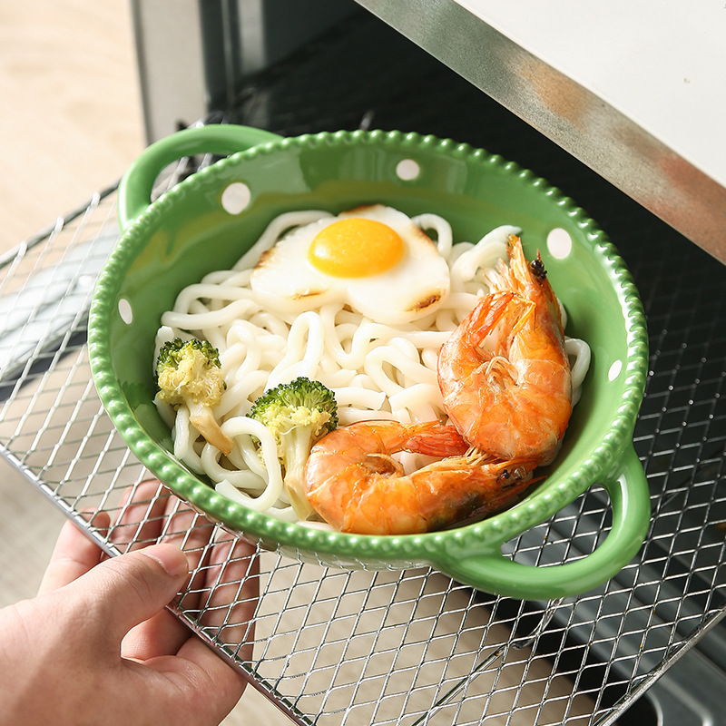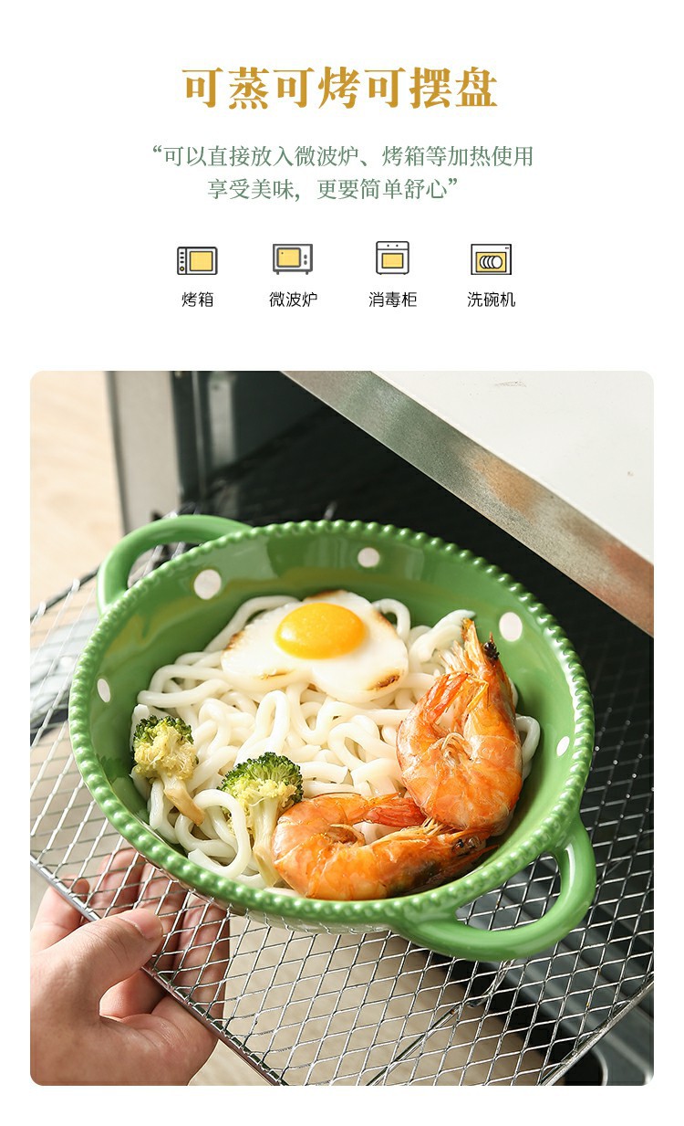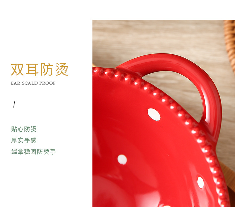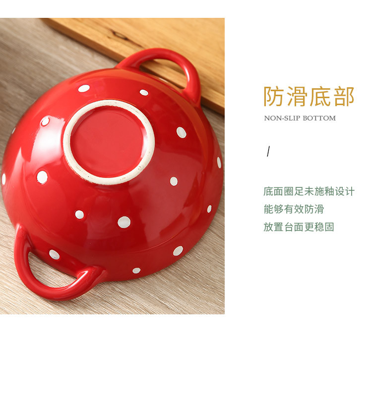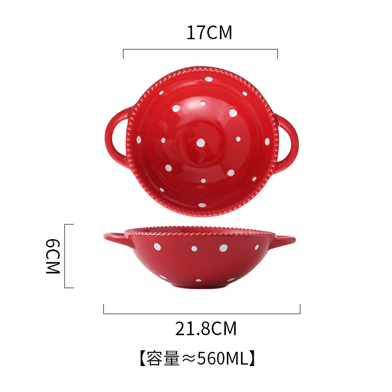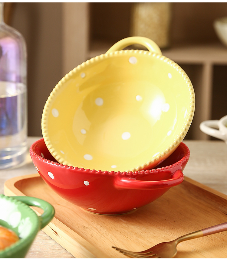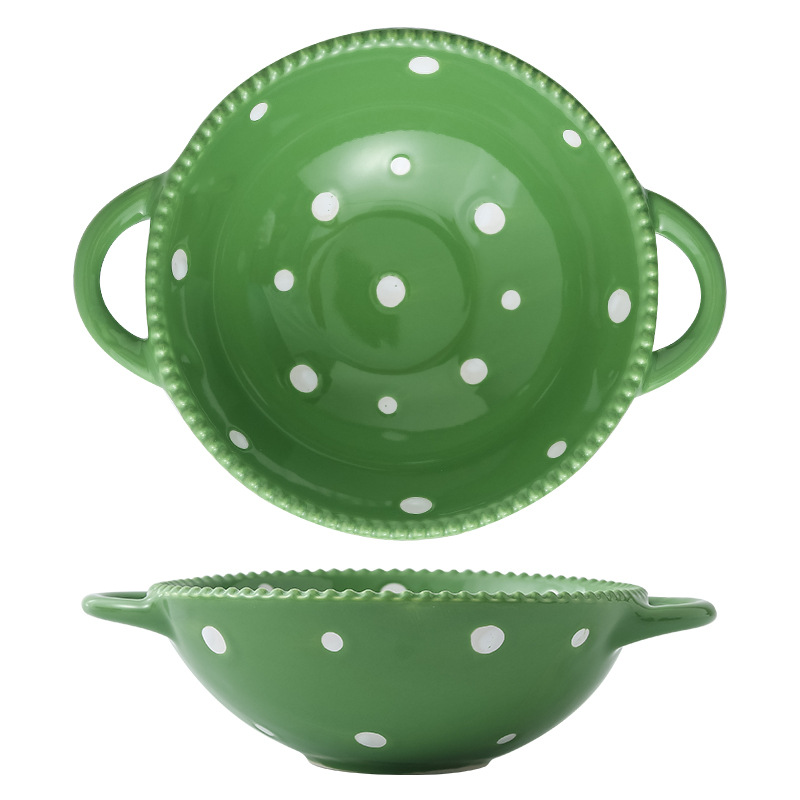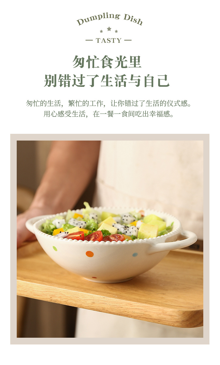 创意波点珠边双耳碗ins风釉下彩家用陶瓷水果沙拉碗空气炸锅适用