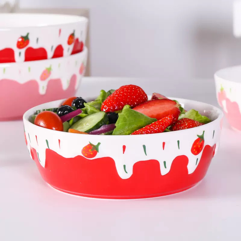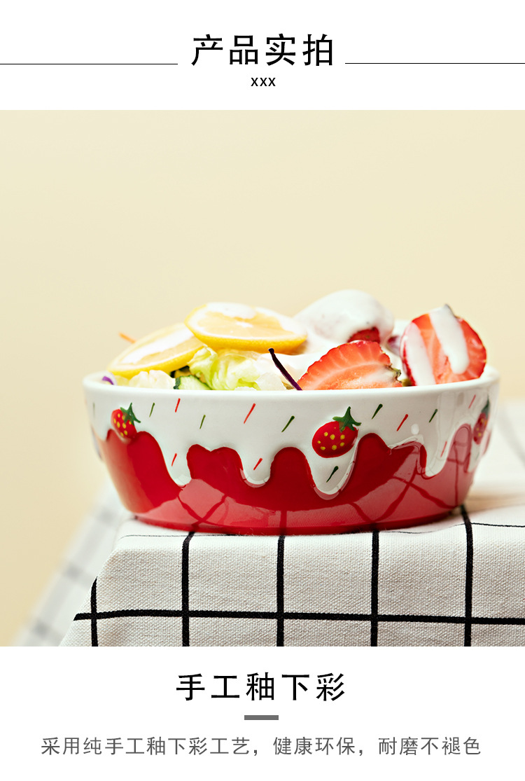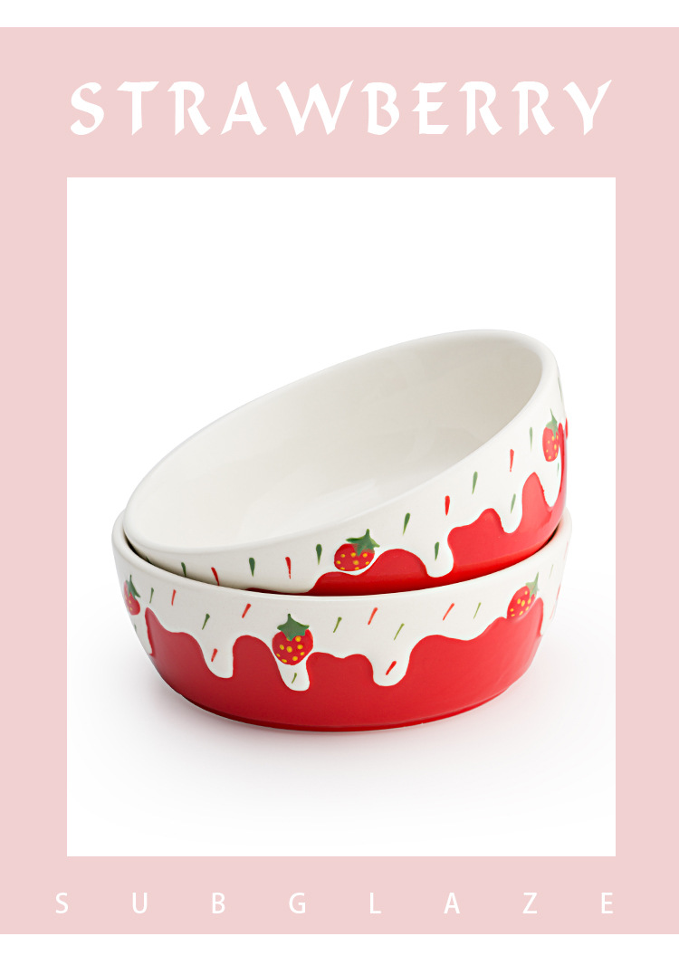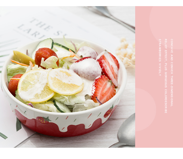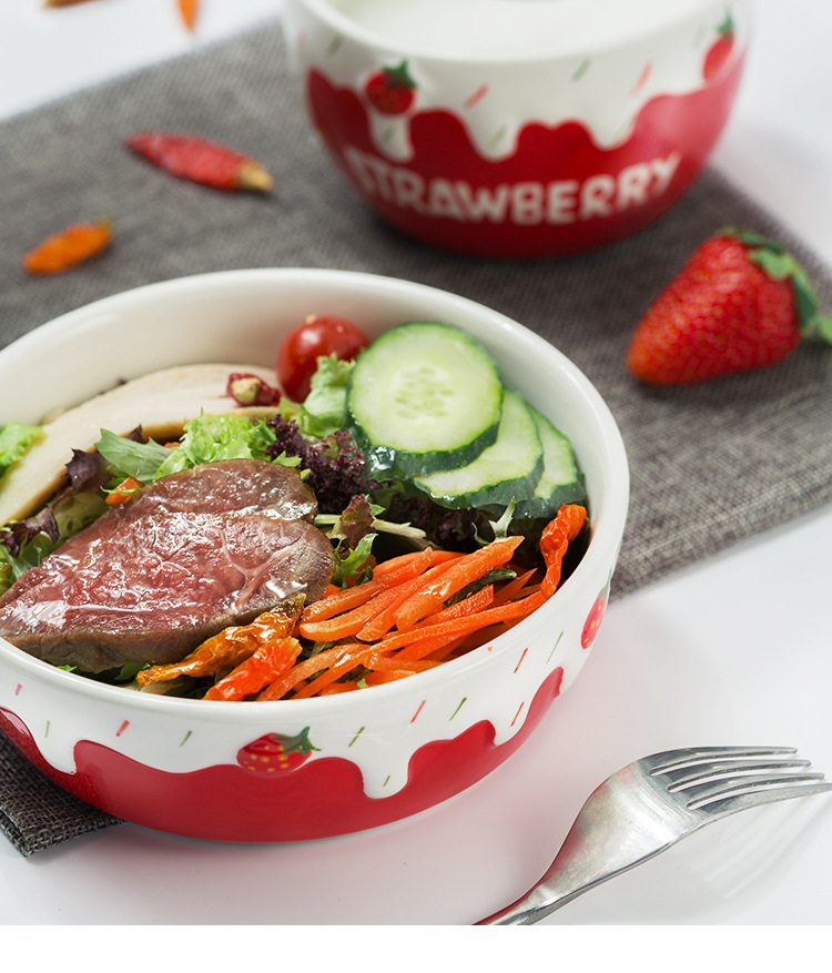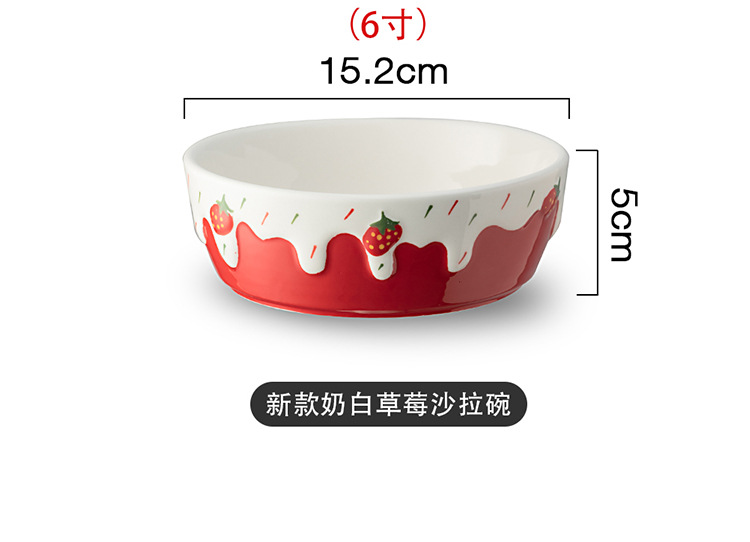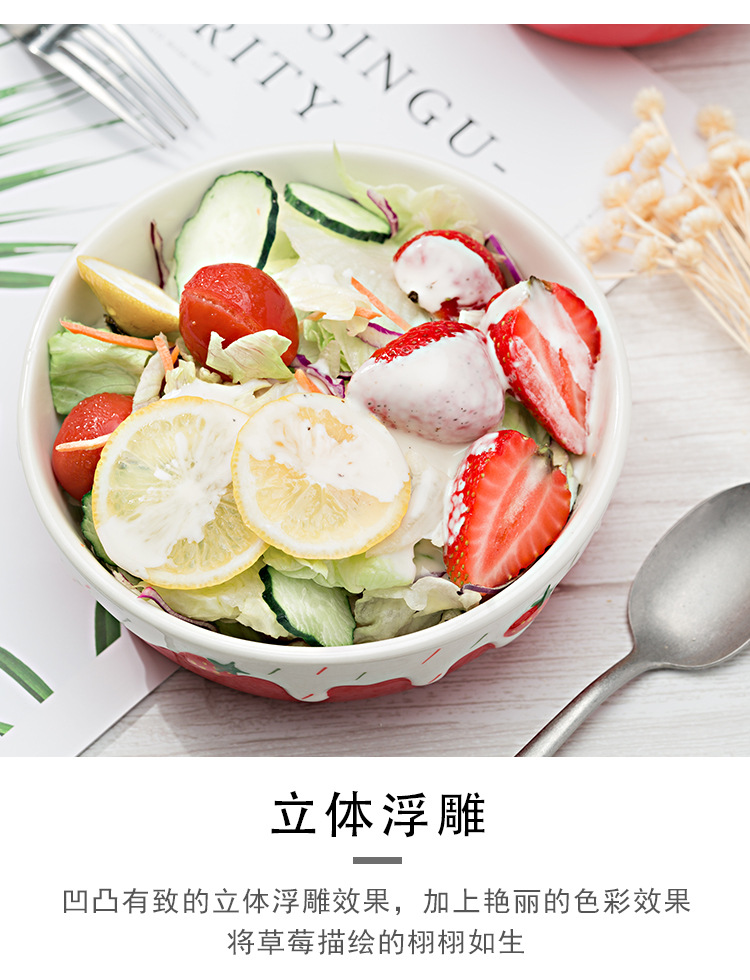 定制浮雕6寸沙拉甜品碗可爱陶瓷碗碟釉下彩餐具套装家用高级感