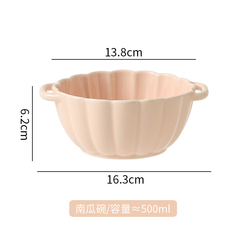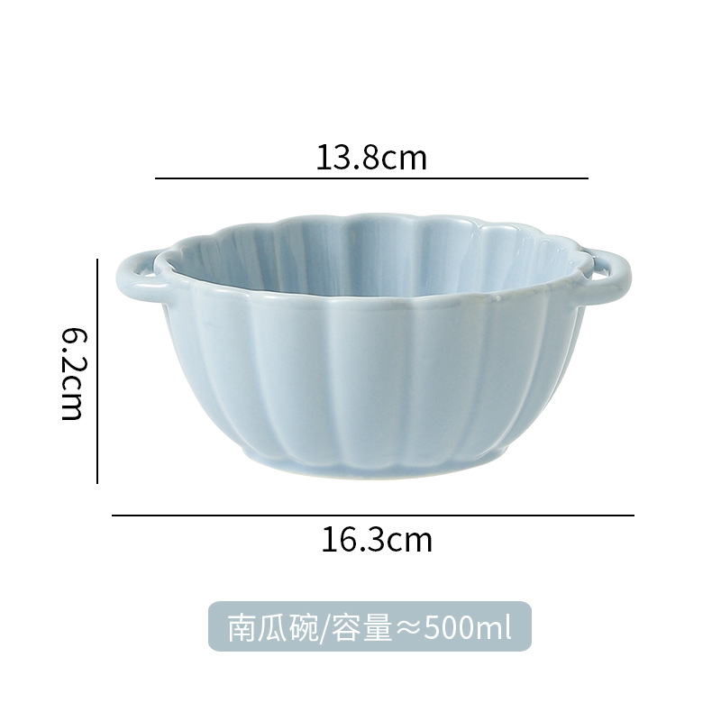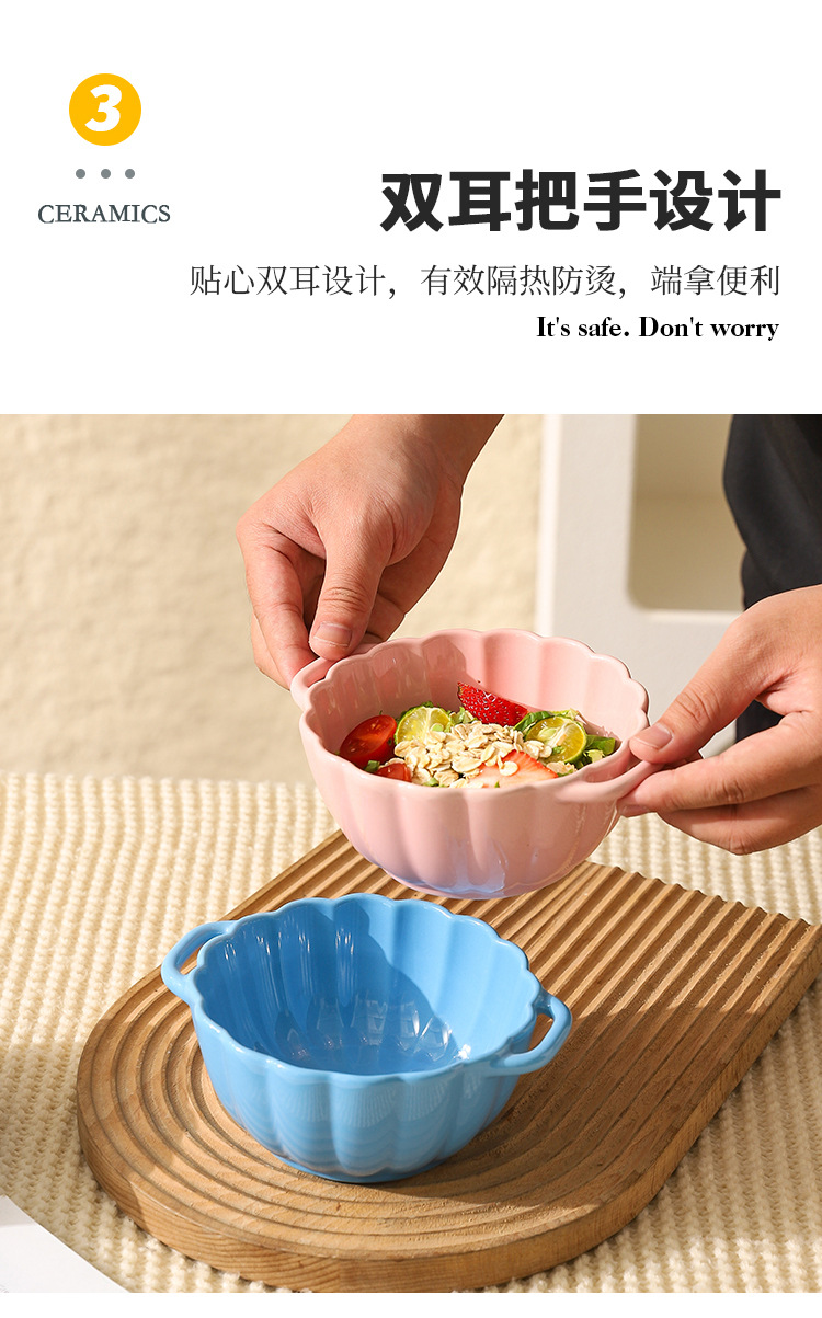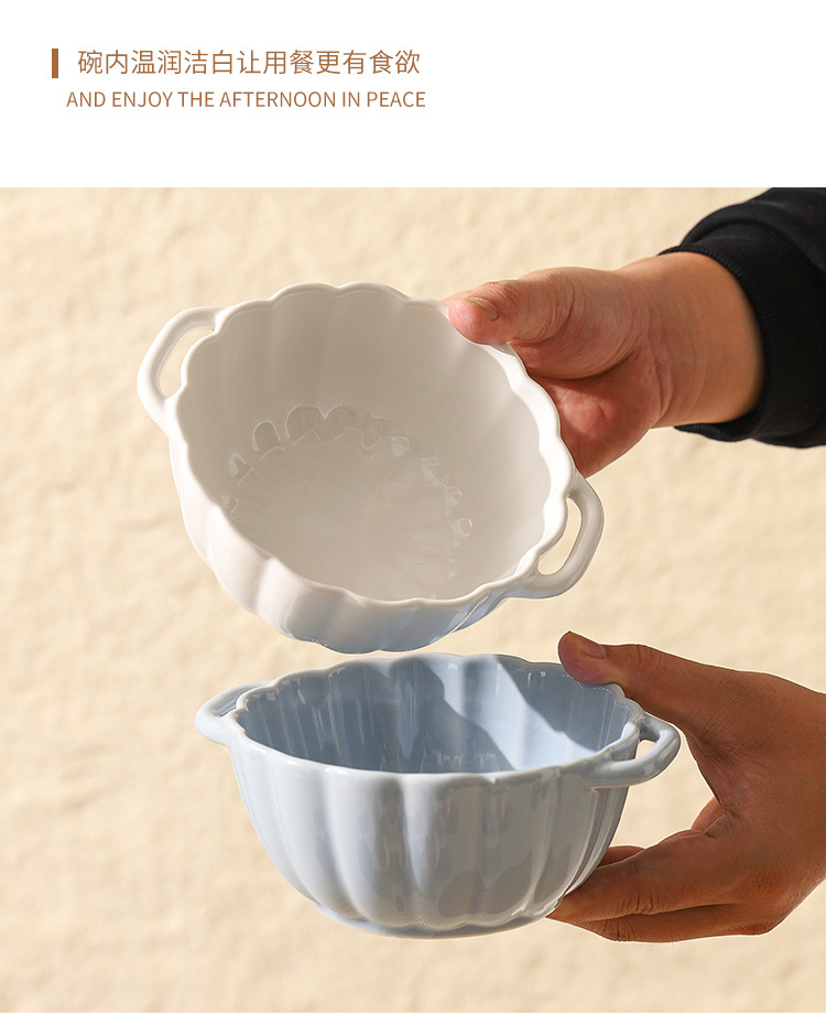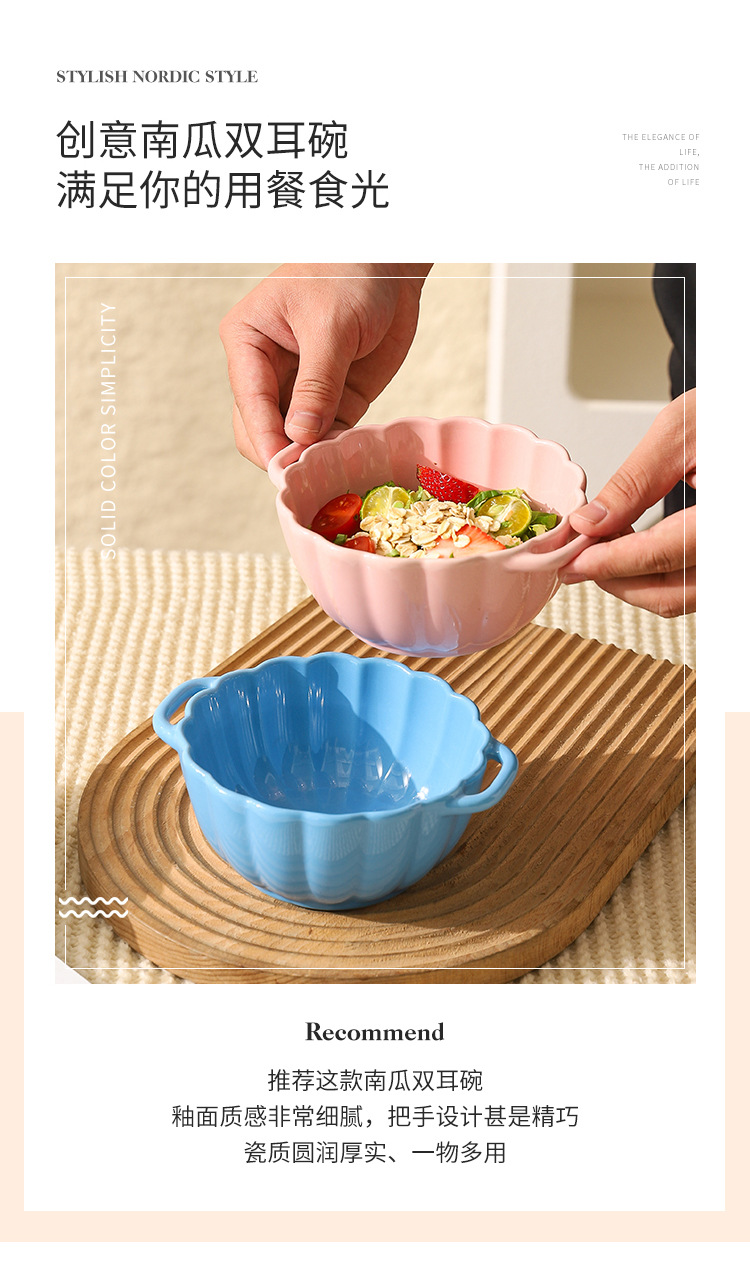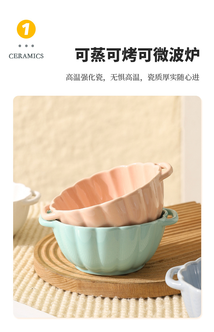 ins奶油色陶瓷碗防烫双耳泡面碗一人食沙拉南瓜碗宝宝辅食蒸蛋碗