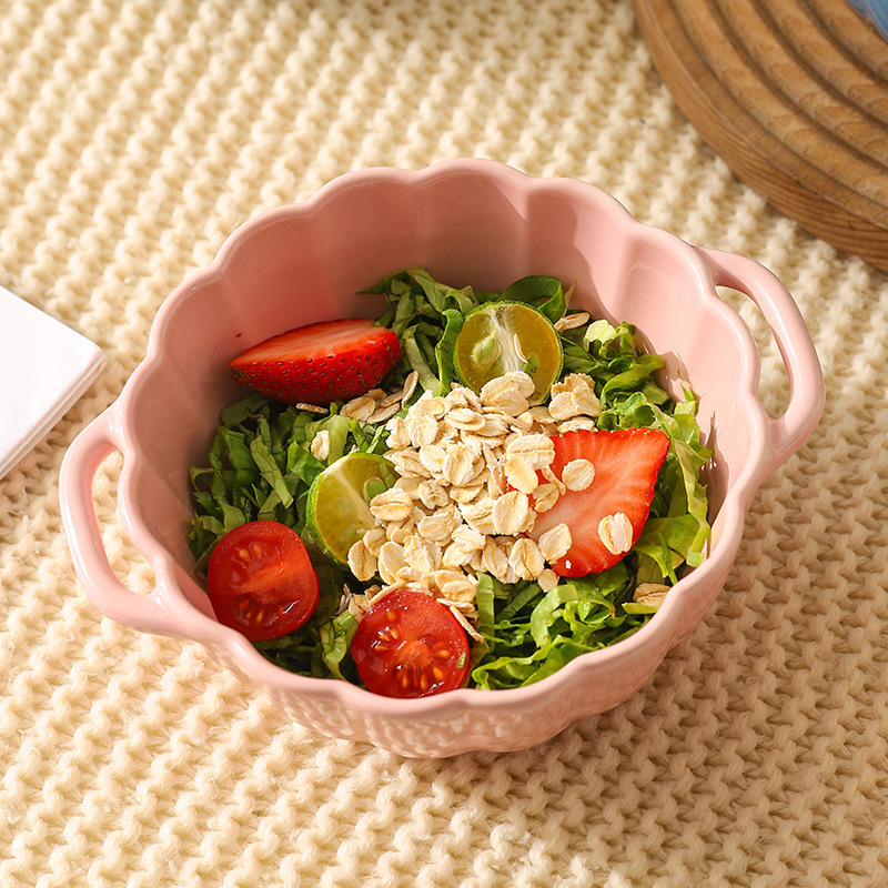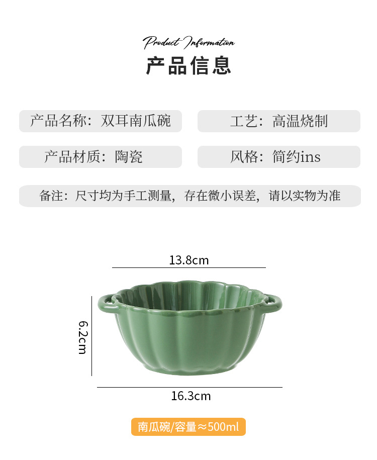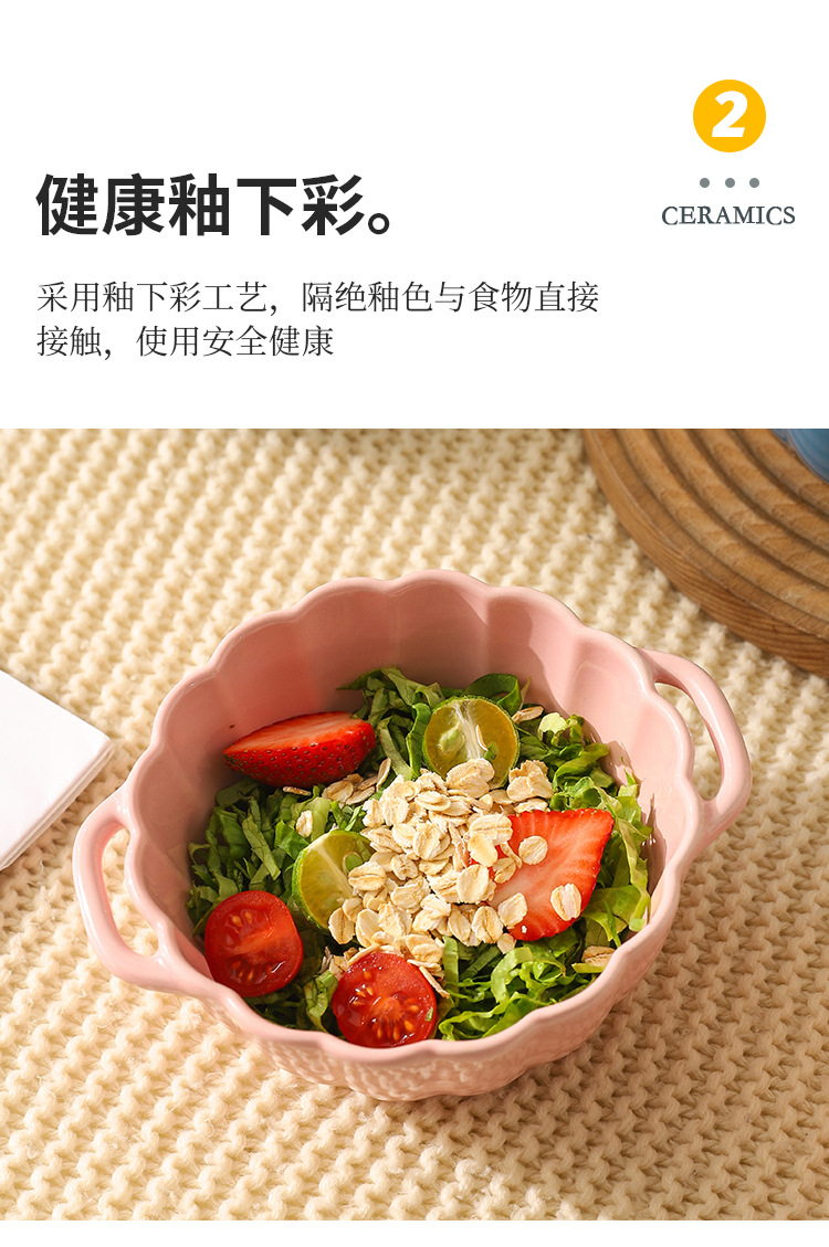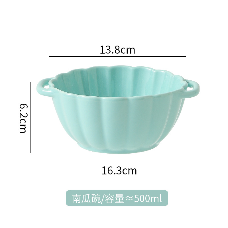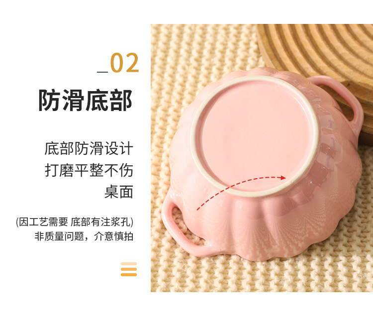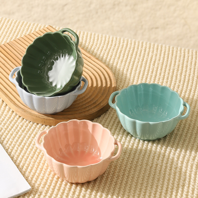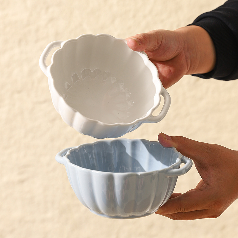 ins奶油色陶瓷碗防烫双耳泡面碗一人食沙拉南瓜碗宝宝辅食蒸蛋碗