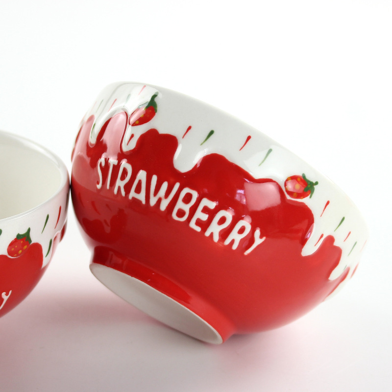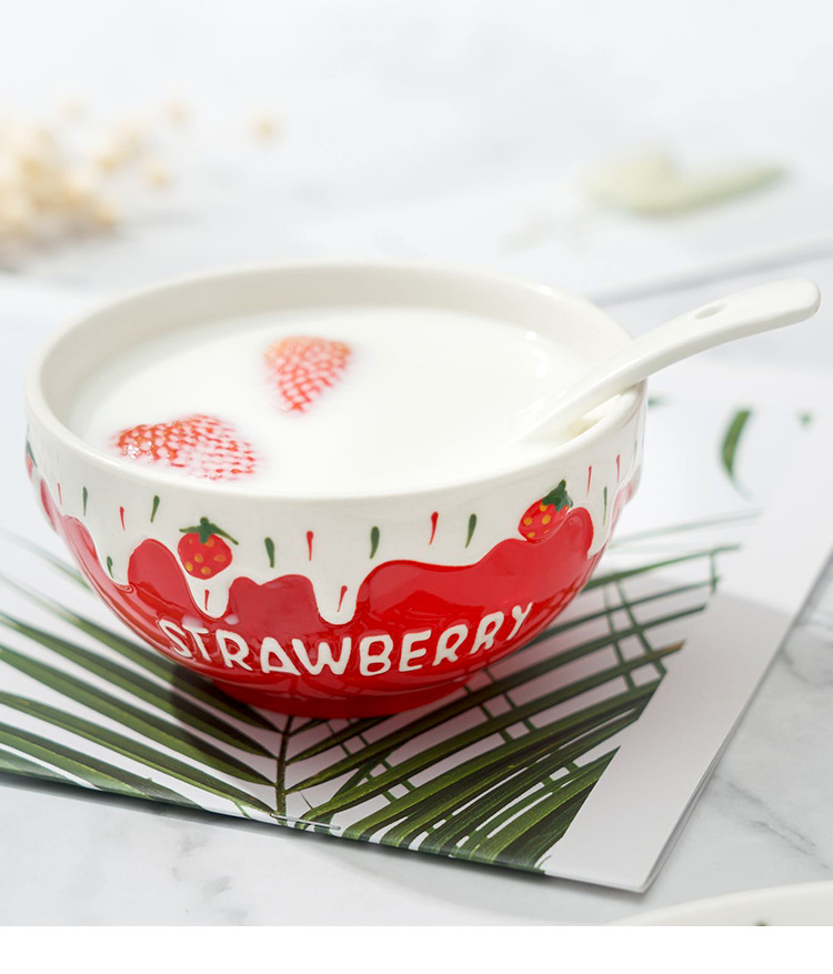 包邮陶瓷碗饭碗小清新彩绘奶白草莓早餐碗家用耐高温甜品碗水果碗