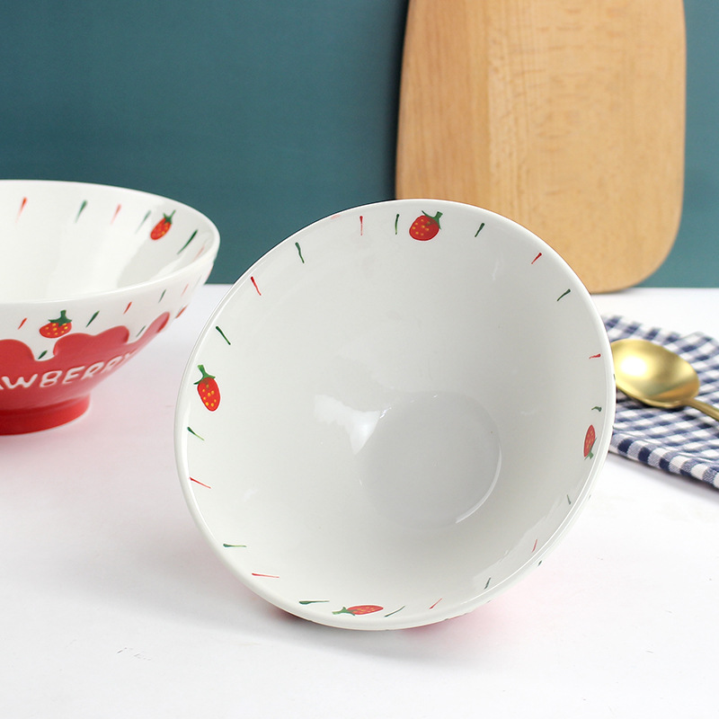 包邮浮雕草莓拉面碗陶瓷碗日用耐高温泡面碗汤碗釉下彩7寸斗笠碗