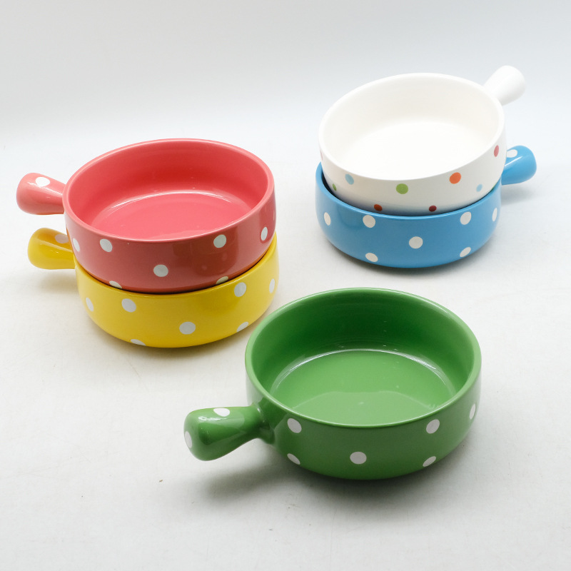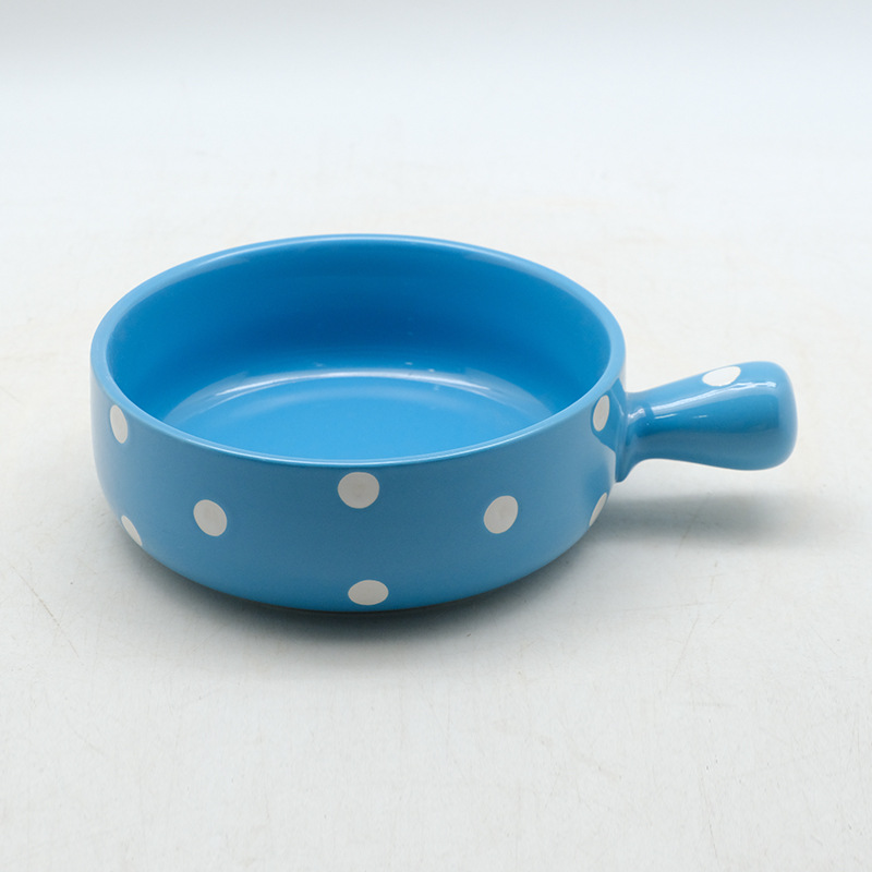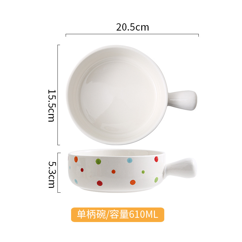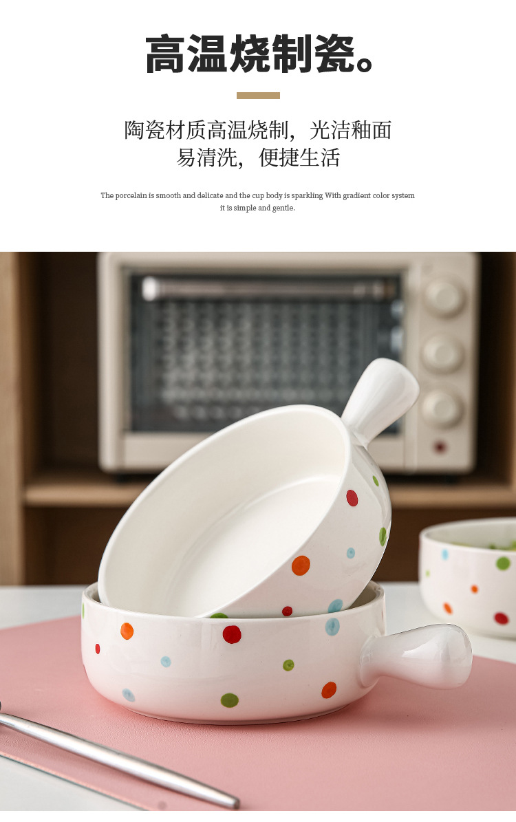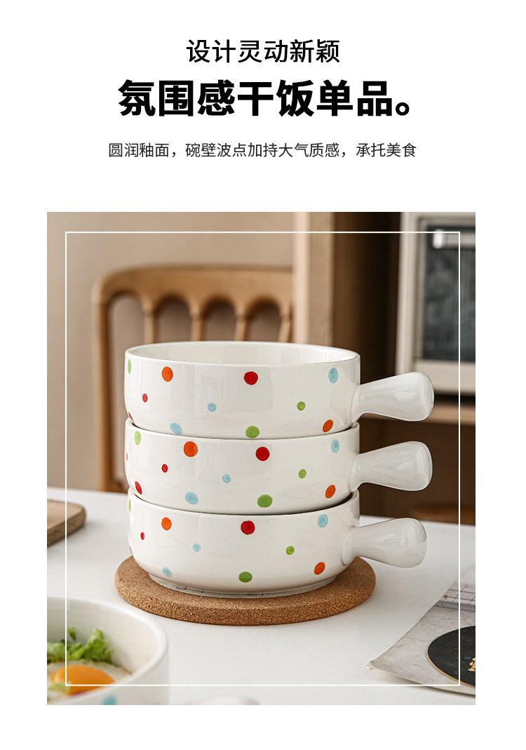 创意波点釉下彩手柄碗泡面水果沙拉陶瓷碗家用芝士焗饭圆形烘焙碗