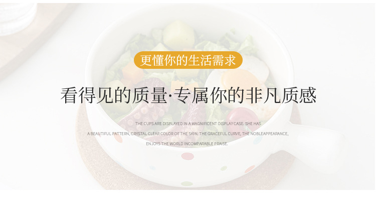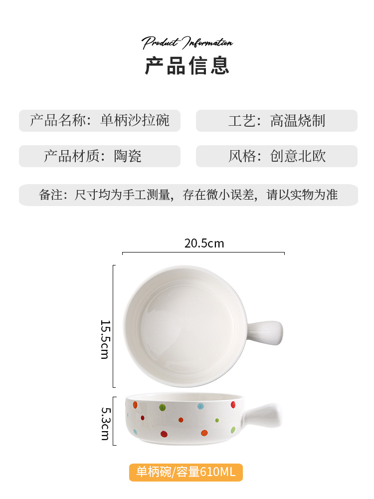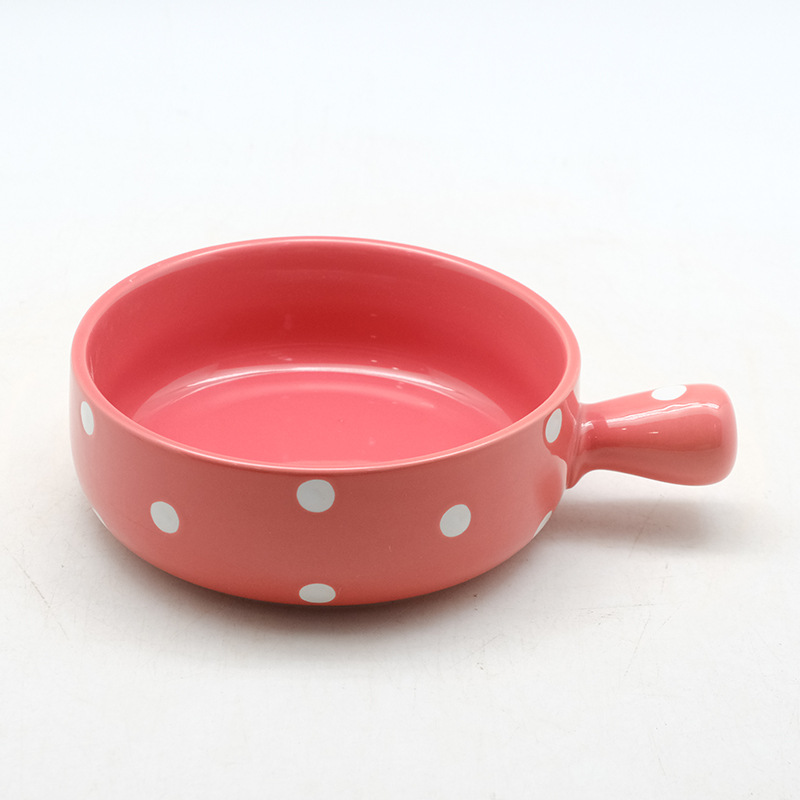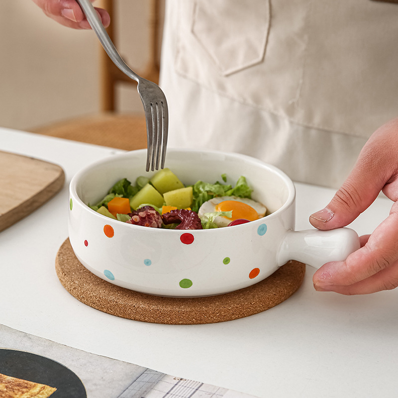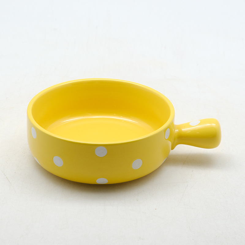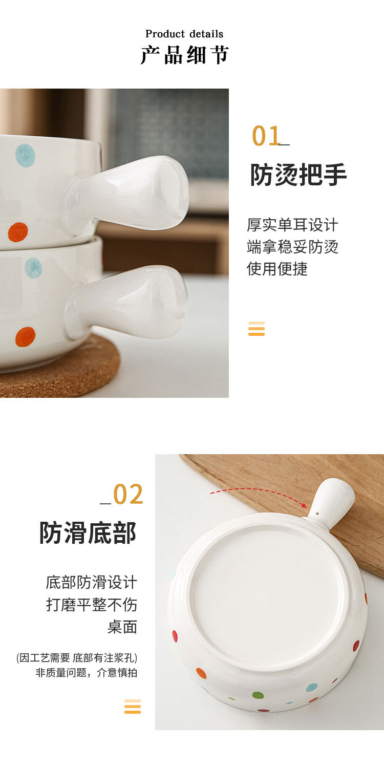 创意波点釉下彩手柄碗泡面水果沙拉陶瓷碗家用芝士焗饭圆形烘焙碗