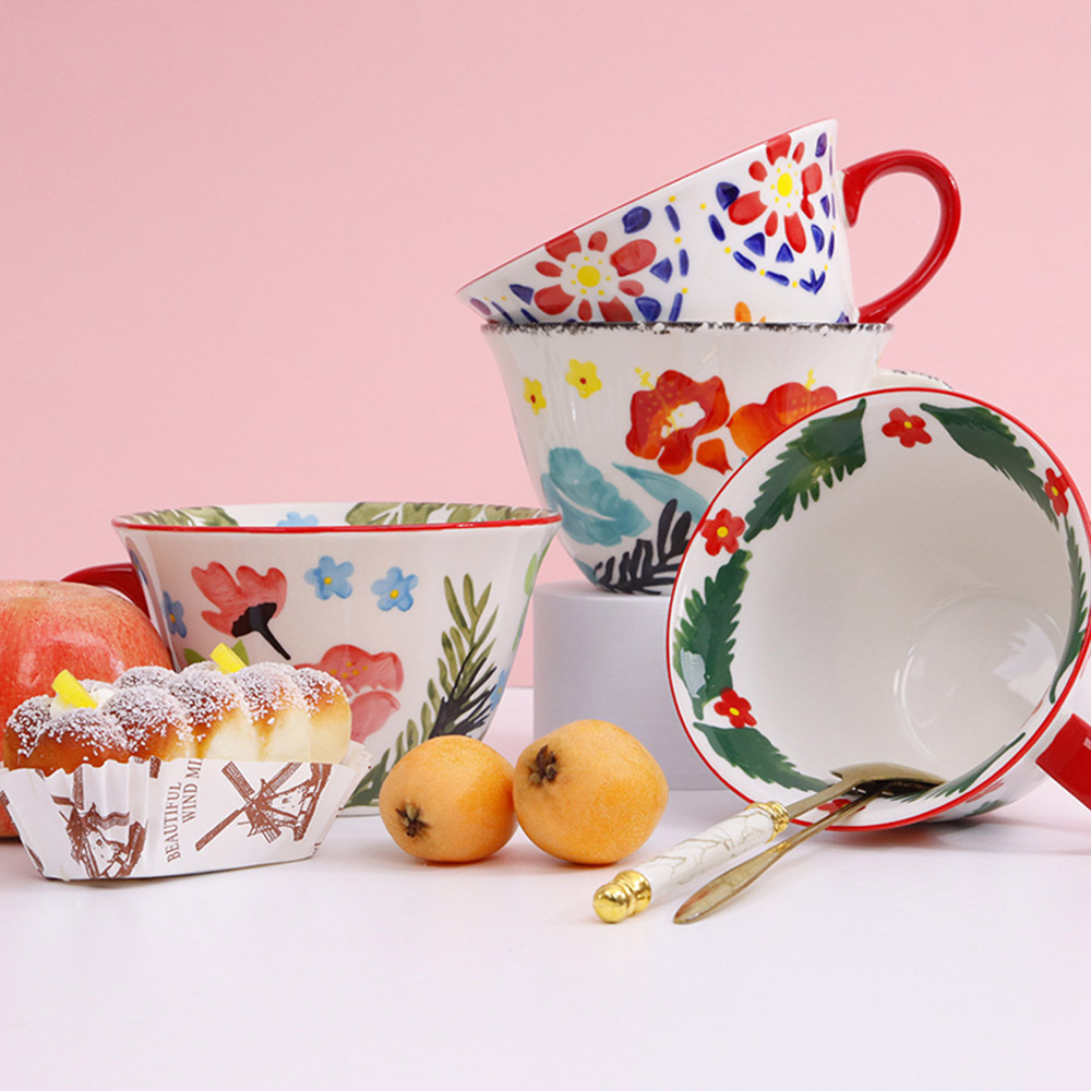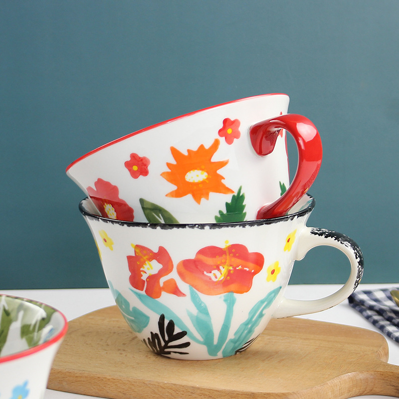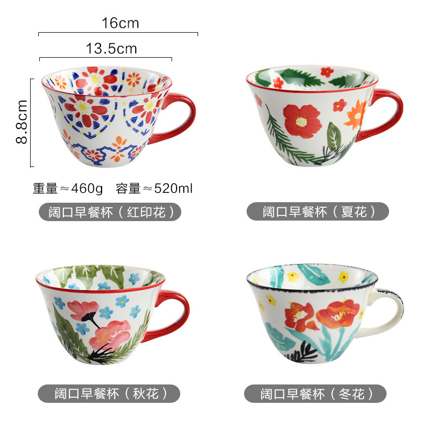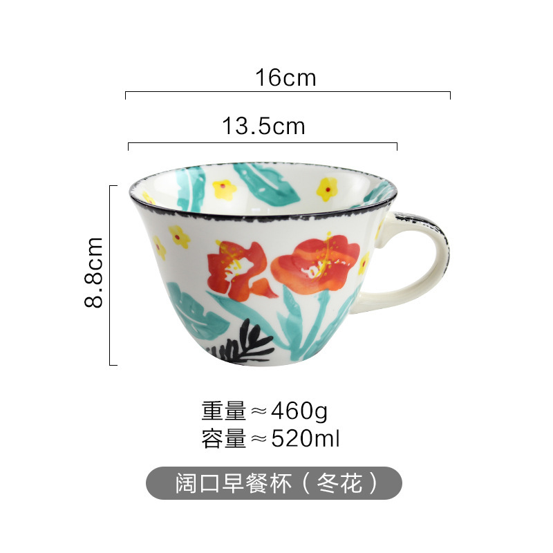 牛奶燕麦早餐杯咖啡杯子ins可爱少女手绘陶瓷水杯马克杯家用新品