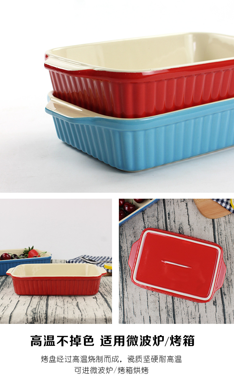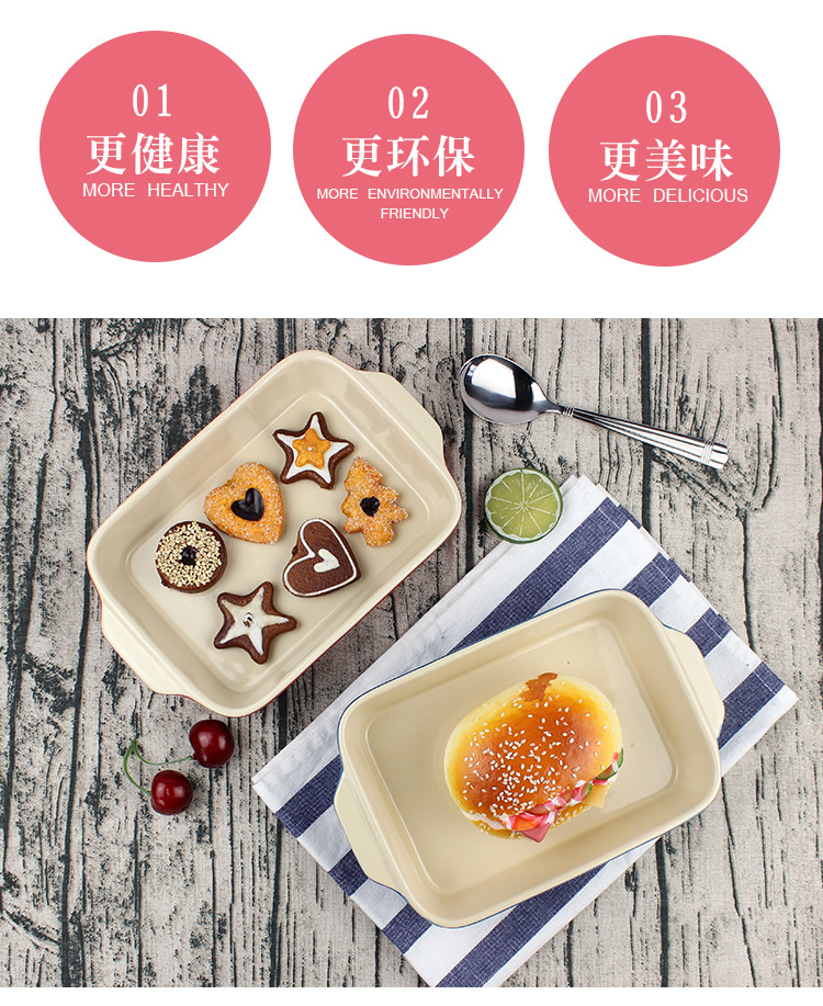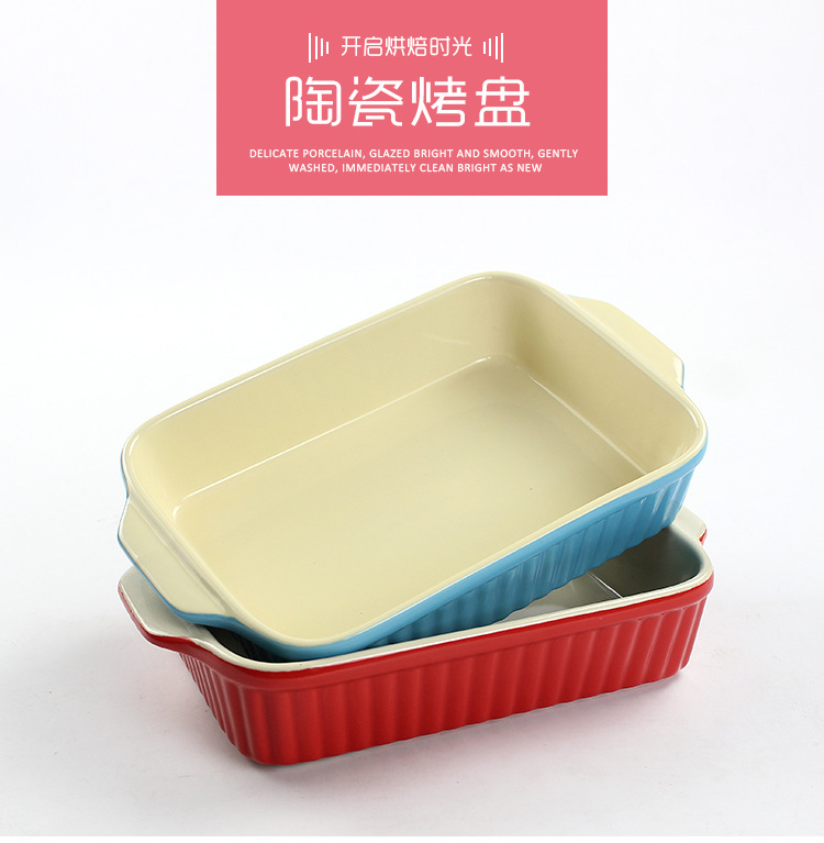 长方形双耳陶瓷烤盘焗饭盘餐具 微波炉烤箱烘焙西餐盘子意面盘