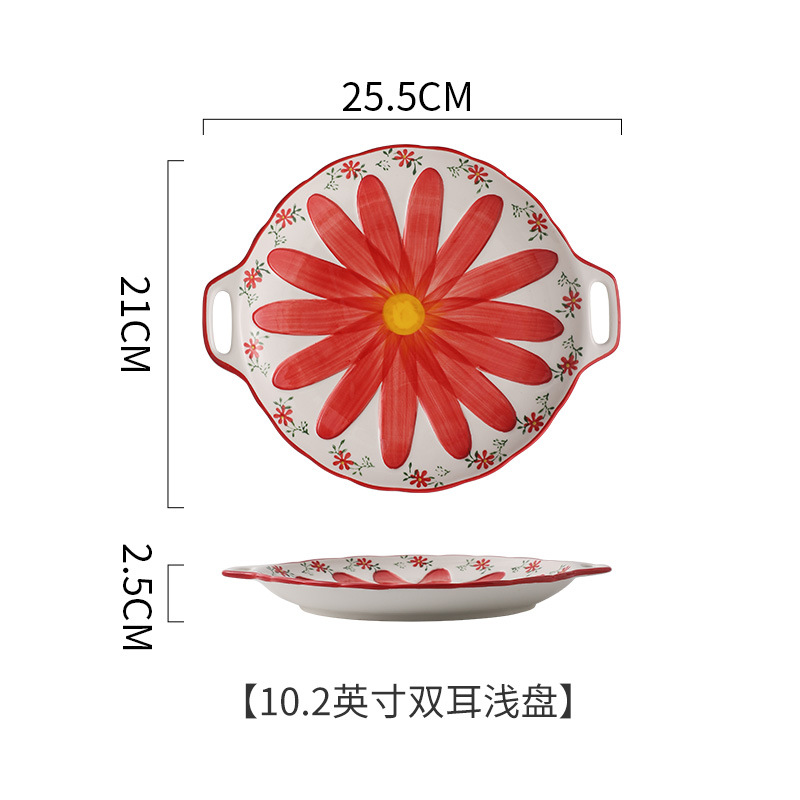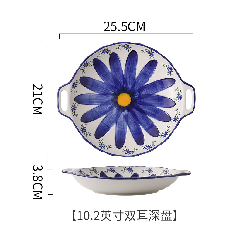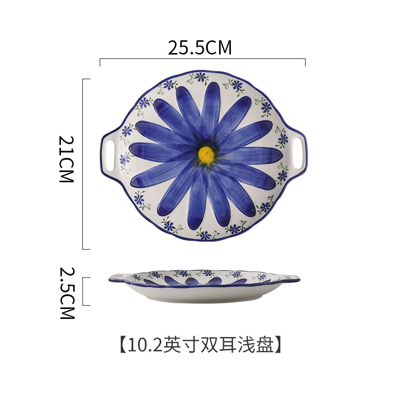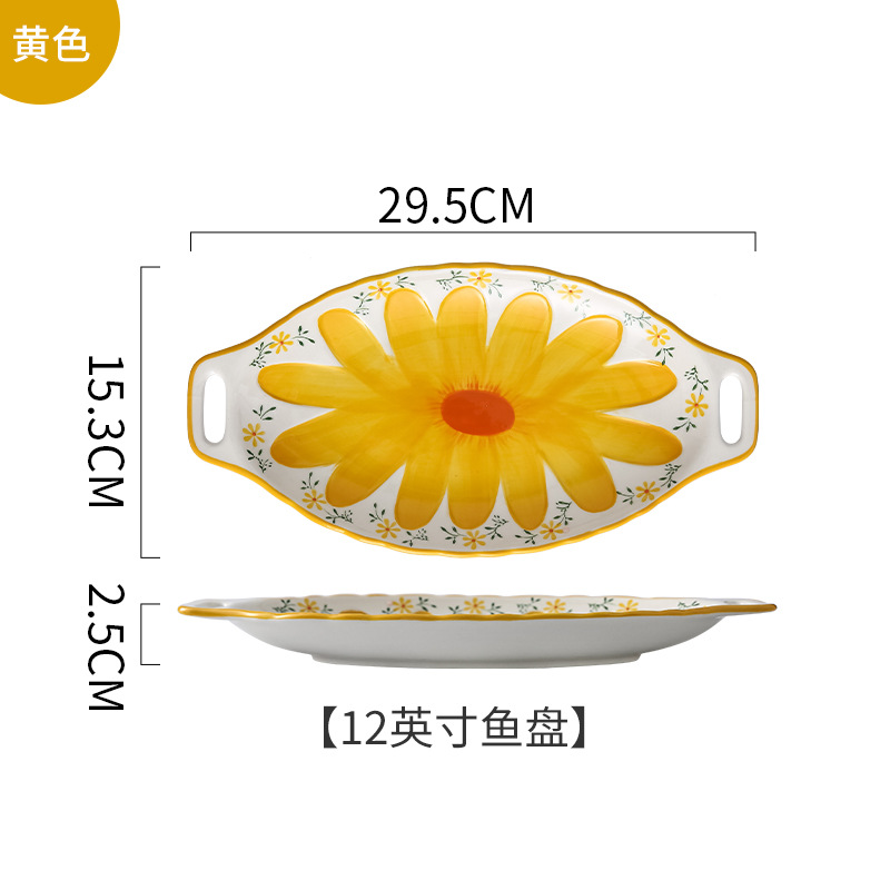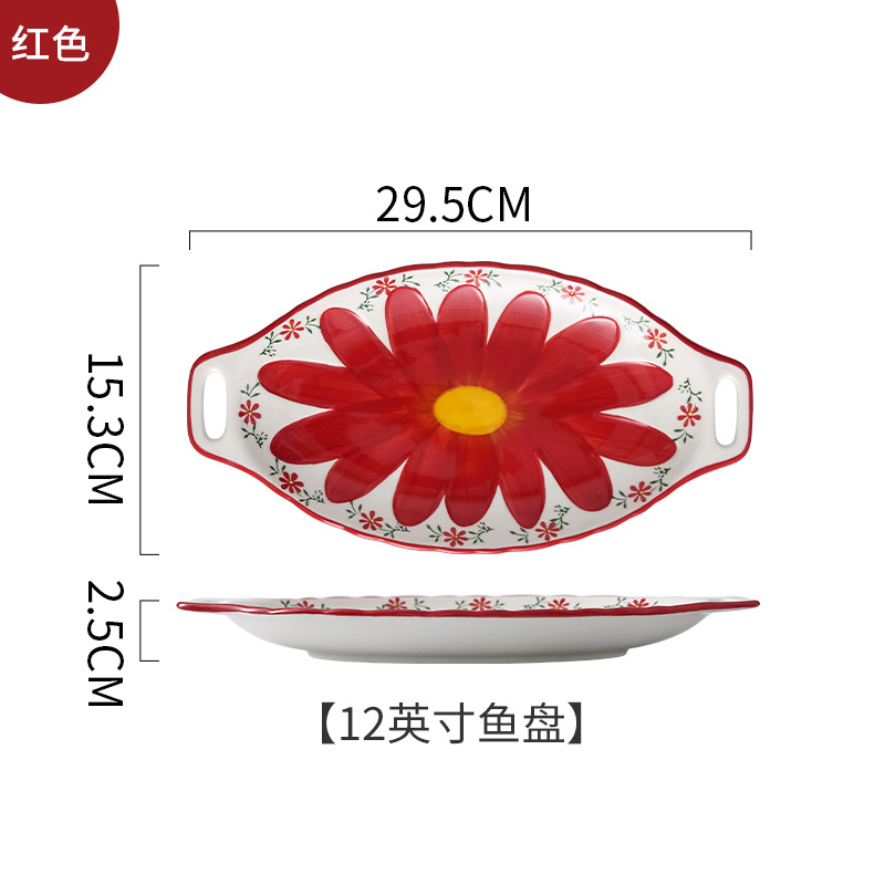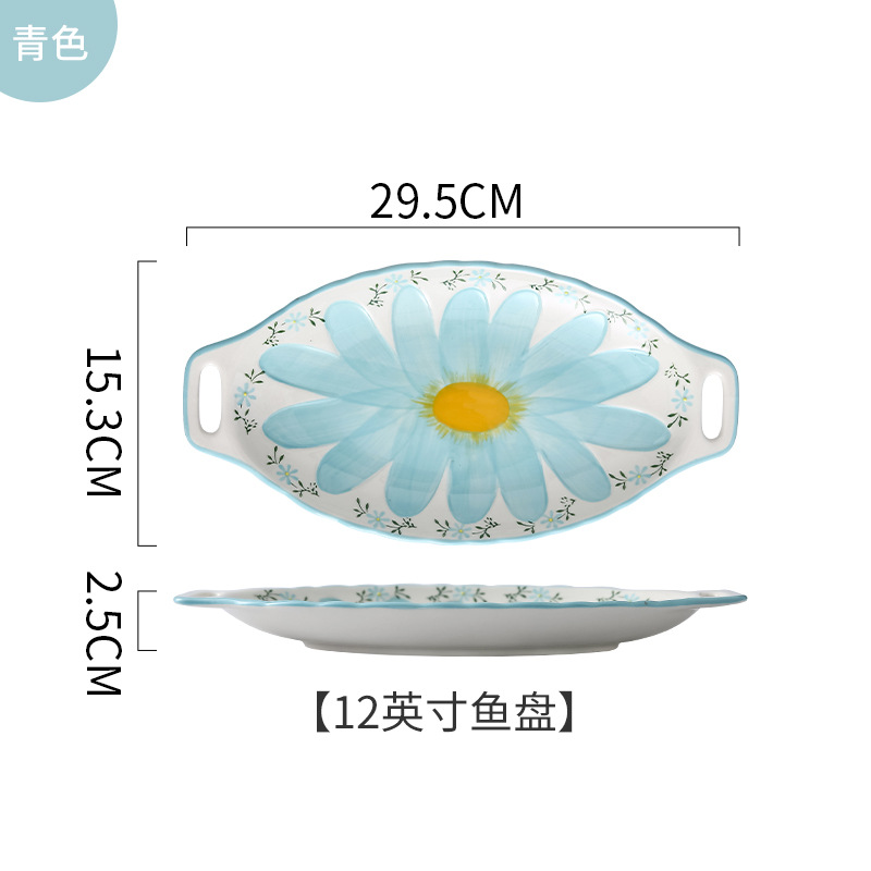 釉下彩陶瓷餐具西餐备菜盘子家用高级感鱼盘户外烤肉盘微波炉适用