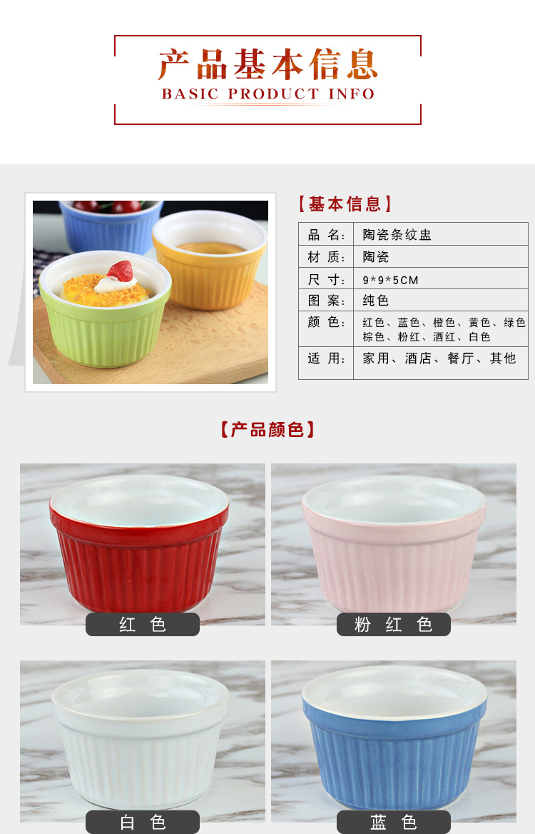 包邮陶瓷烘焙甜品盅蛋糕杯小号条纹蒸蛋碗圆形耐高温舒芙蕾布丁碗