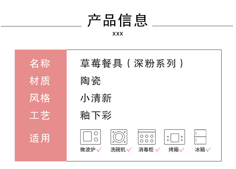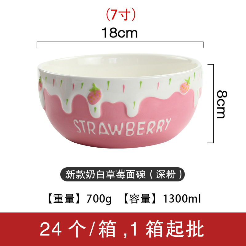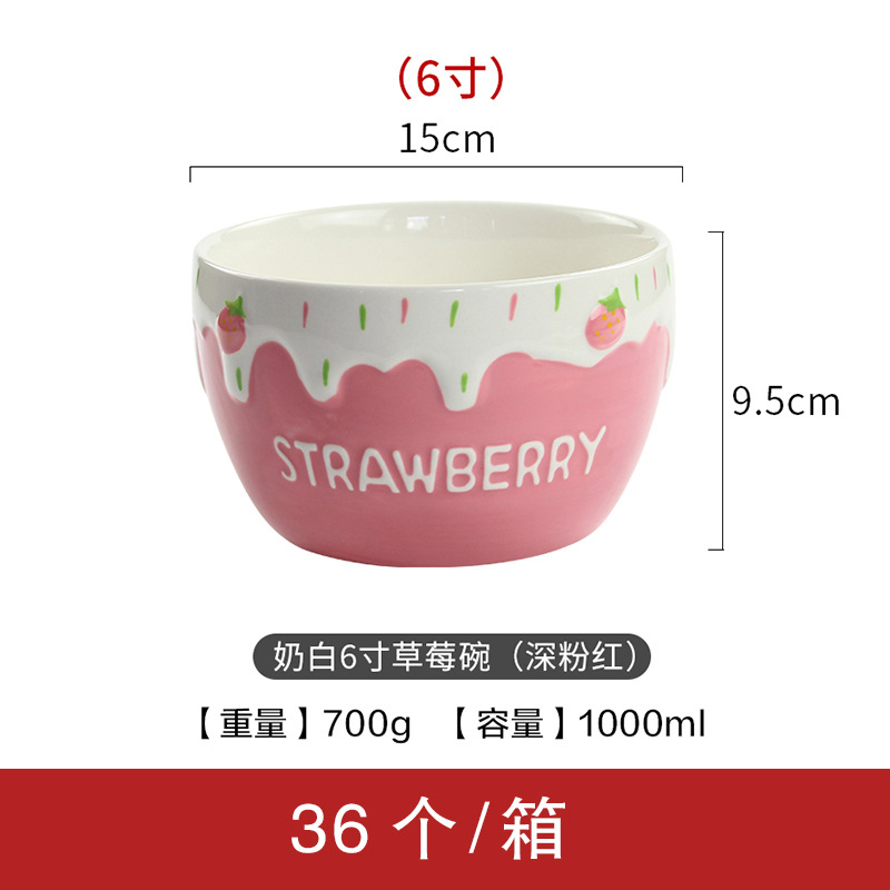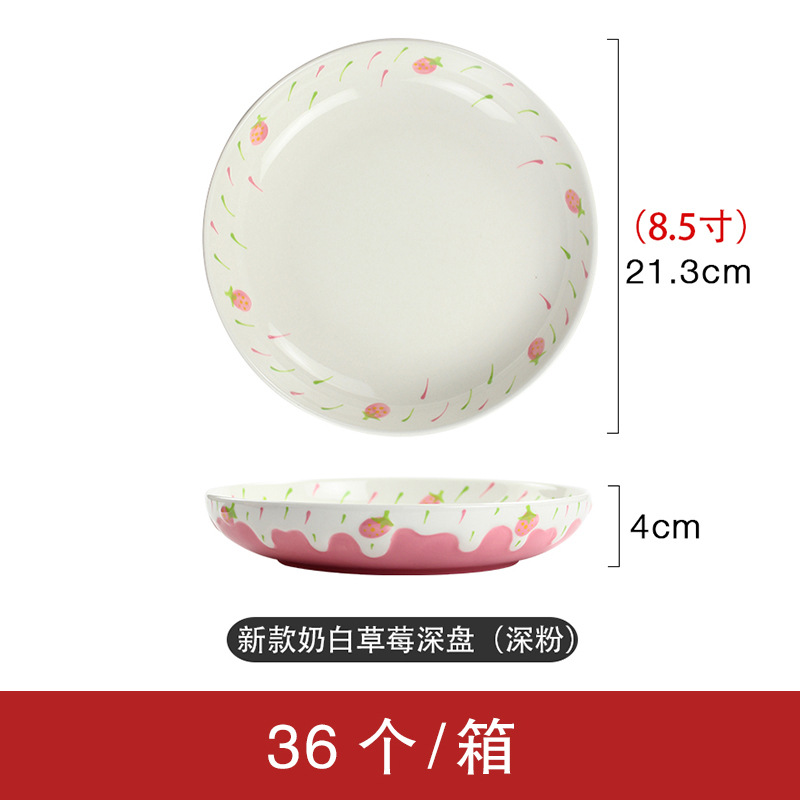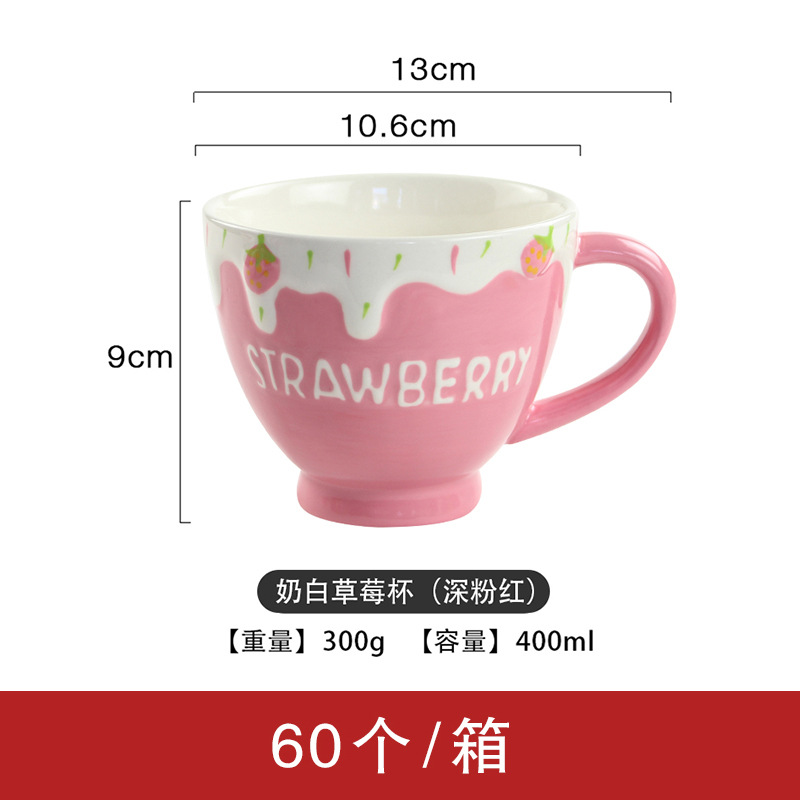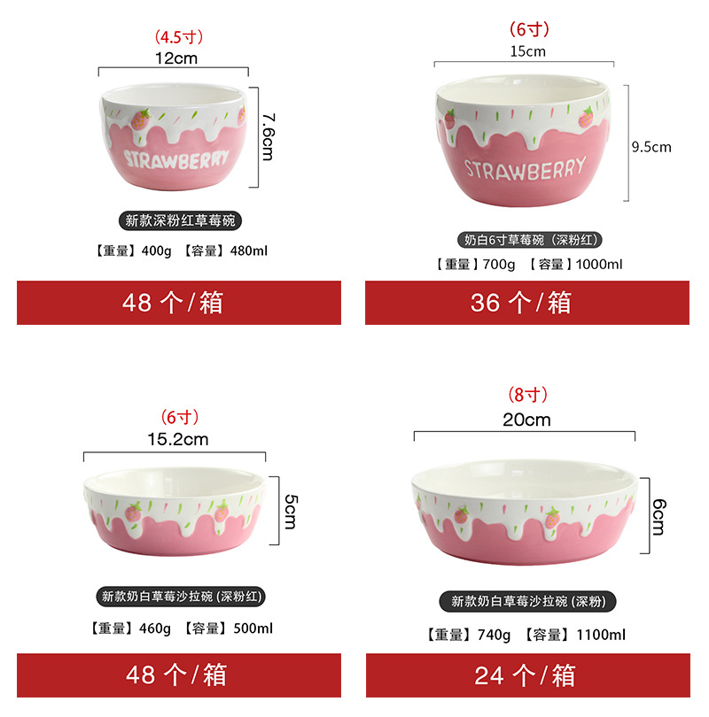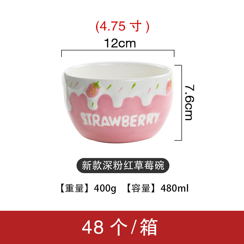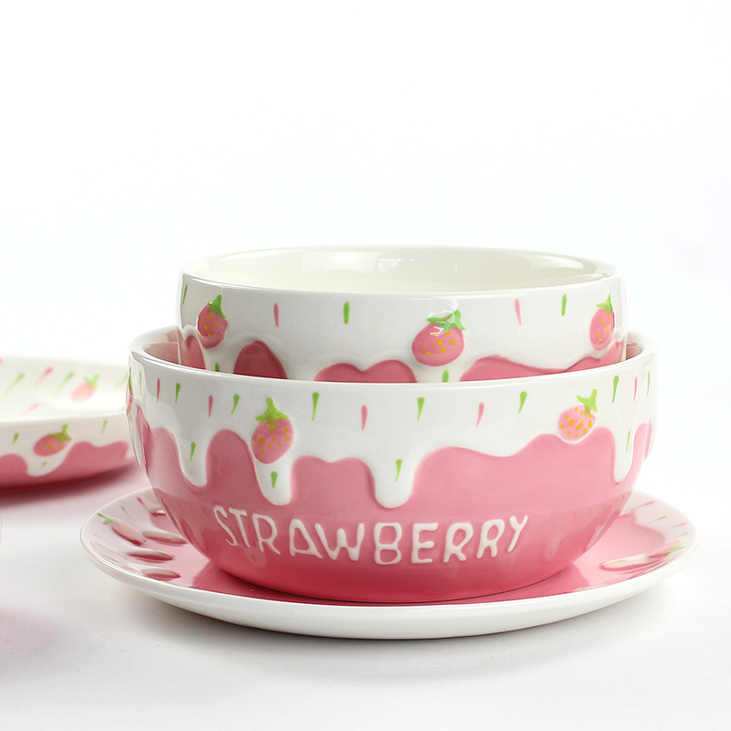 可爱手绘陶瓷餐具套装原创少女心早餐杯深粉色草莓沙拉碗浅盘套装