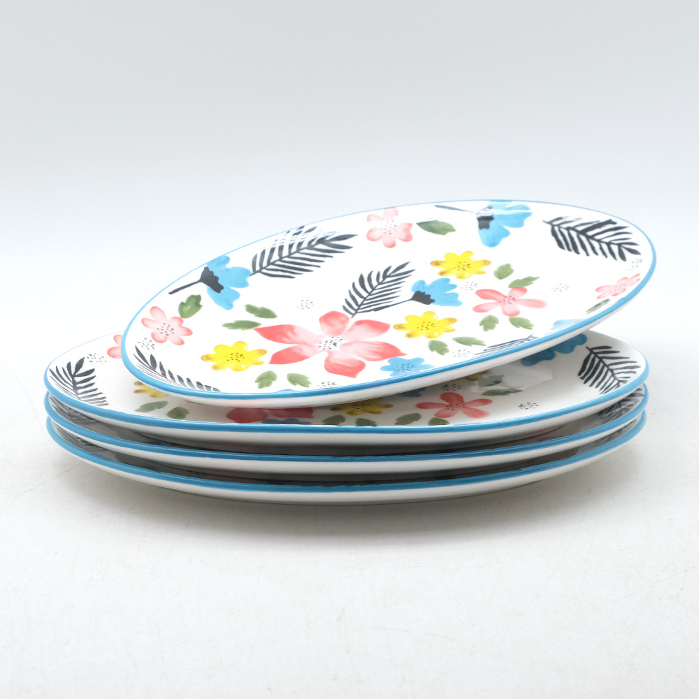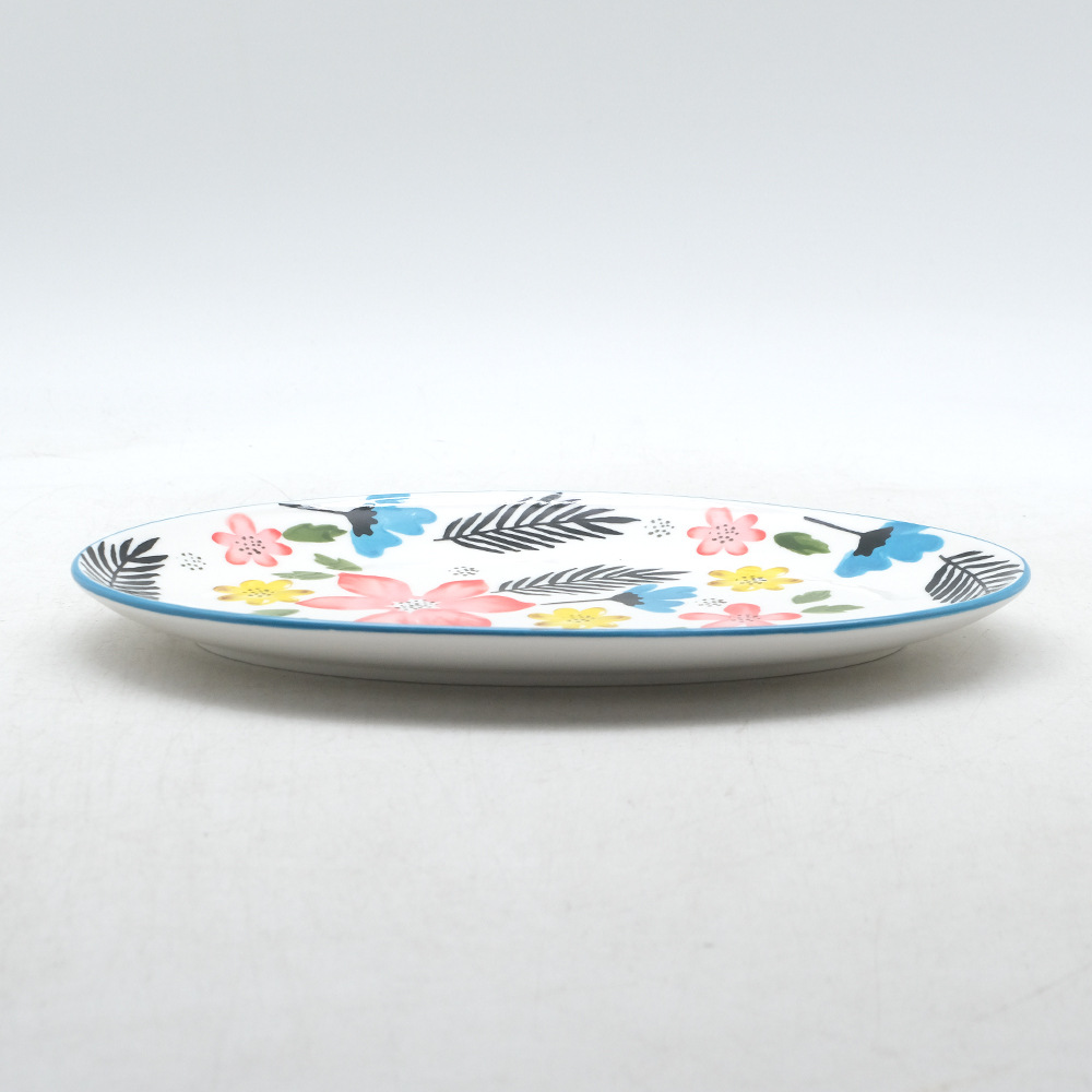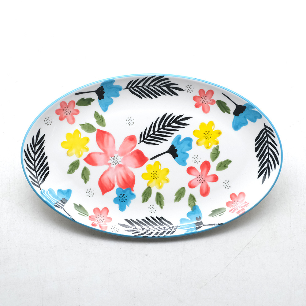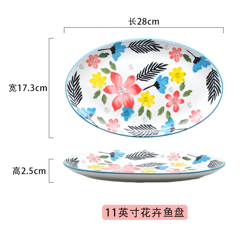 批发创意花朵陶瓷鱼盘高级感彩绘点心西餐盘子家用釉下彩菜盘餐具